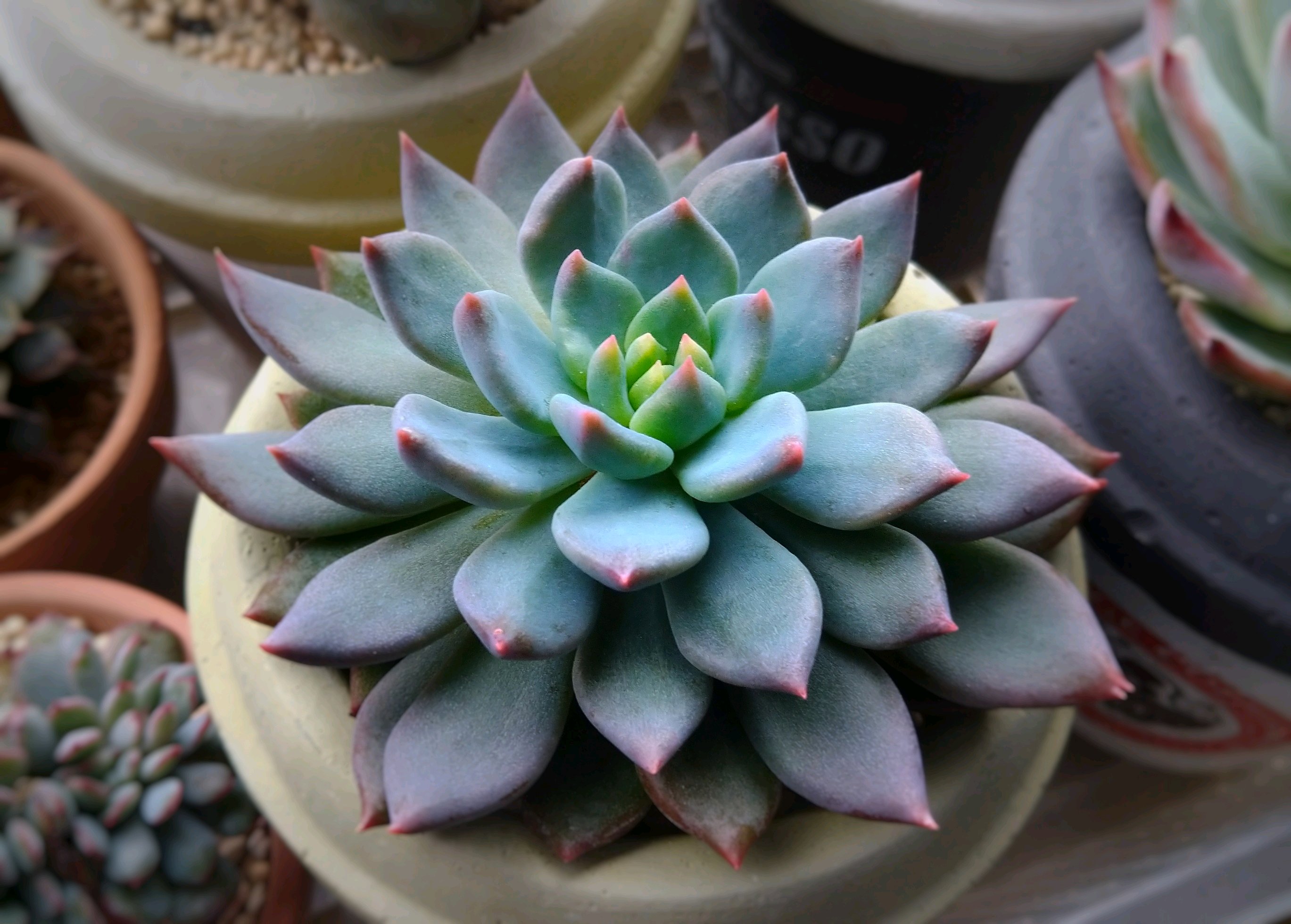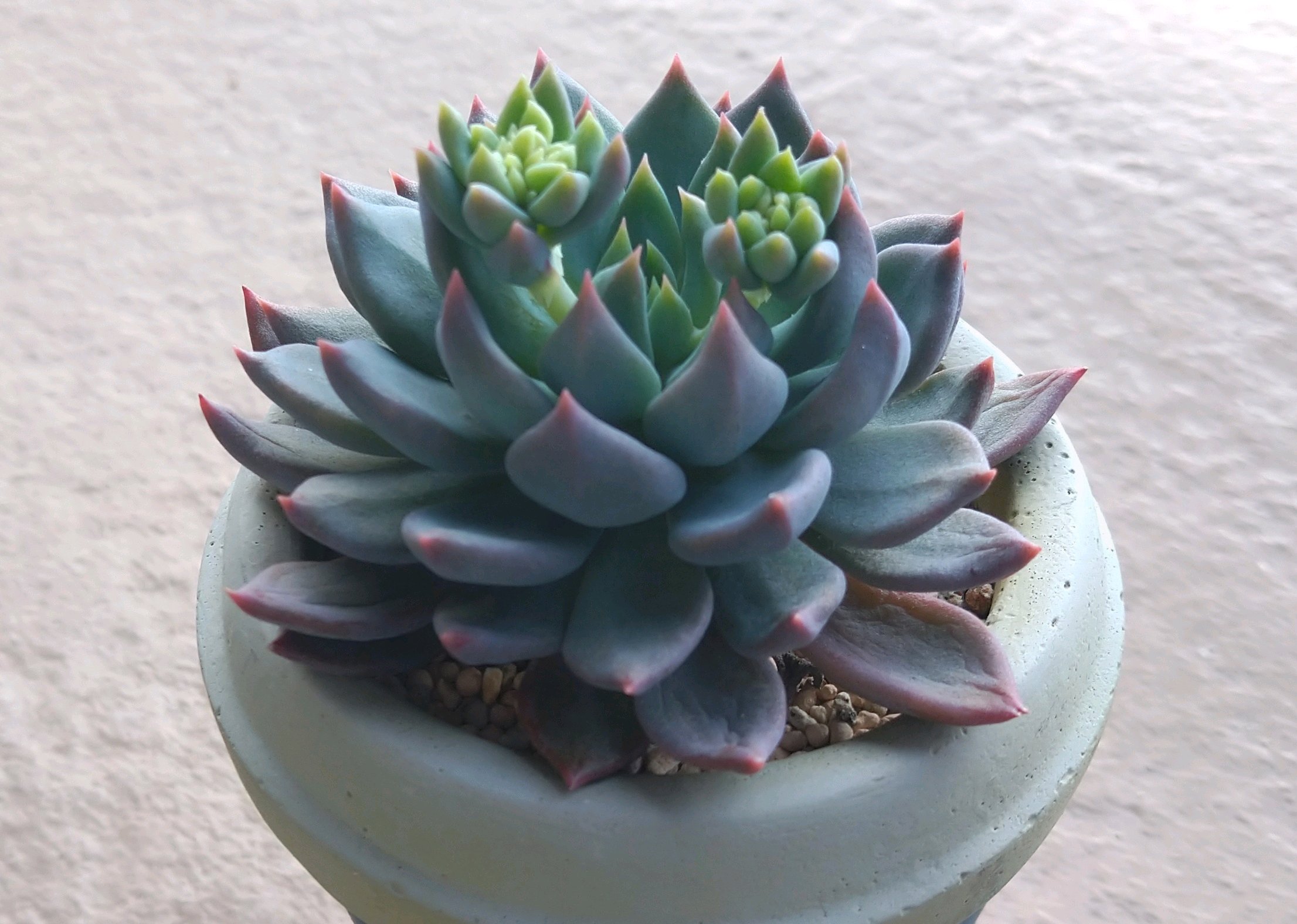 葉挿したちが、気づけば大きく育っていました。いつもはベランダの隅の鉢にいたのですが、ここにきて寄せ植えのメインに昇格です。