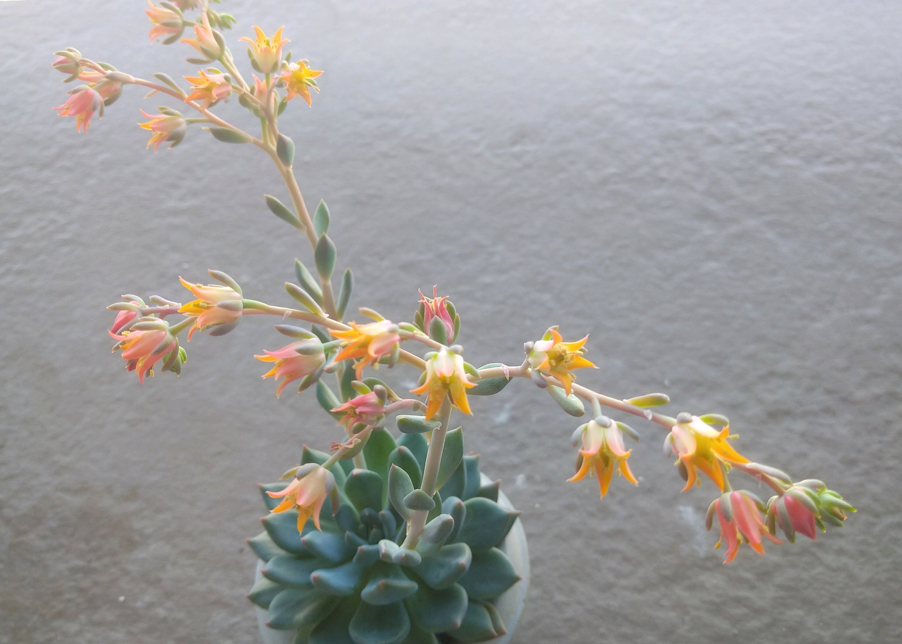 今年の冬は暖かすぎるせいか多くの多肉が花芽をつけてます。