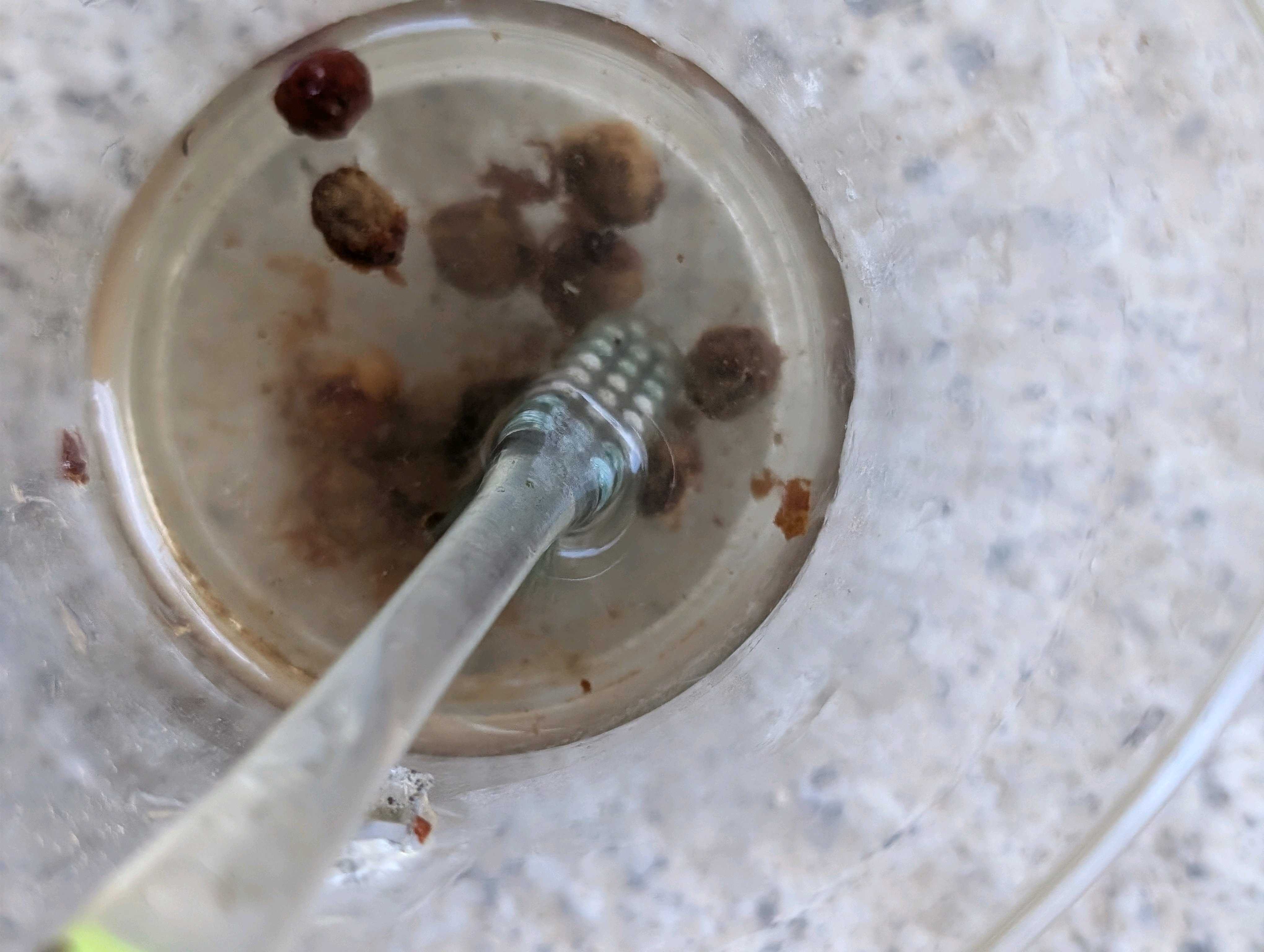 歯ブラシでかき混ぜるだけでも、かなりの果肉が取れます。