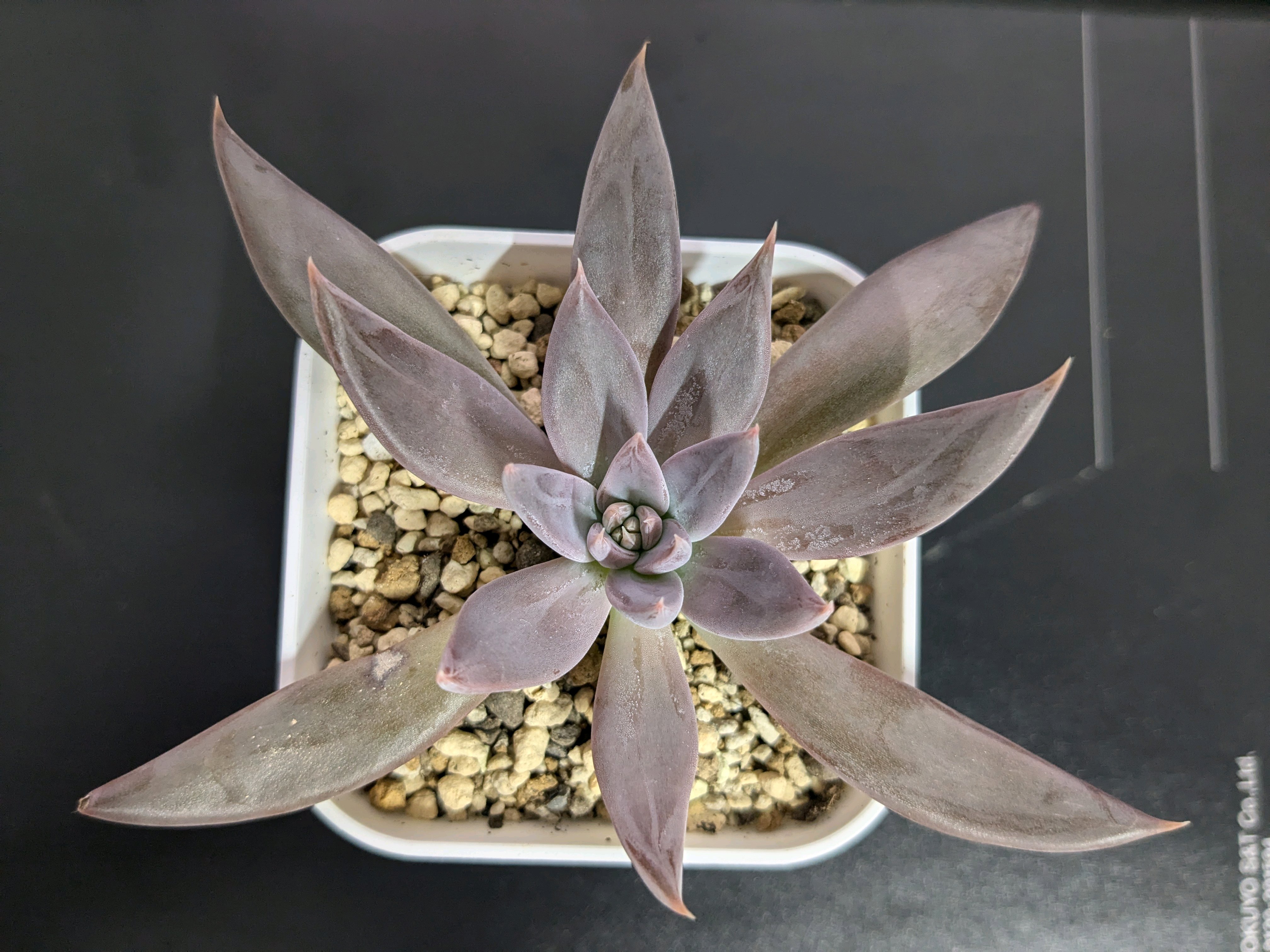 私に初めて「エケベリア」という植物を認知させてくれた株です。色々調べましたが、交配式等は不明。何となくシムランスの血が入っているような気がしています。