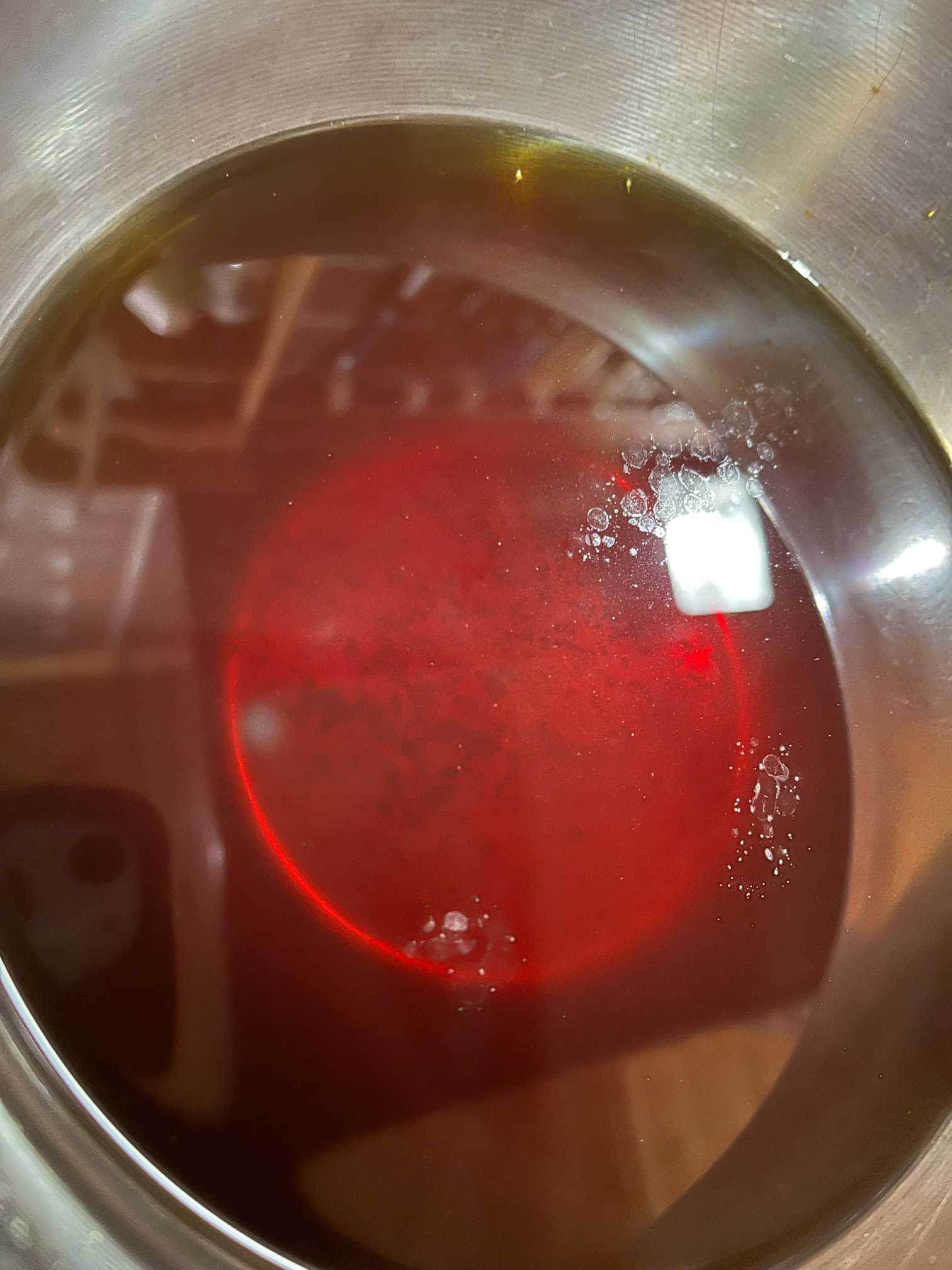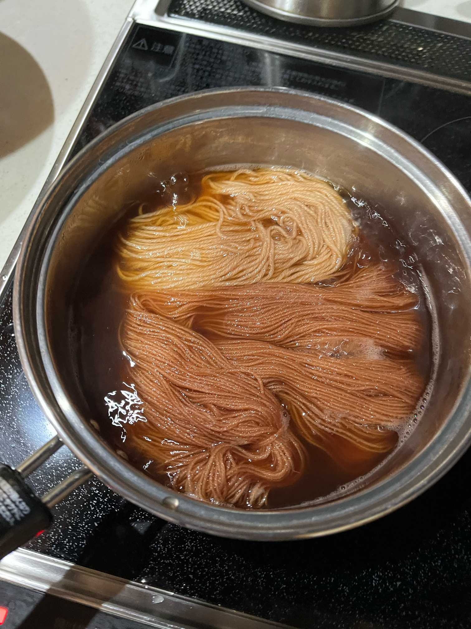 一回目煮出しの行程後は案外薄い茜色。
