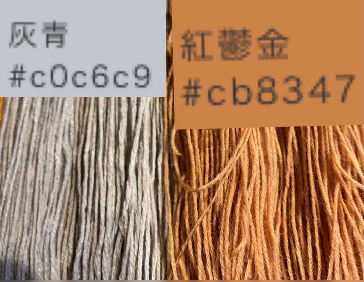 媒染剤でこんなにも仕上げの色が変わります。 一つの植物で2色楽しめます。
