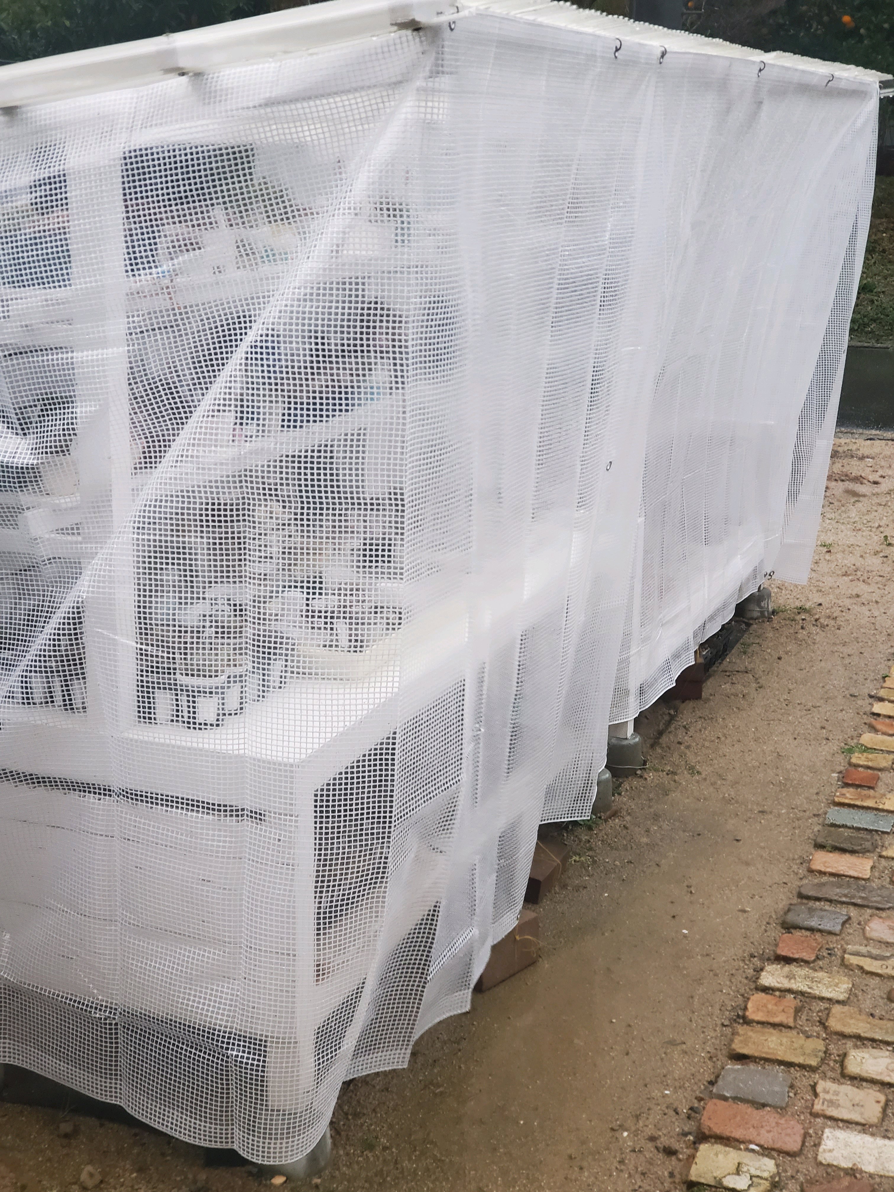 レンガで重しをしても風で落ちてしまいます。
