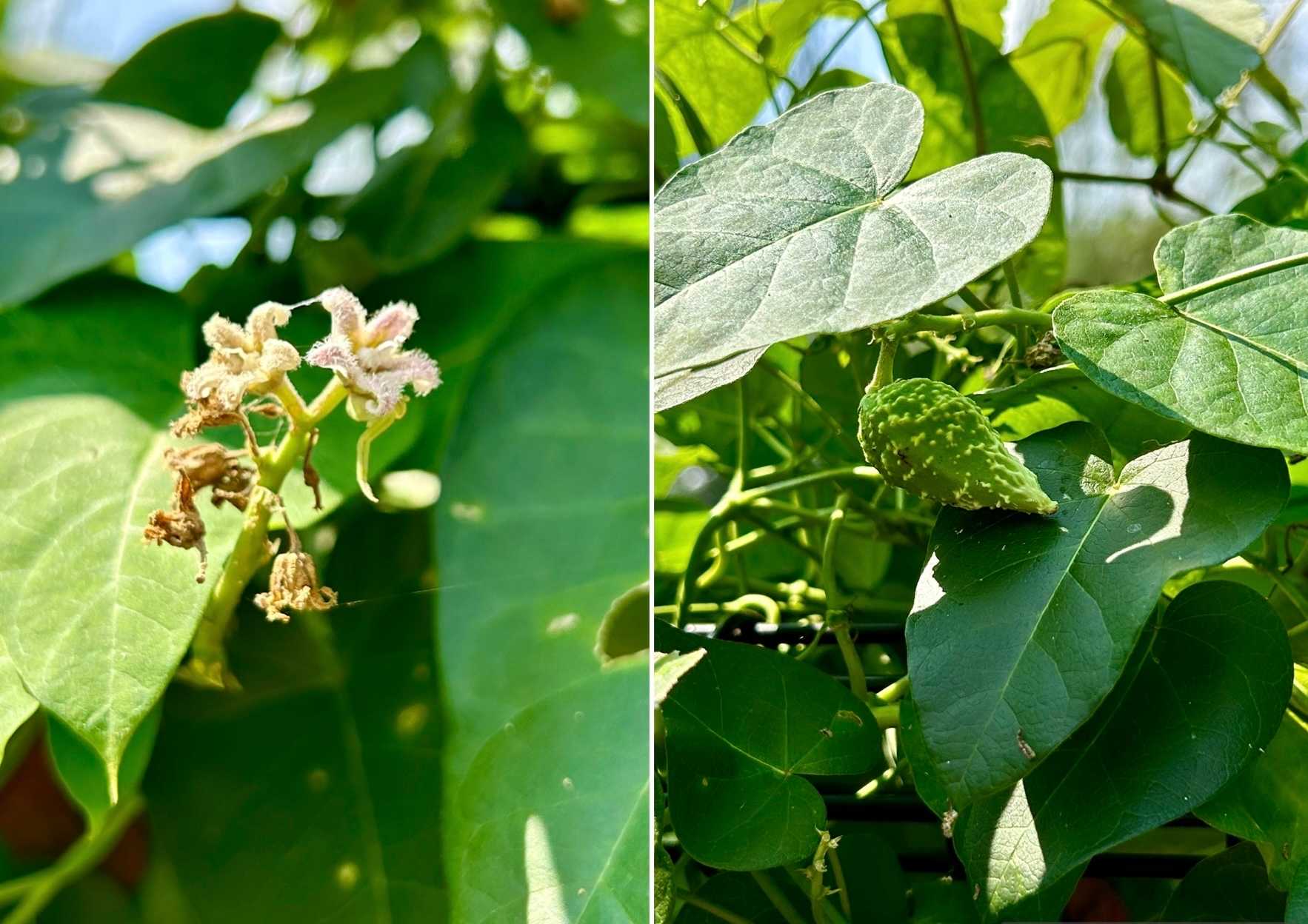 ガガイモの花は終わりです。ゴツゴツした実が膨らみはじめていました