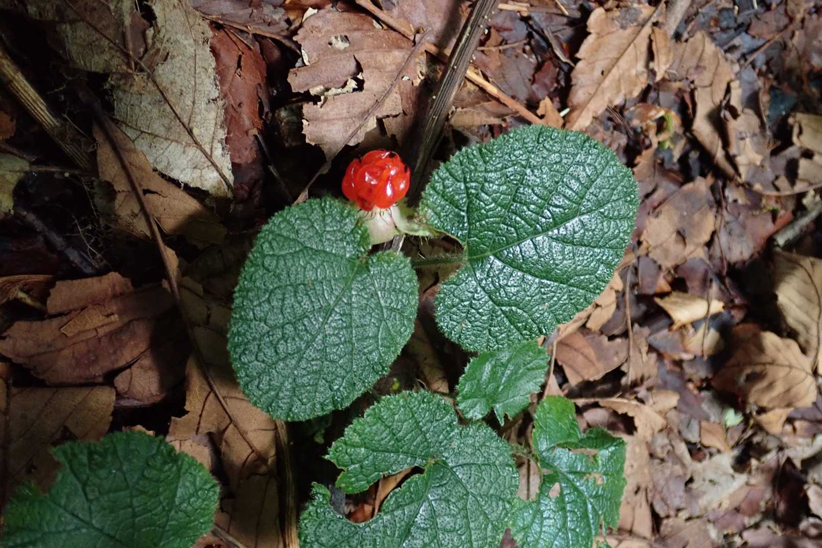 ギンリョウソウの柱頭が紫色で果実は液果なのに対して、アキノギンリョウソウの柱頭は黄褐色で果実は蒴果。