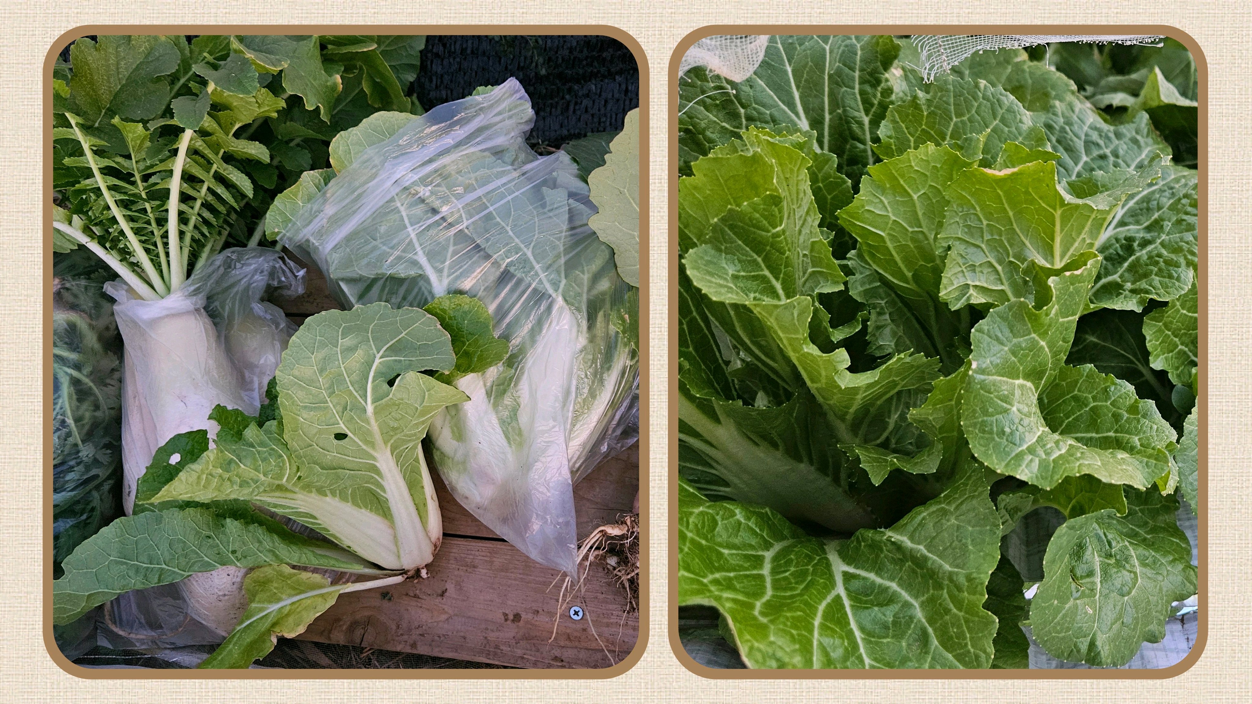 白菜は、苗の育成時期に🐗大打撃を受けてほとんどの株の成長が遅れて、小さいサイズのものが多くて収穫も遅れてしまいました