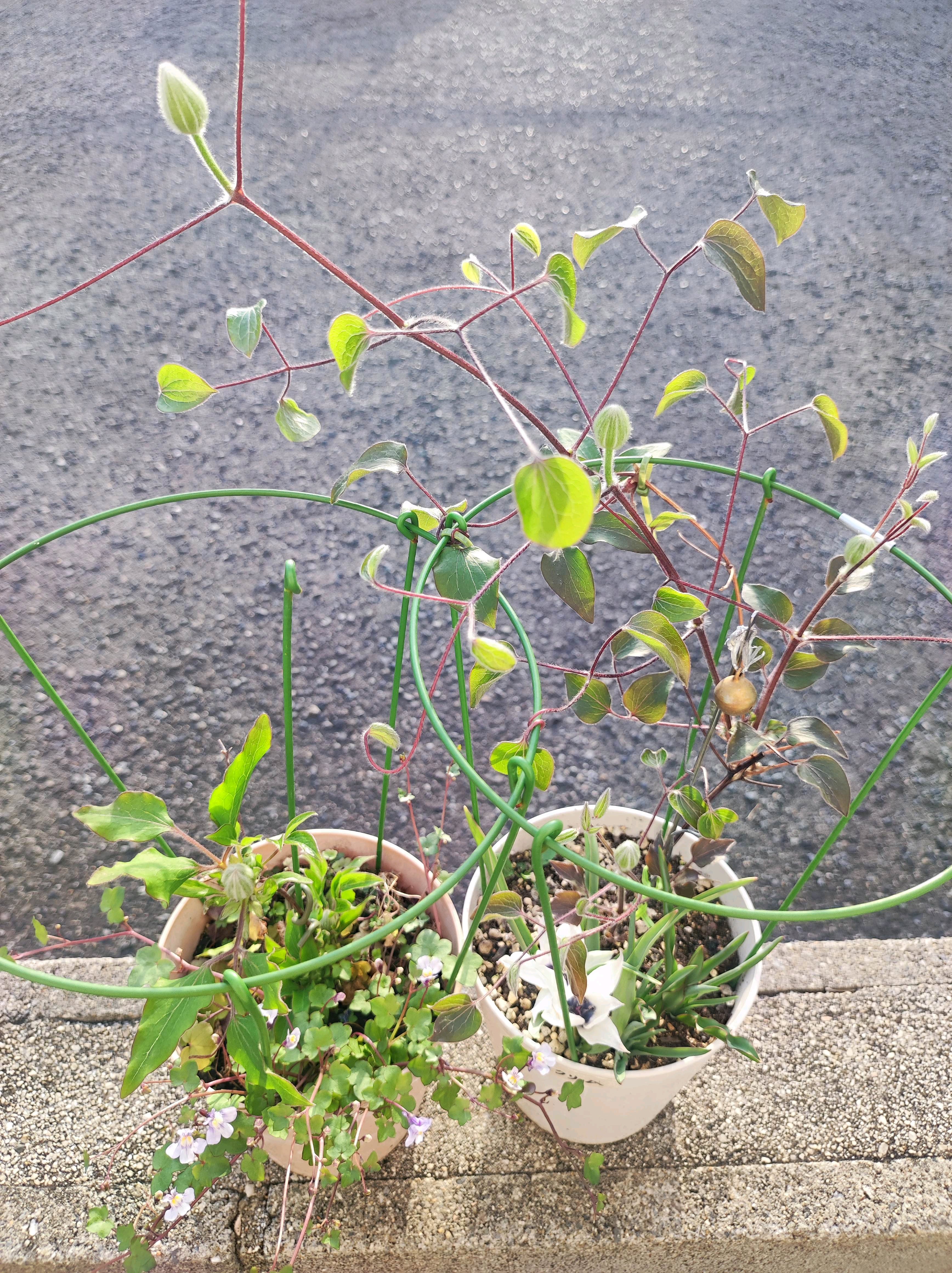 つる性なので上に誘引しないといけないと思ってたけど、ぐるぐる🌀横伸びでもいけると思いました𓂃𓂂ꕤ*.゚