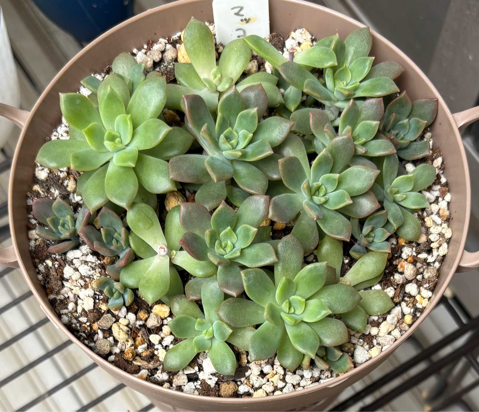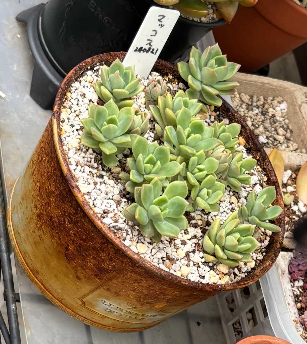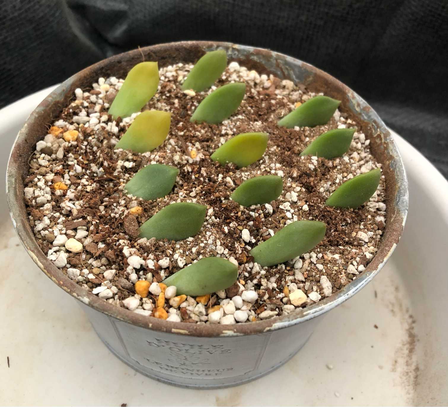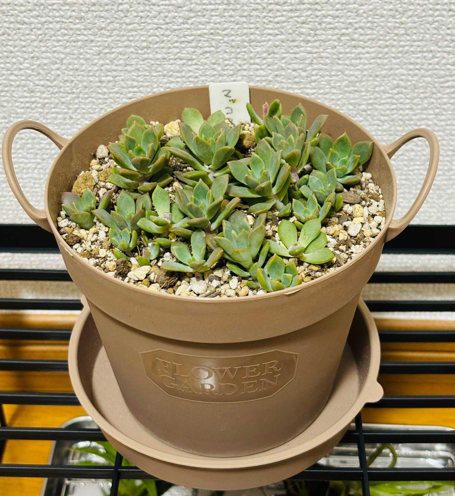 既に子株だか花芽だかがたっぷりだったので、群生(丼)目指して観葉植物の土チョト多め
