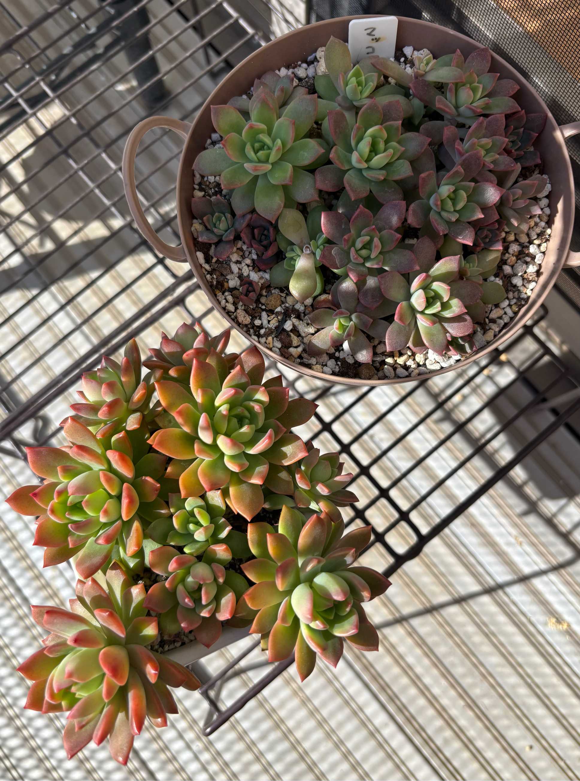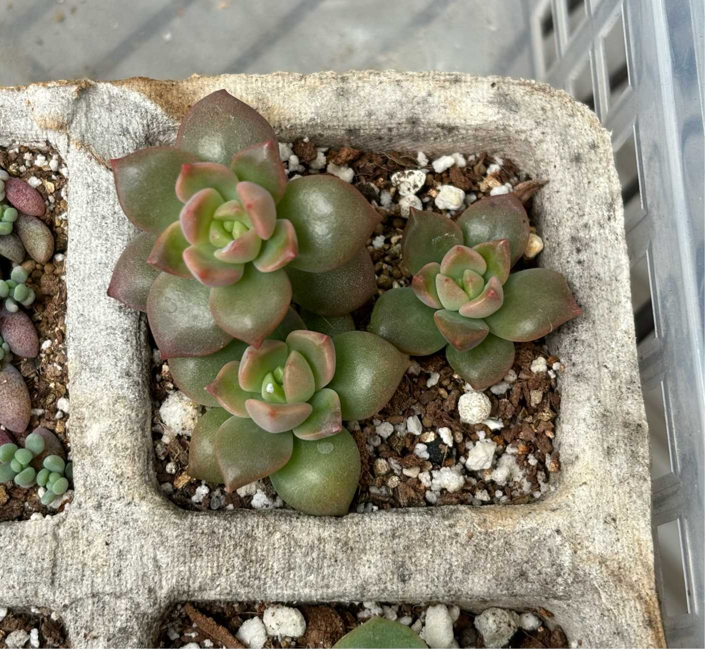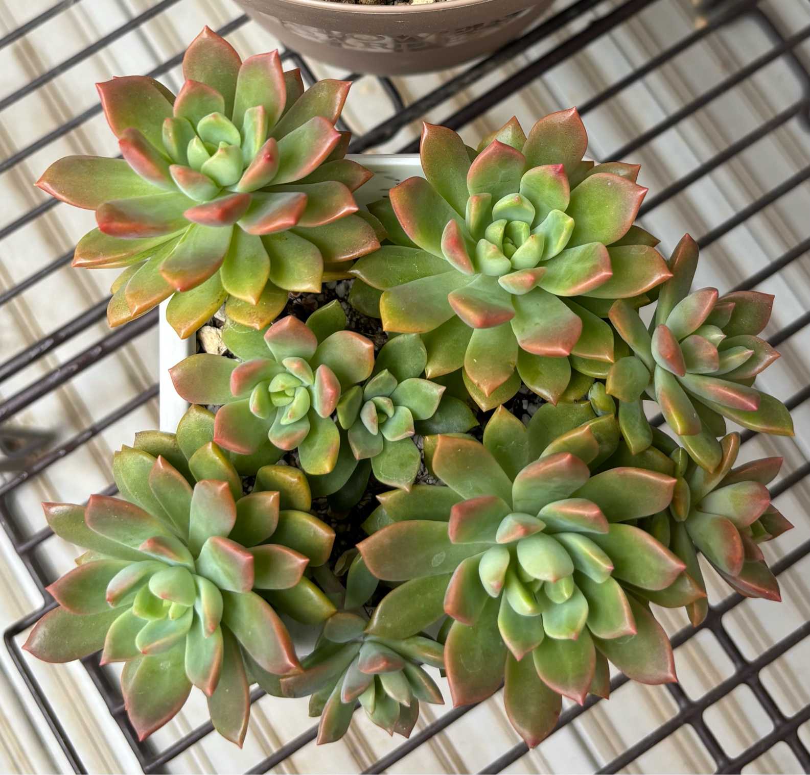 既に子株だか花芽だかがたっぷりだったので、群生(丼)目指して観葉植物の土チョト多め