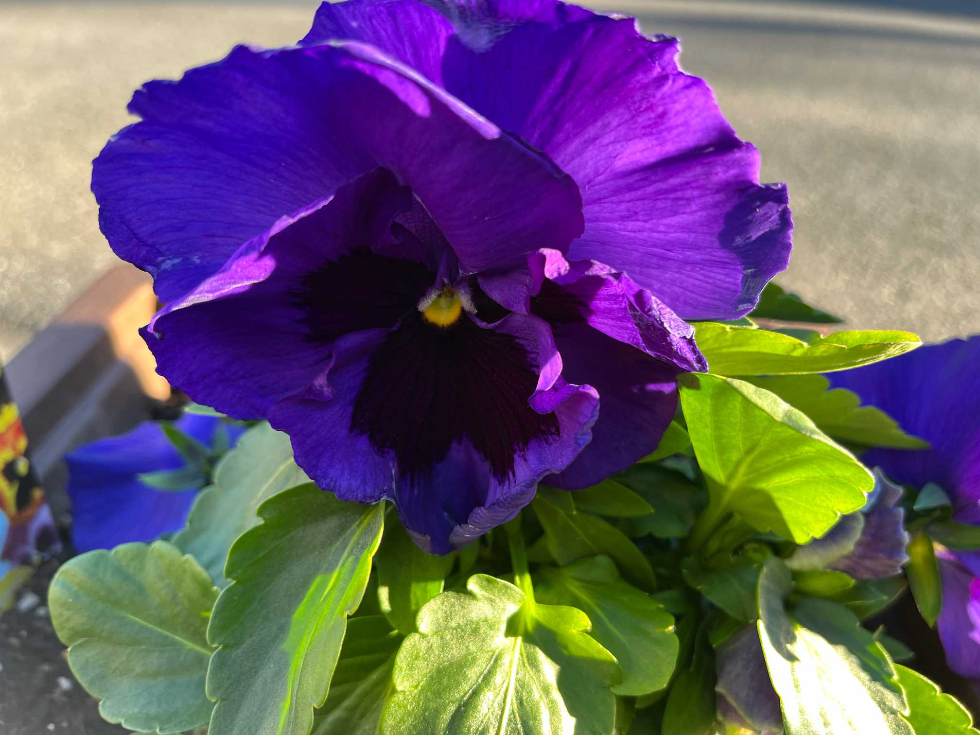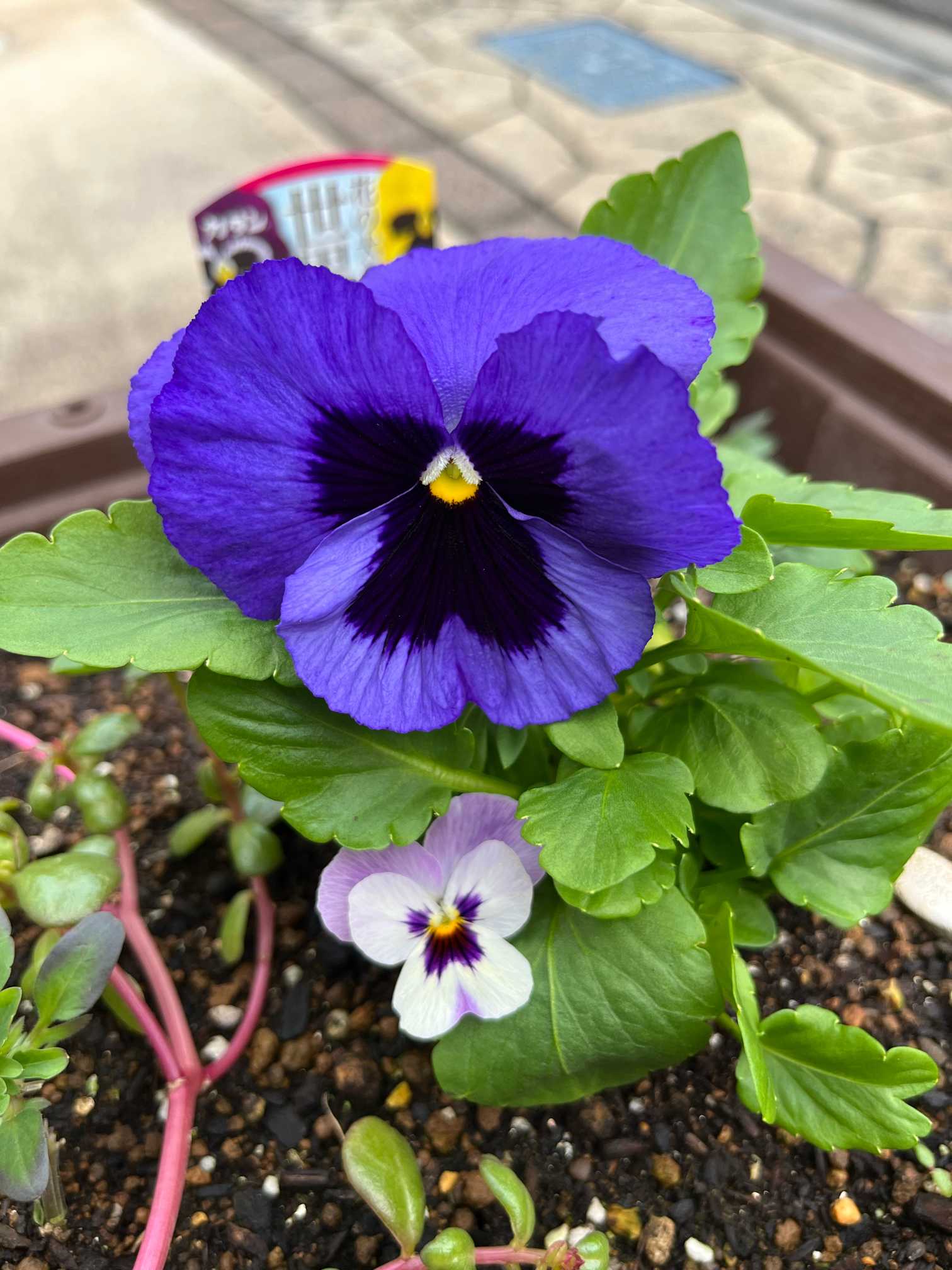 サイズは7-8㎝ですが、隣のビオラと比べるとインパクトも大きさも十分過ぎるくらい😆