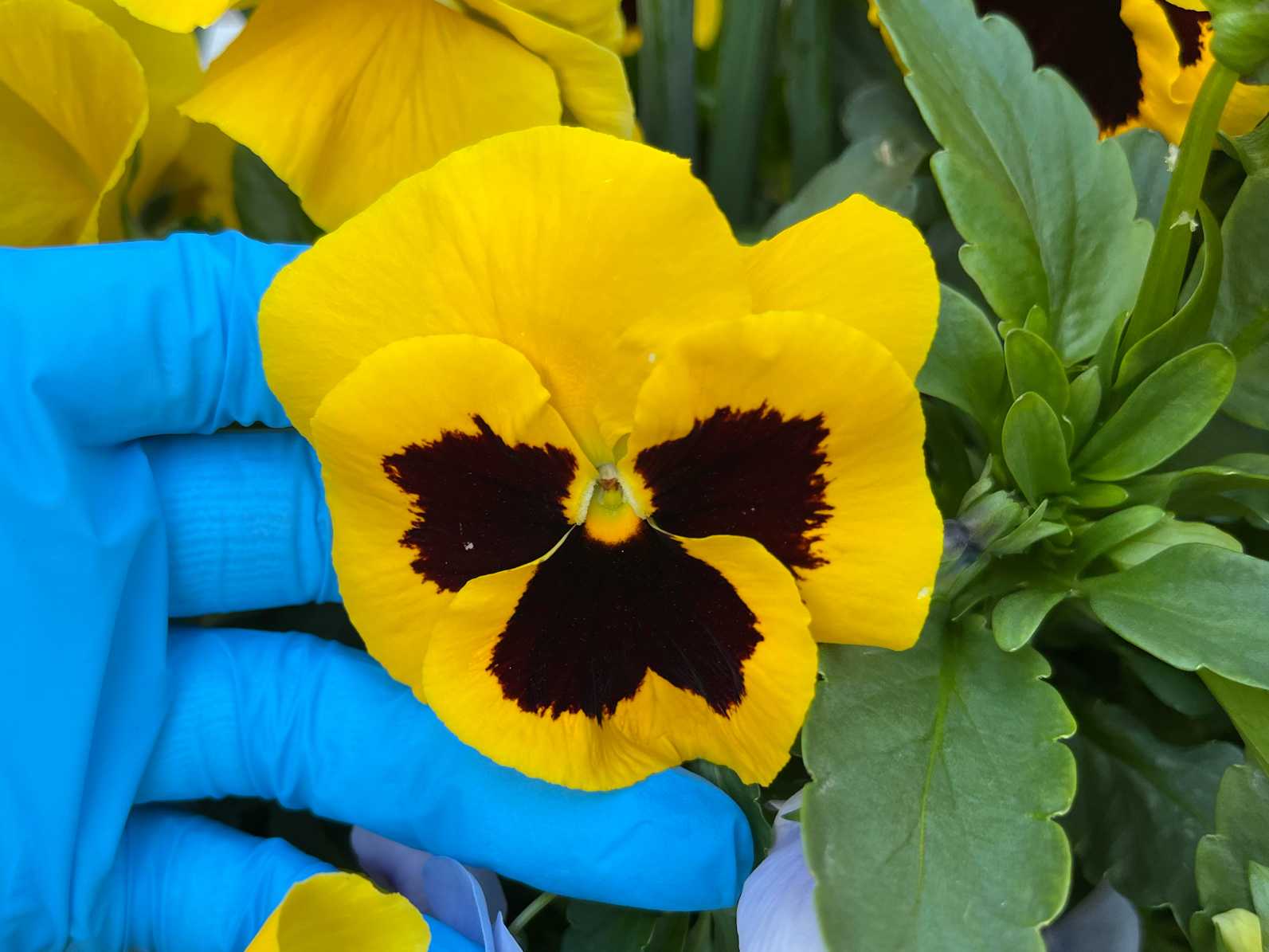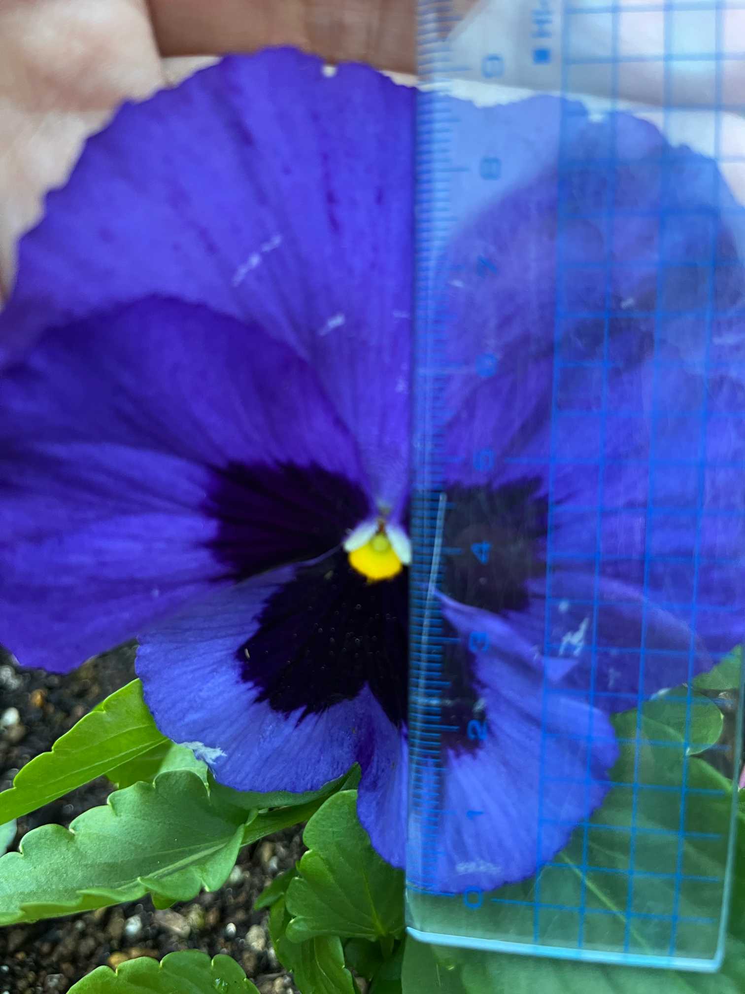 大きさ比較のため、ビオラの花を摘んで横に置いて見ました😉
