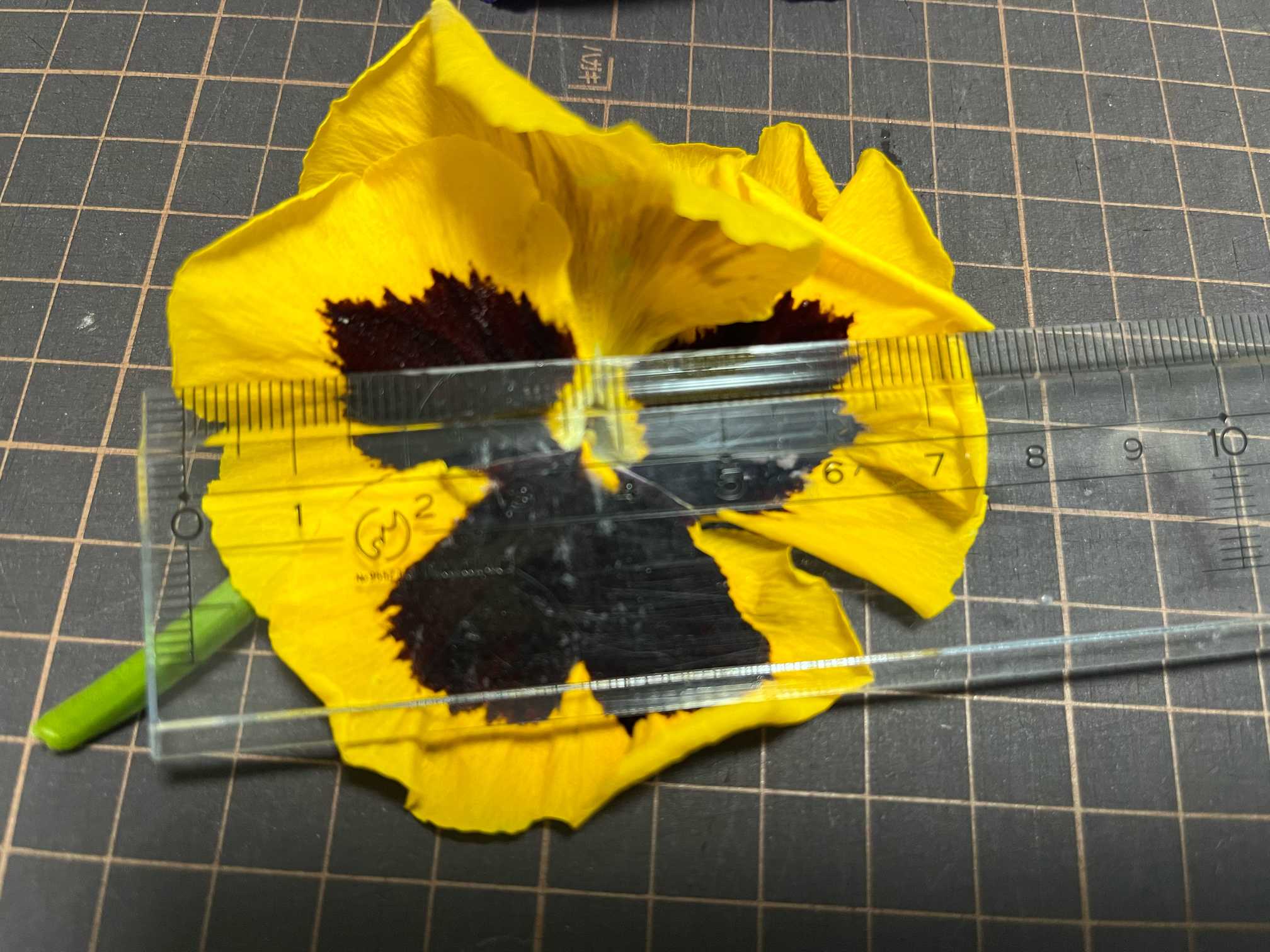咲いている花に定規を当てての撮影が難しいので、花がらを摘んで計測🧐