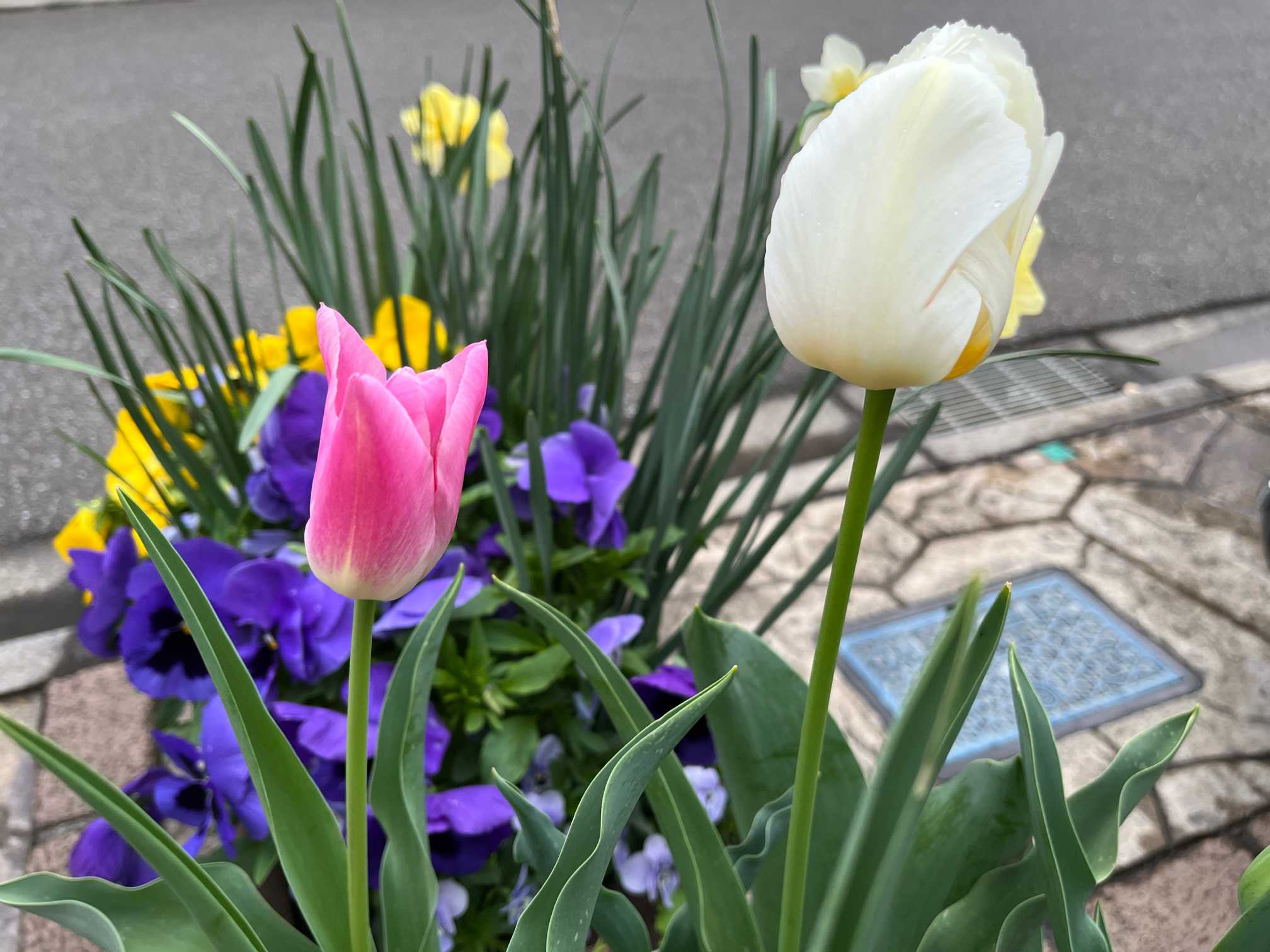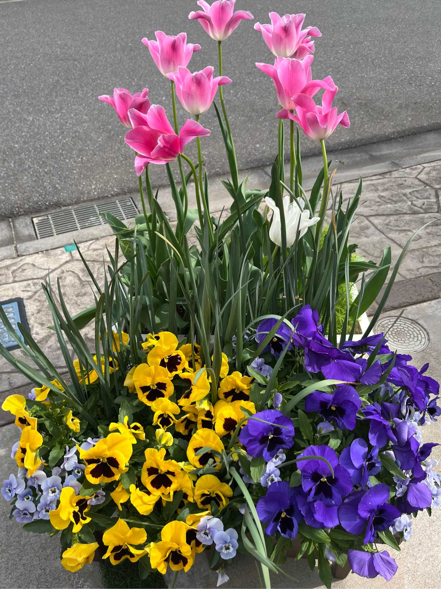 プランターを並べて置いたチューリップもラスト🌷花茎をカットする前に一緒に記念撮影📷