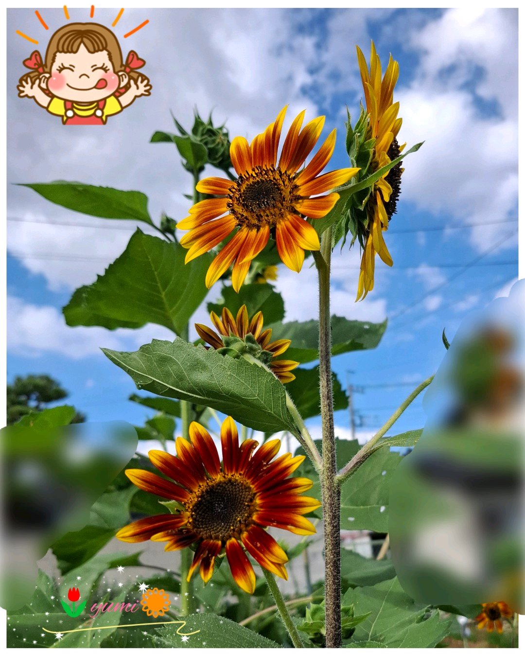 青空にひまわり🌻、可愛いスタンプ・・・、最高🙌