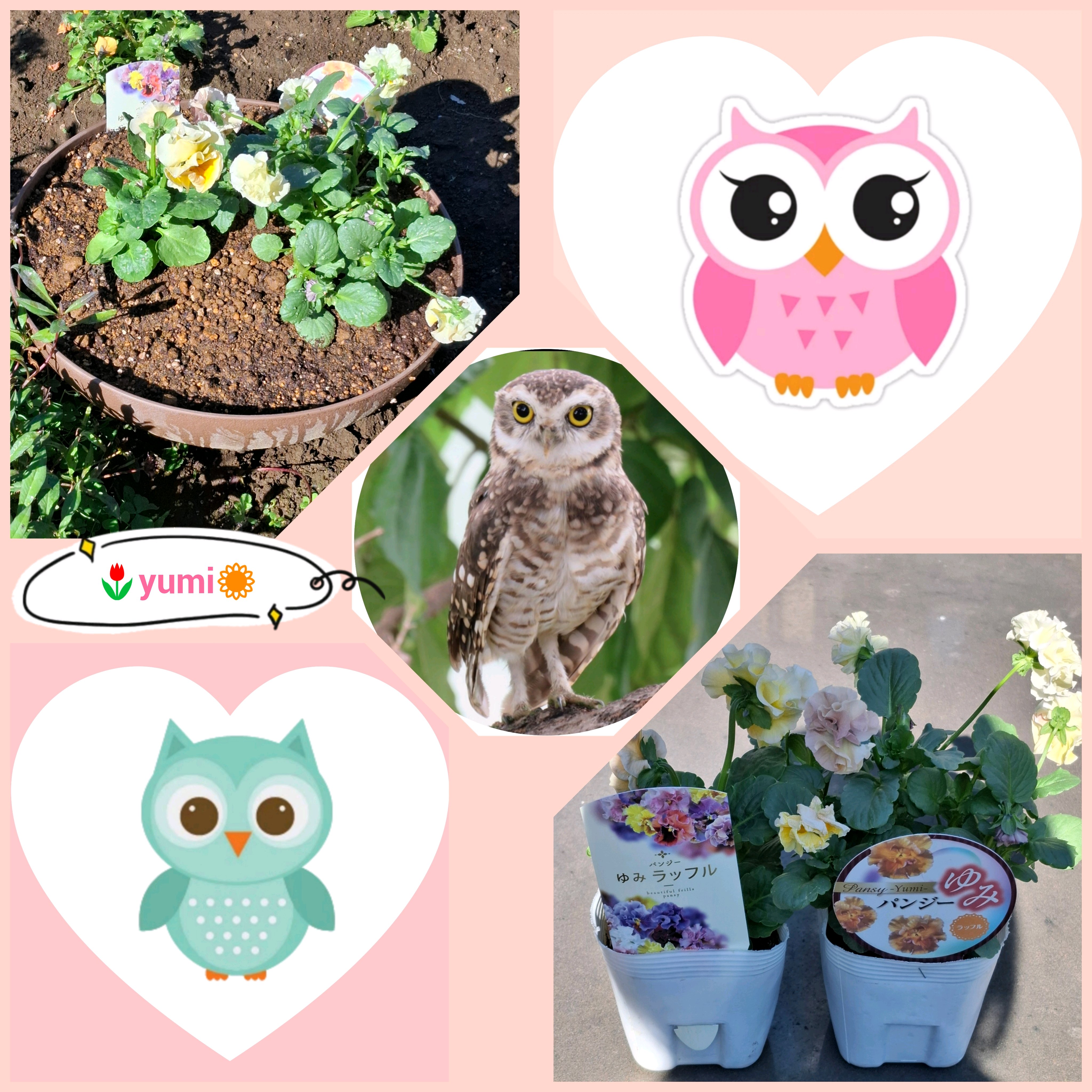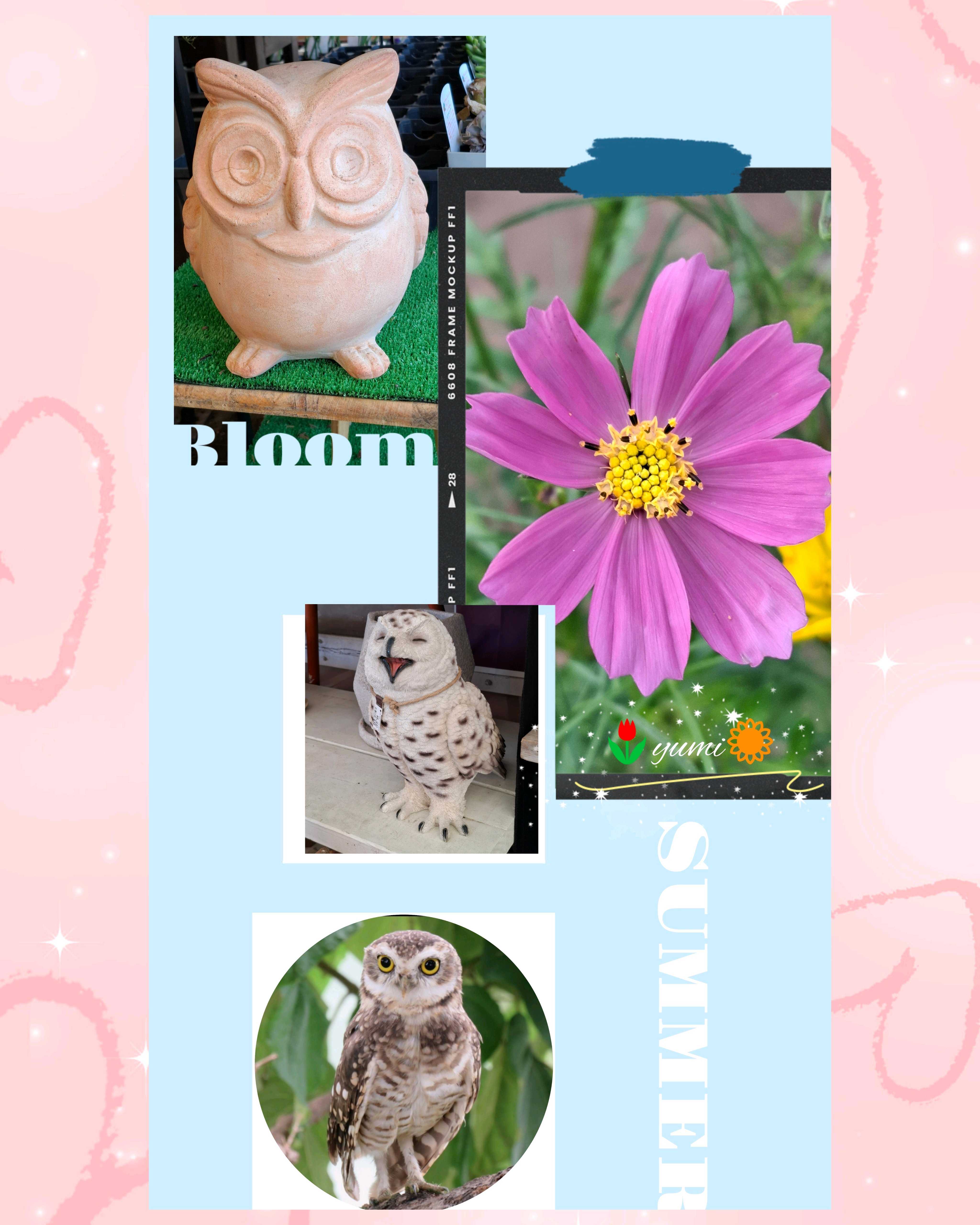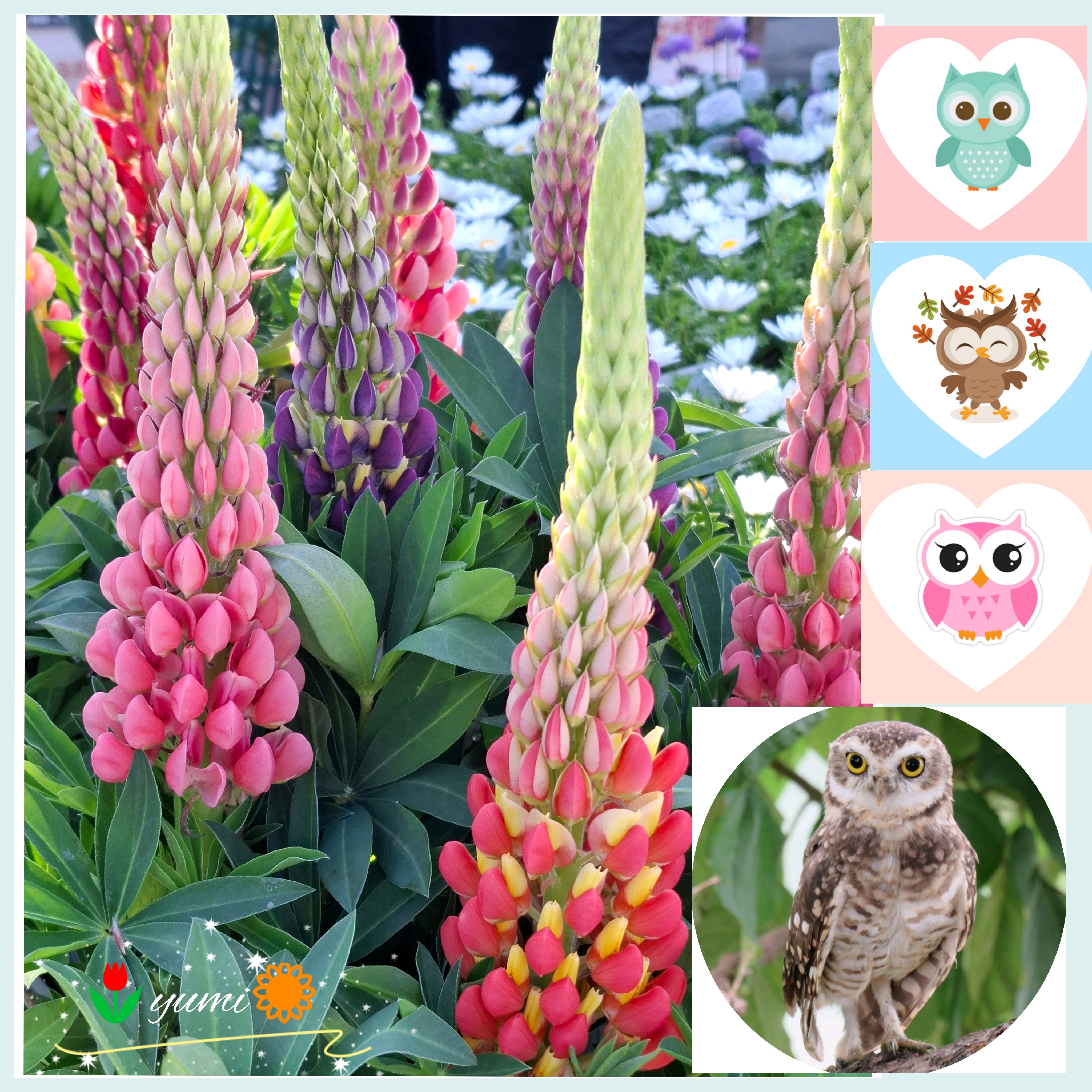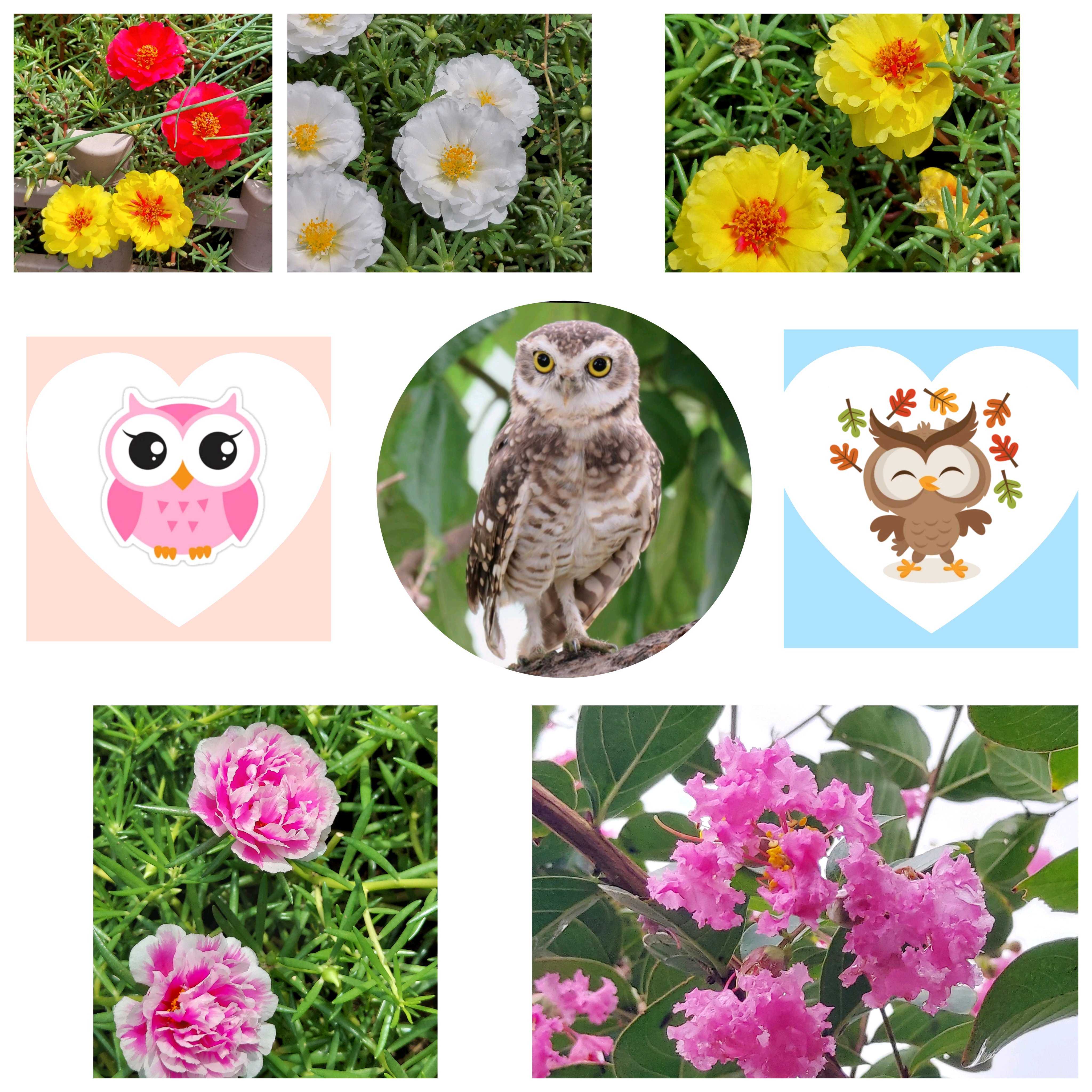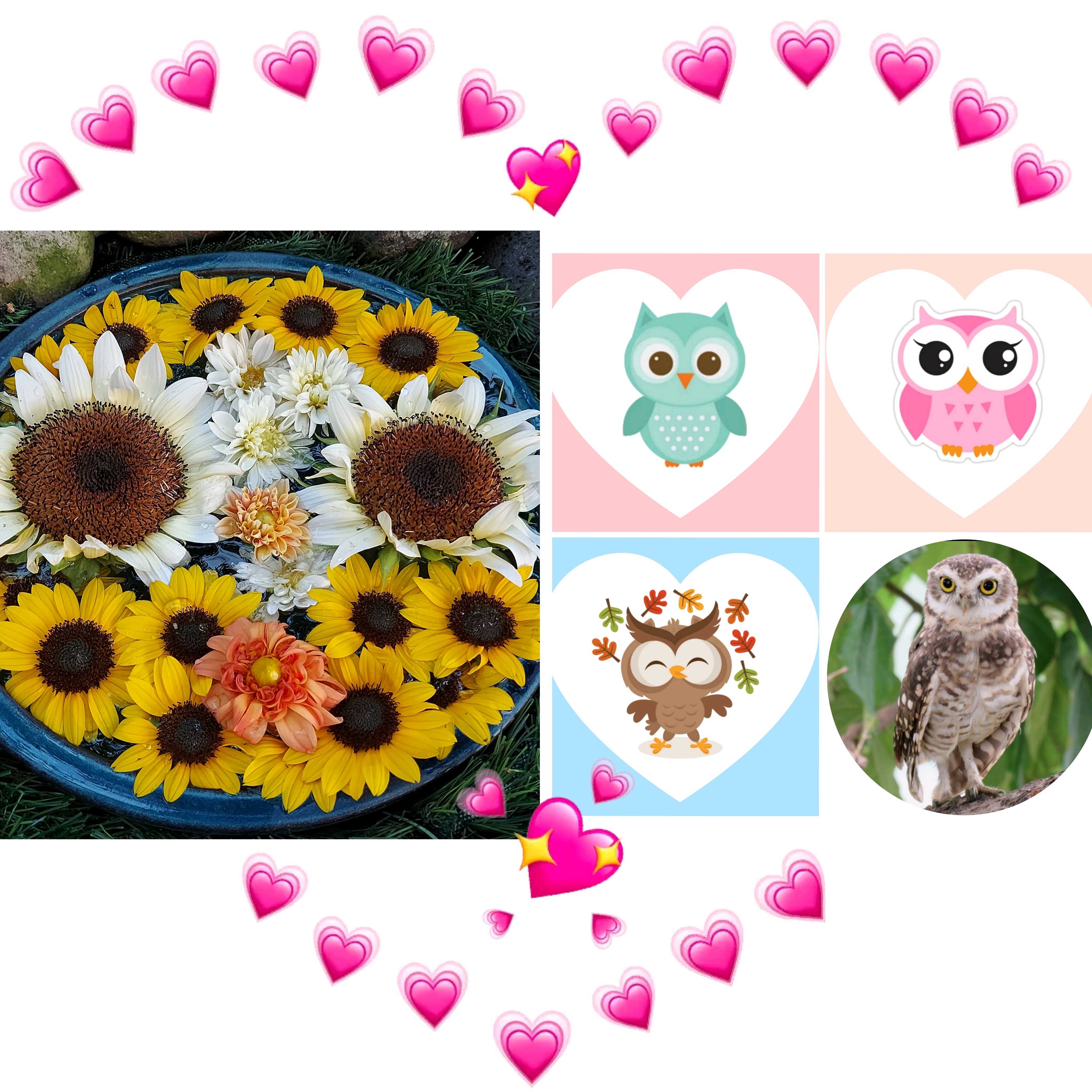フクロウとお花のコラージュ😍