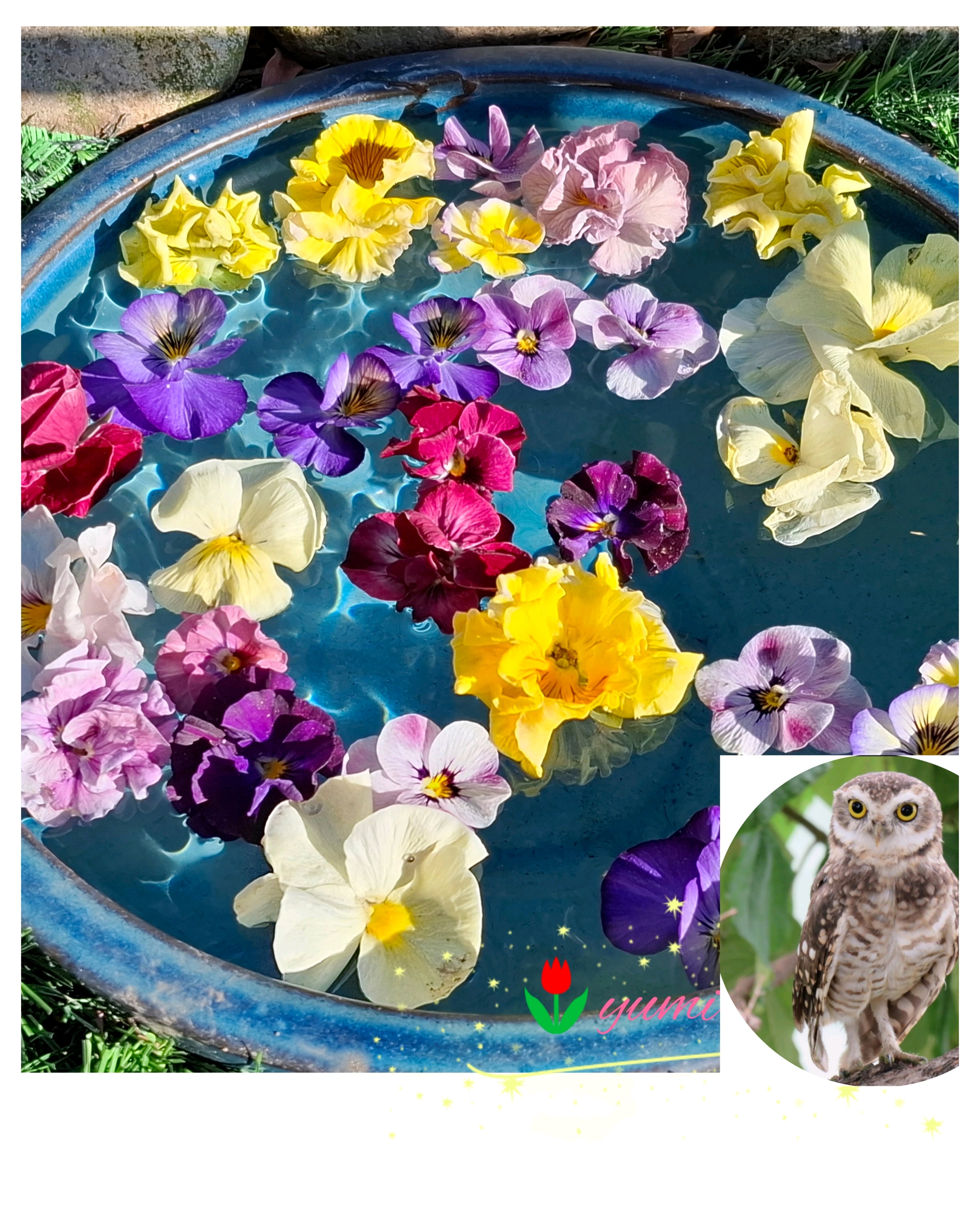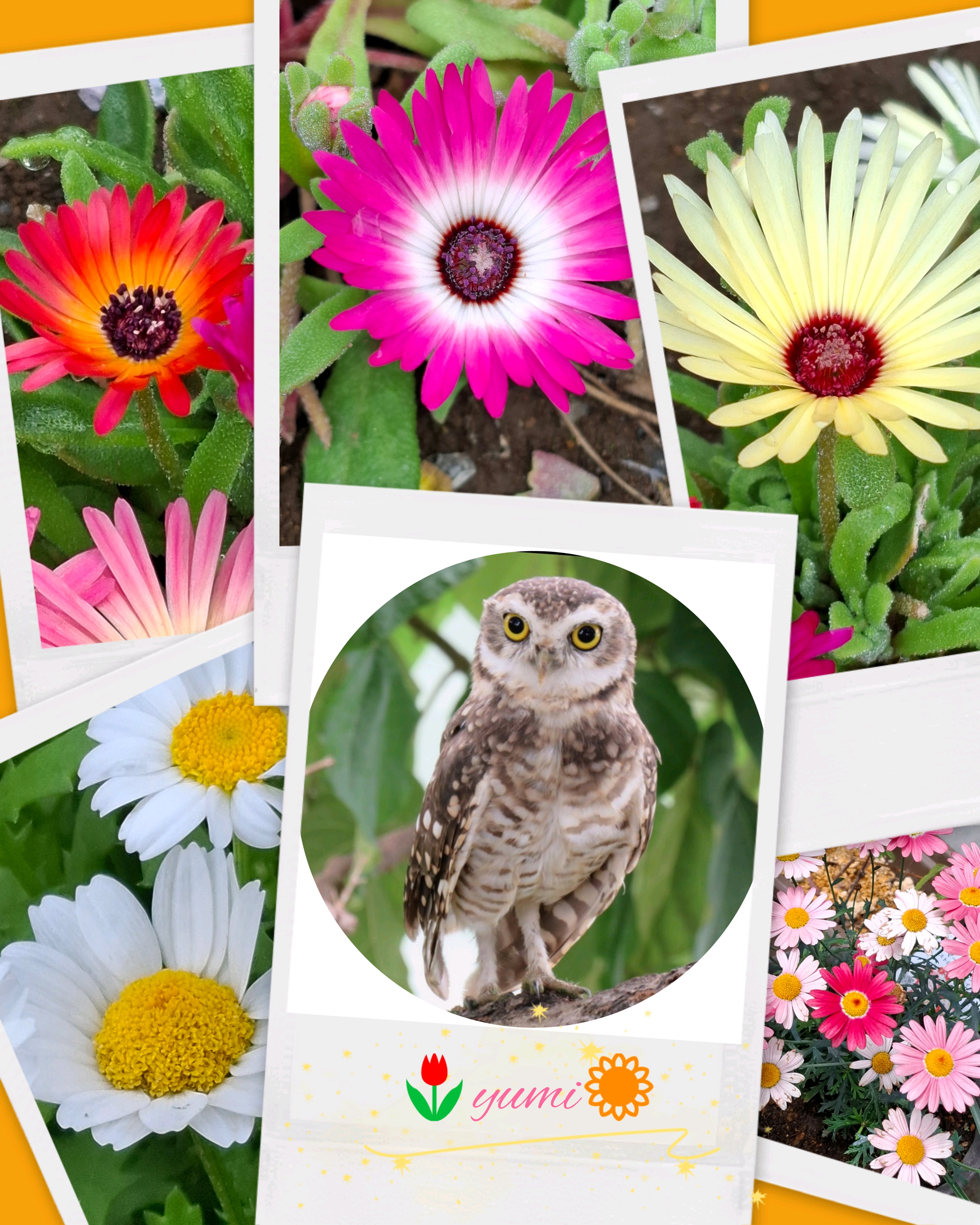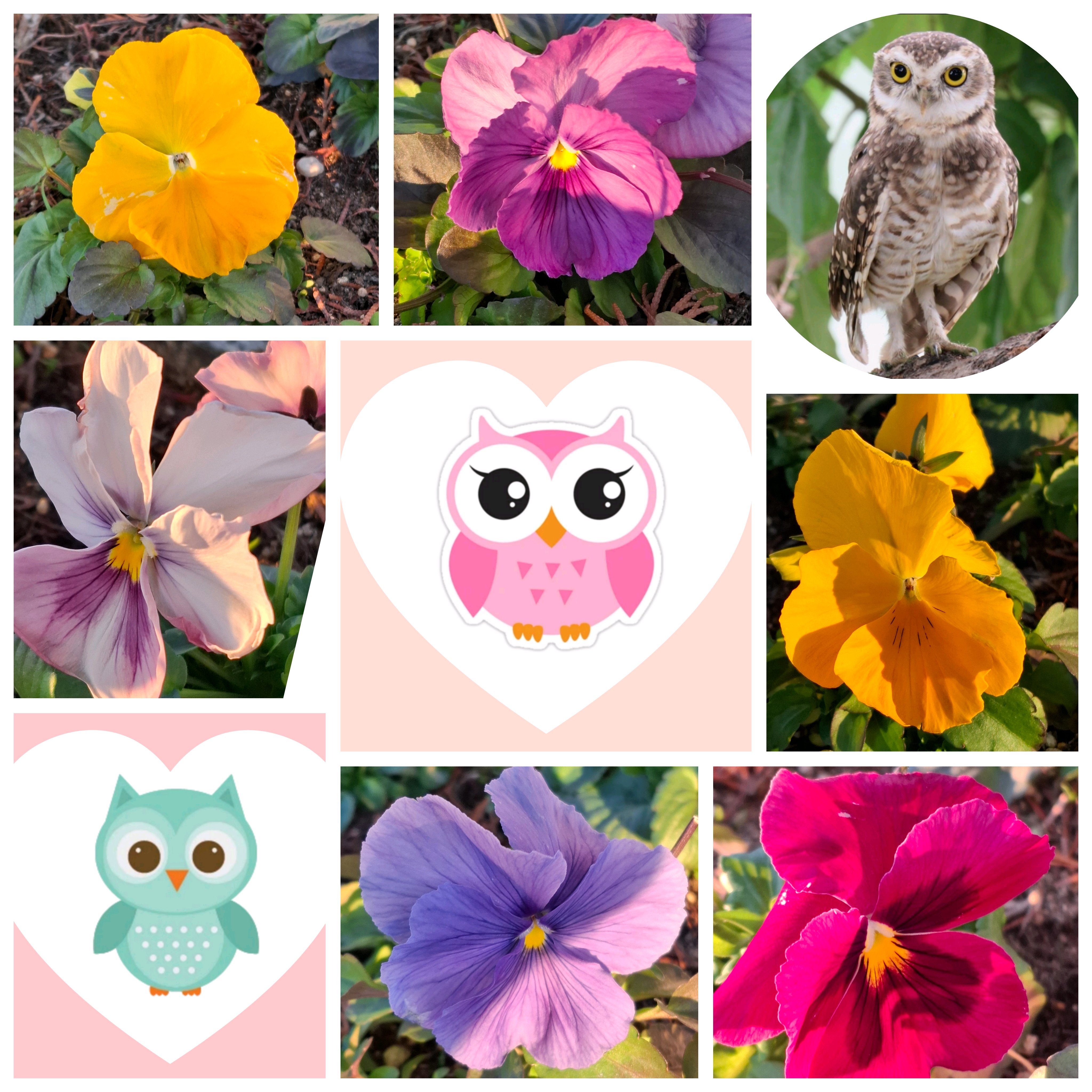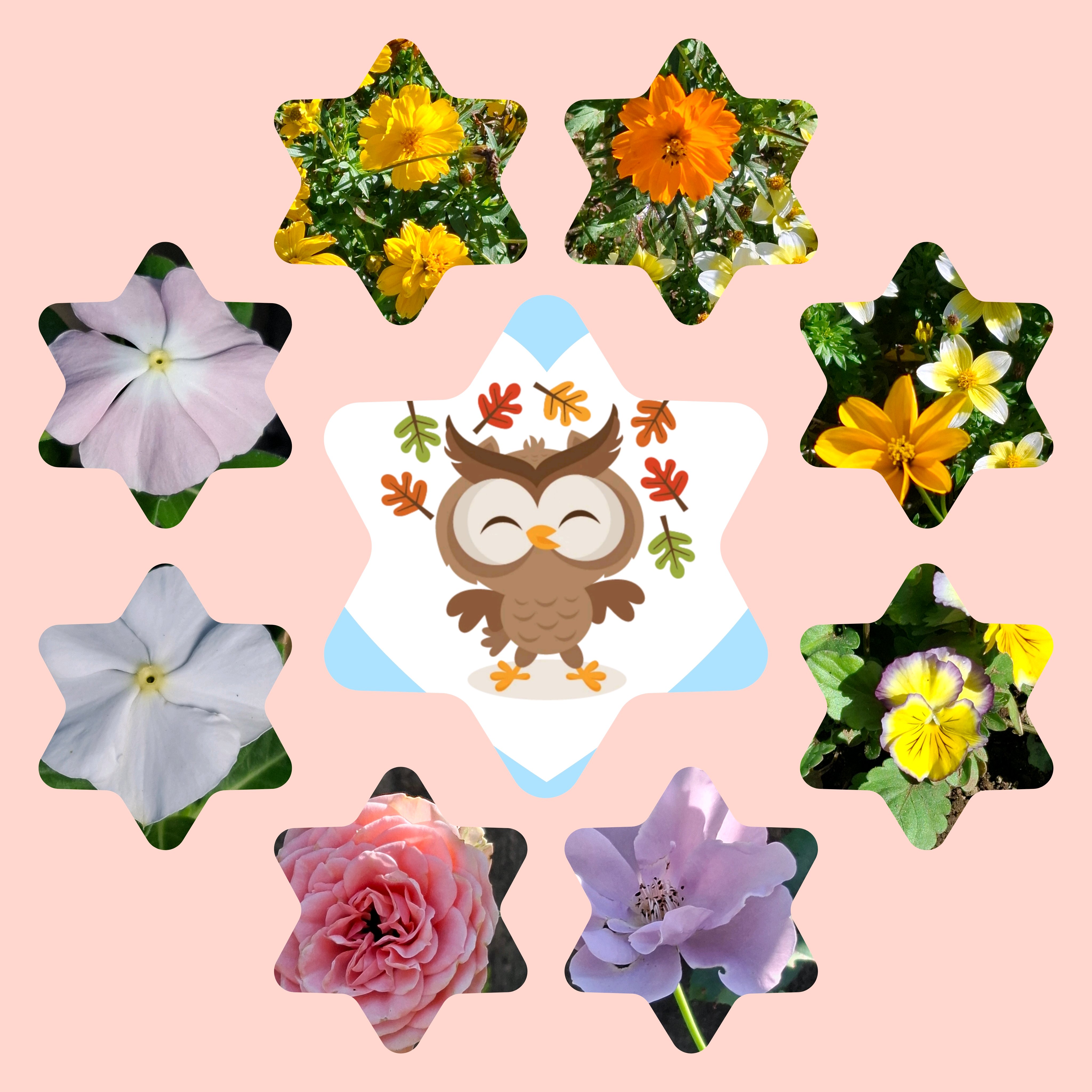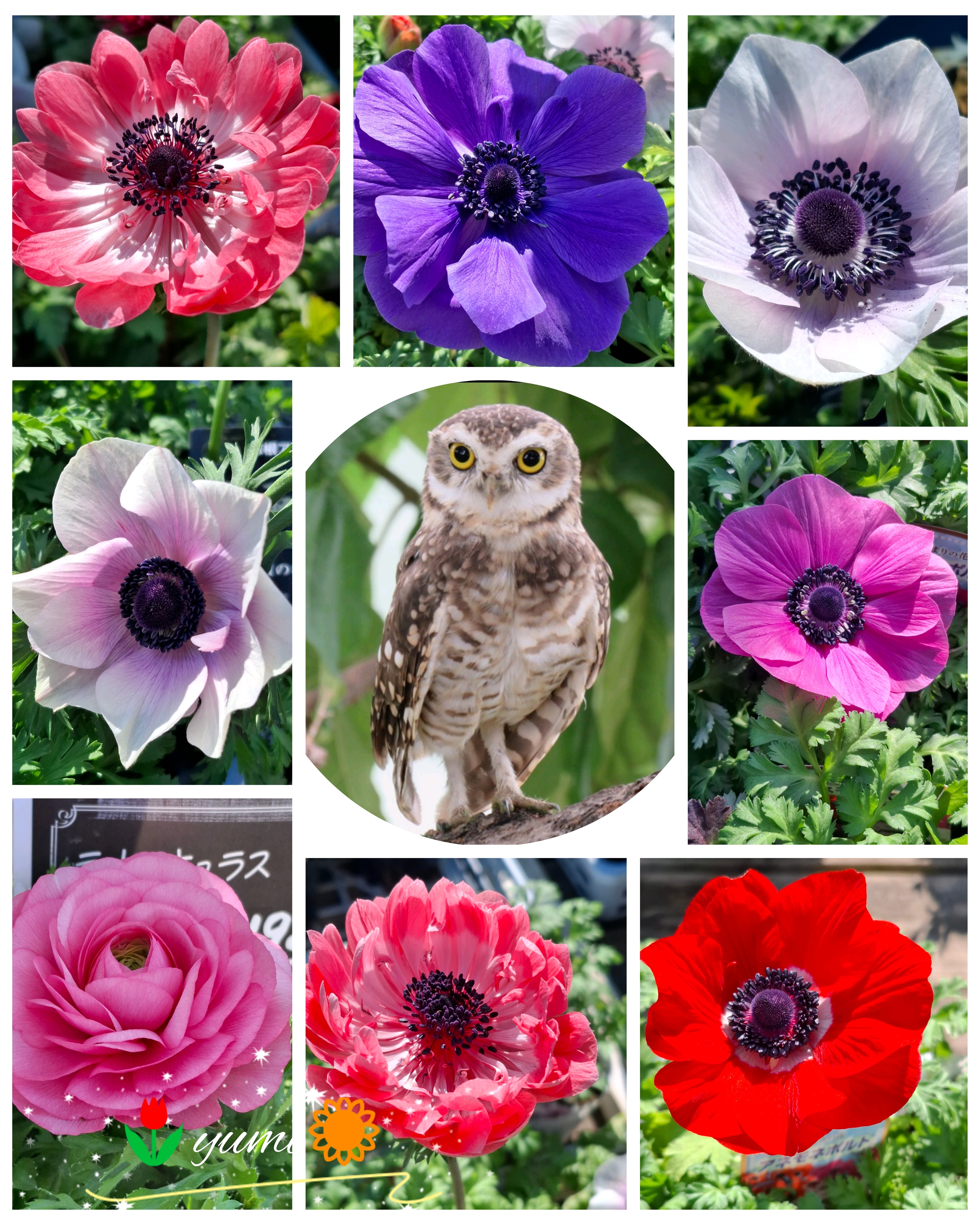 フクロウとお花のコラージュ😍