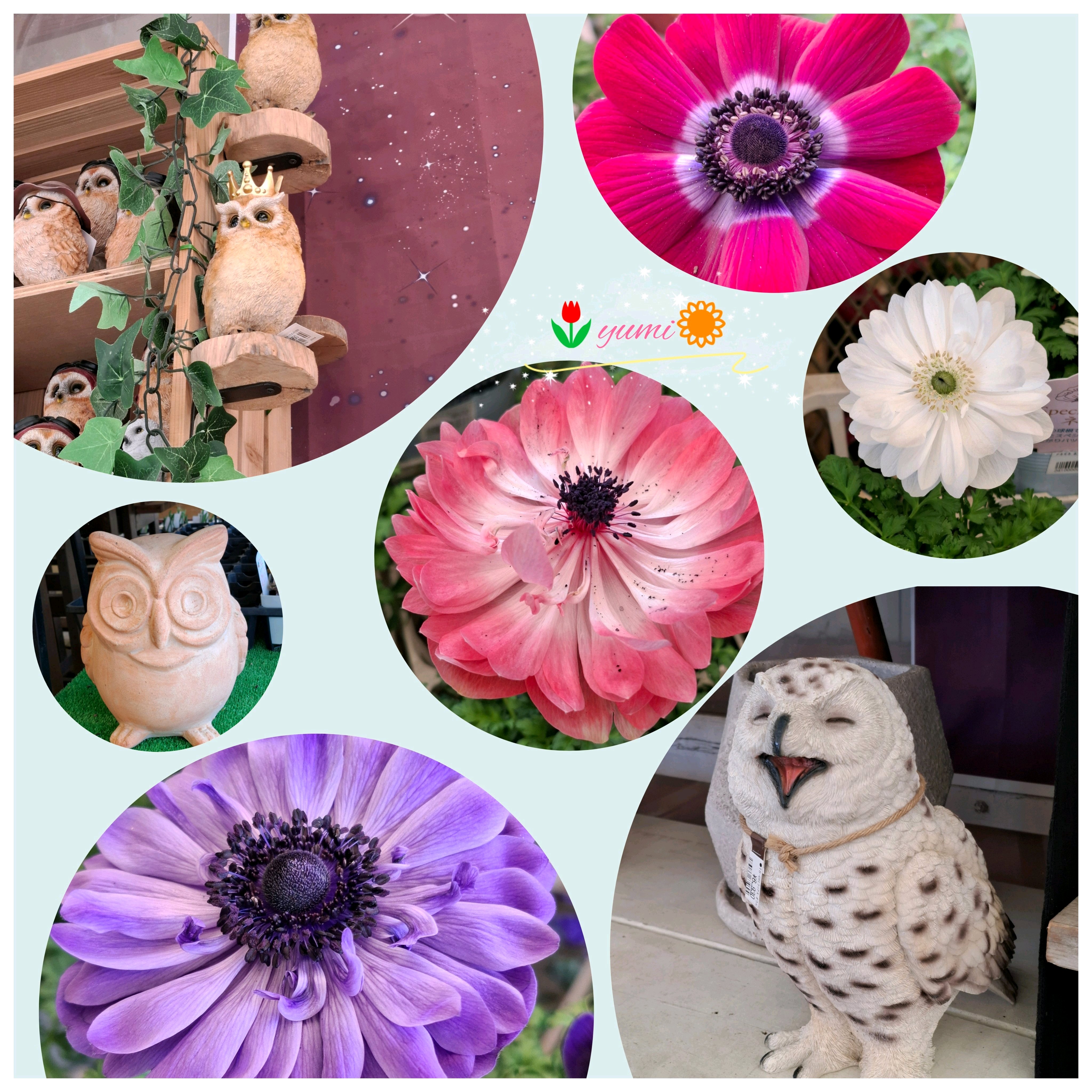 もうフクロウ🦉とお花達とのコラージュ最高です💕🤭