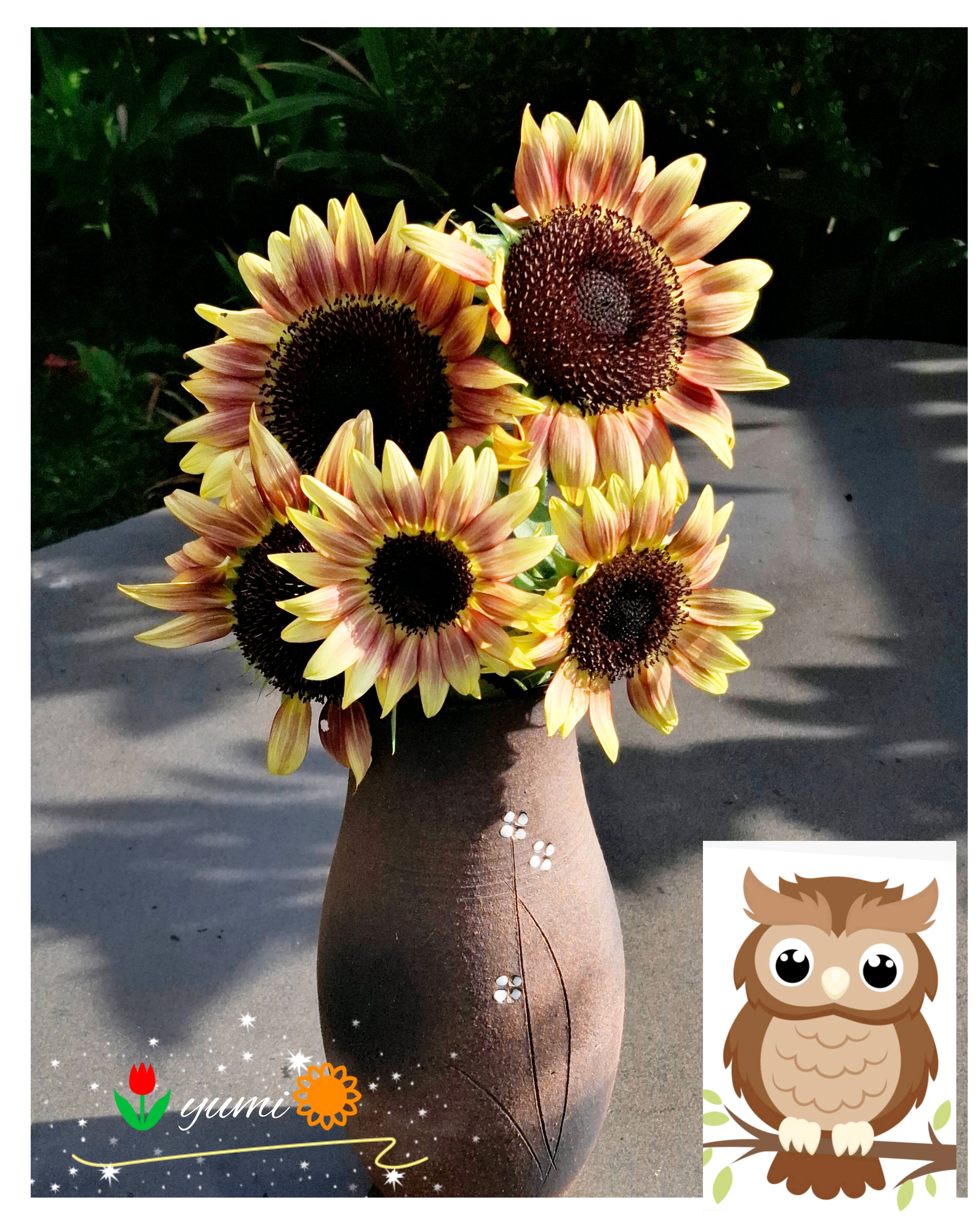 ご主人の撮ったフクロウ🦉大活躍だったね❣️ また来年も🦉とお花のコラージュ見せてね😄