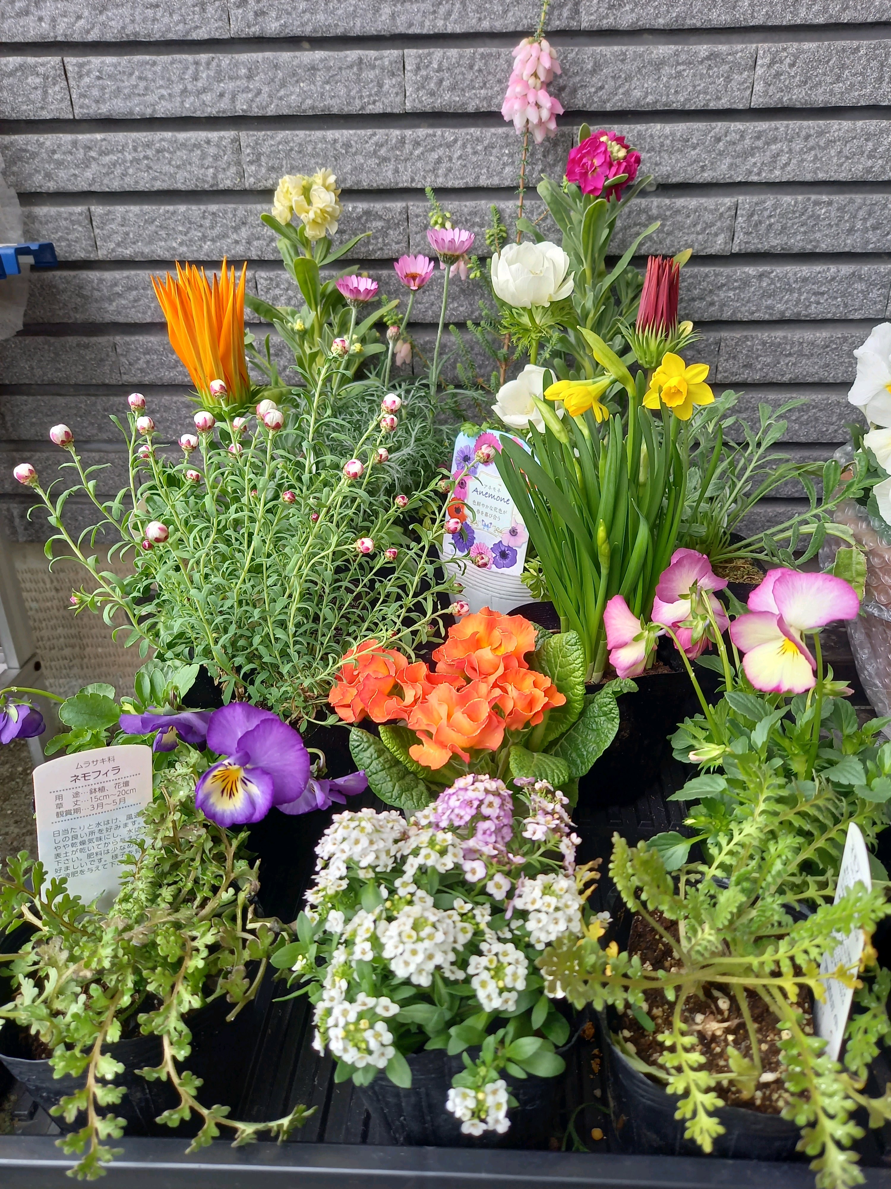 エリカ、ローダンセマム、スイセン、アネモネ、ストック、ビオラ、ハナカンザシ、ネモフィラ、プリムラ、アリッサム、さとふるより