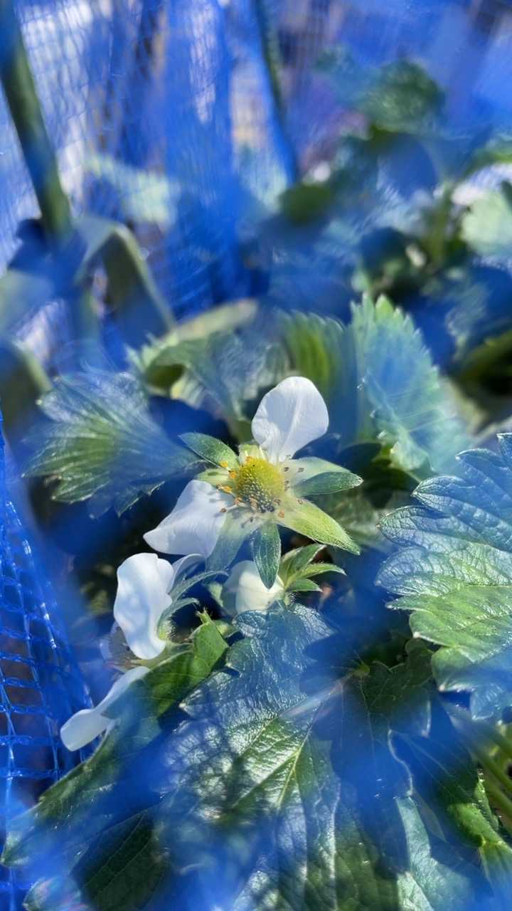 🍓には、虫さんが受粉できるように、防鳥ネットをつけました。ムクドリが毎朝ギャーギャー鳴いてます😅