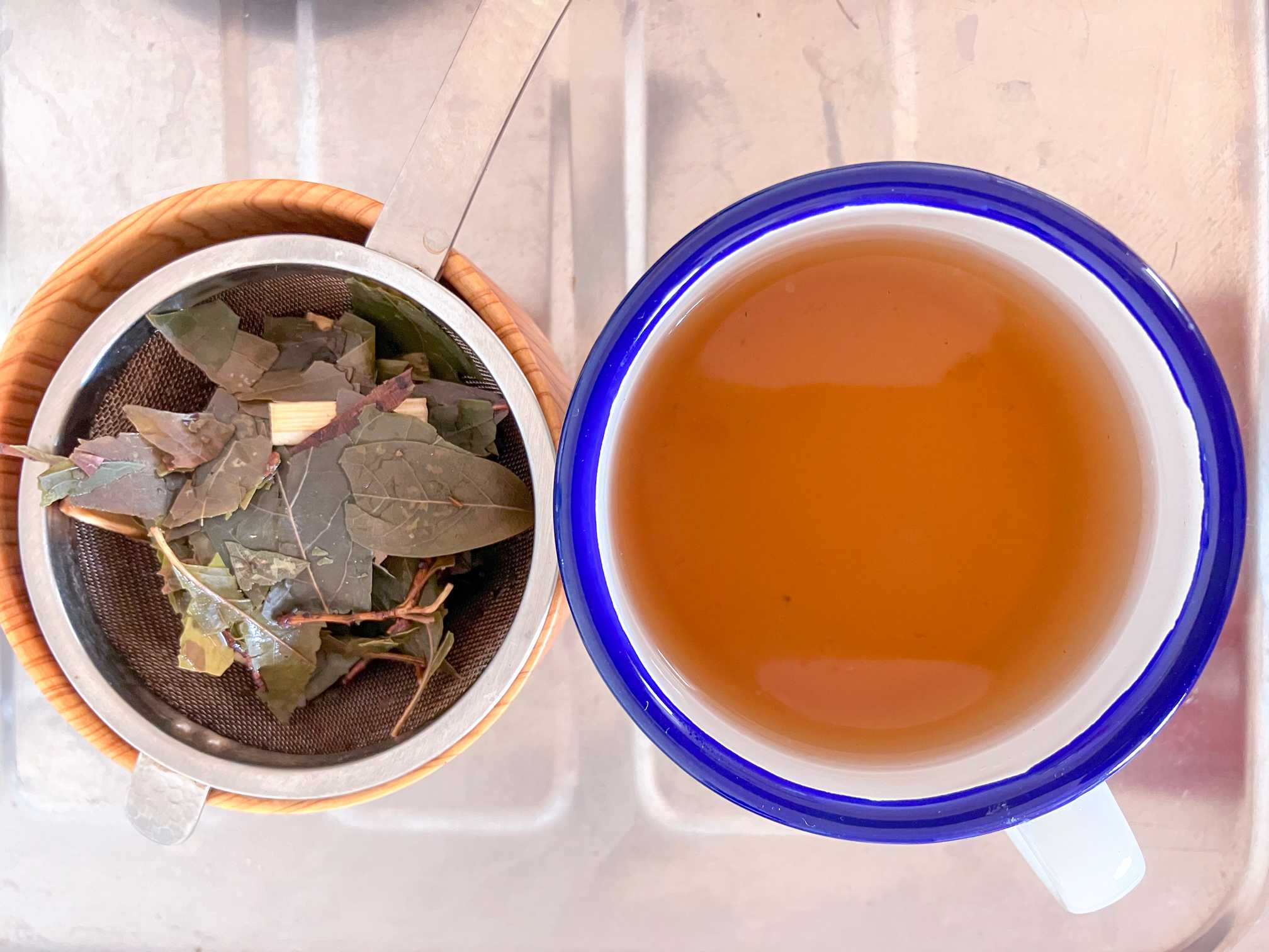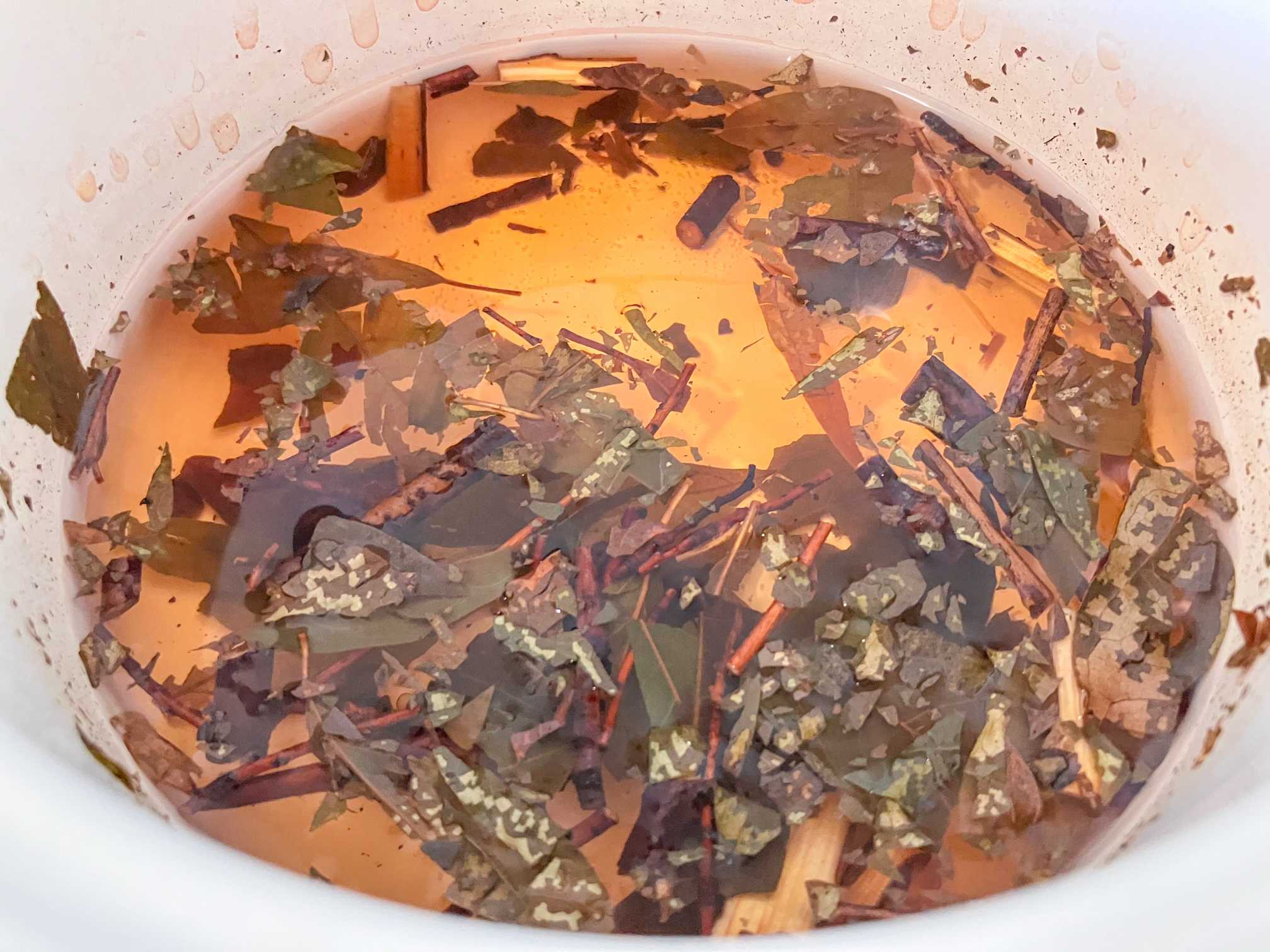 油分を含む芳香ふんわりのサーモンピンクの色の煎じ液はお茶にお風呂に化粧水に幅広く活躍して貰おう