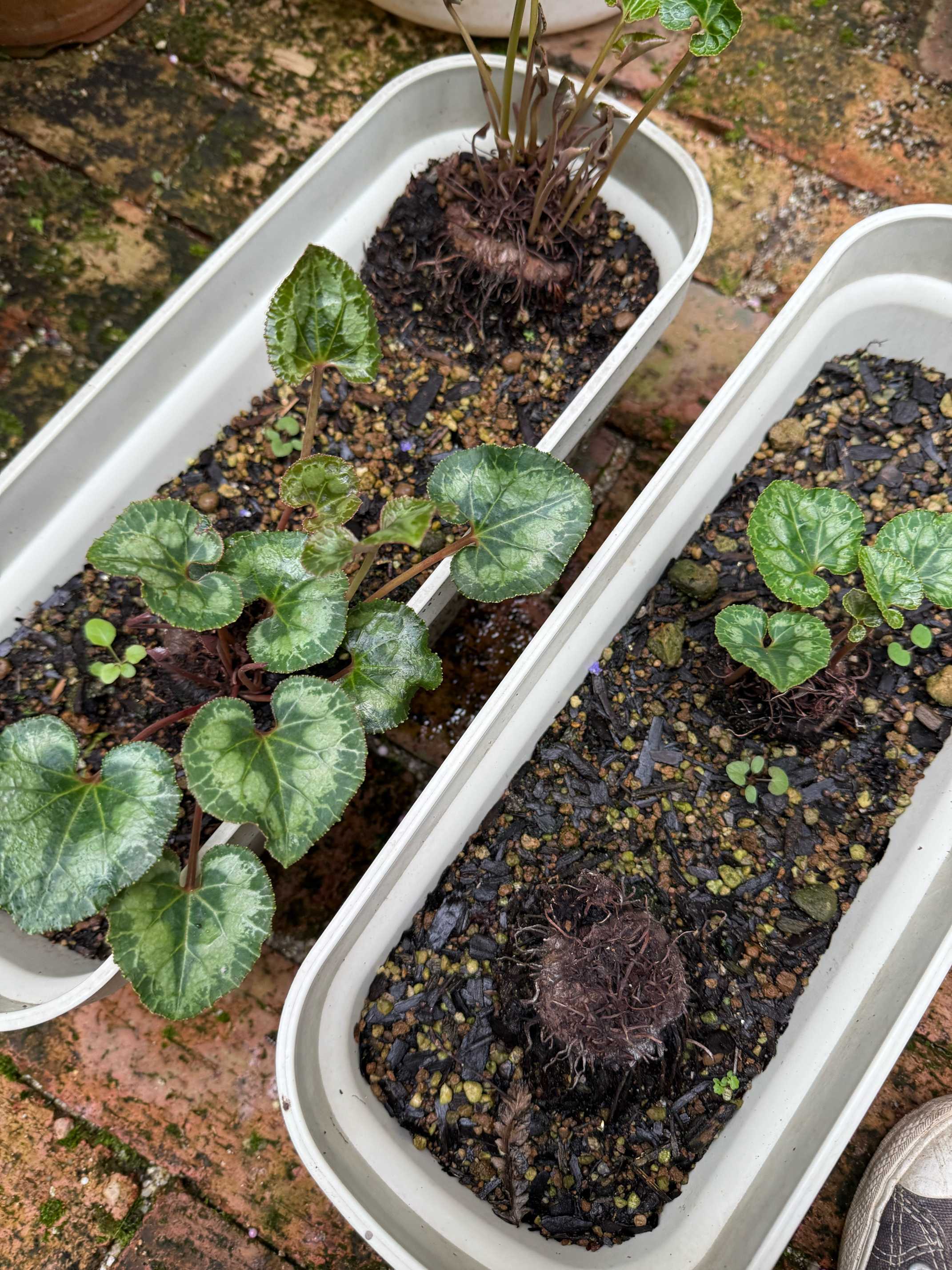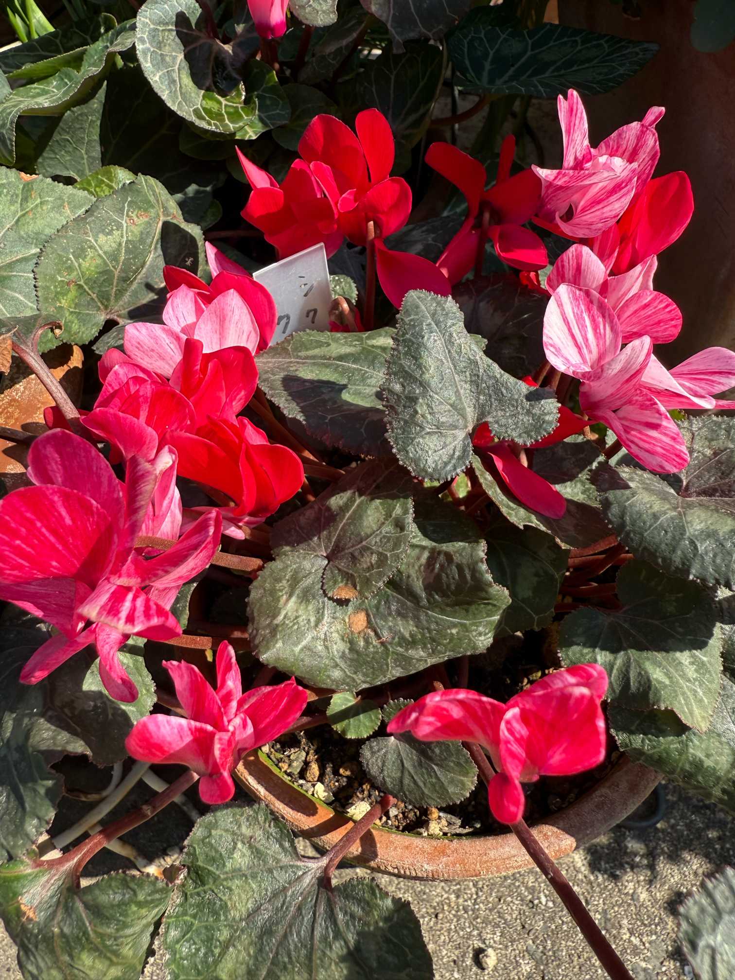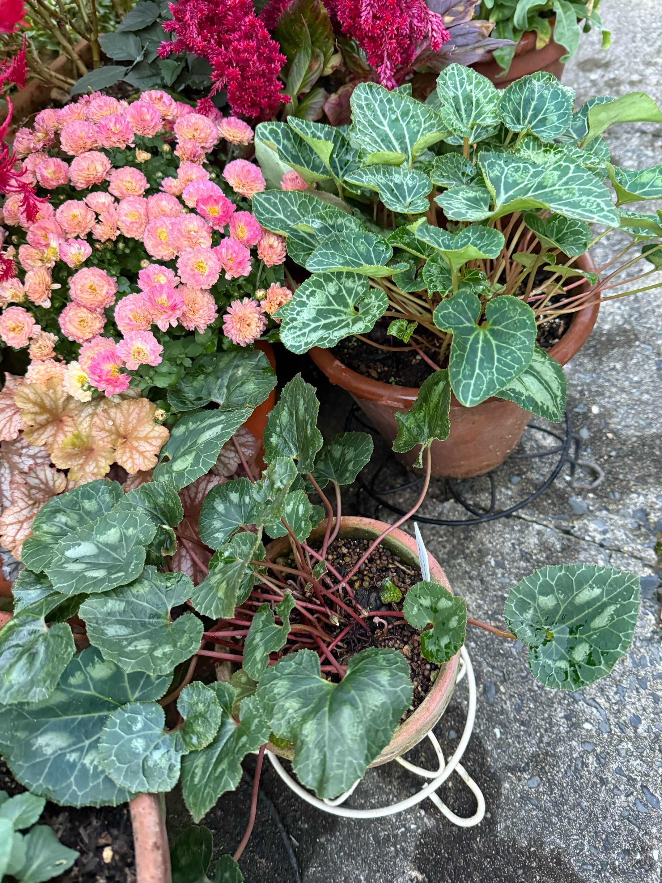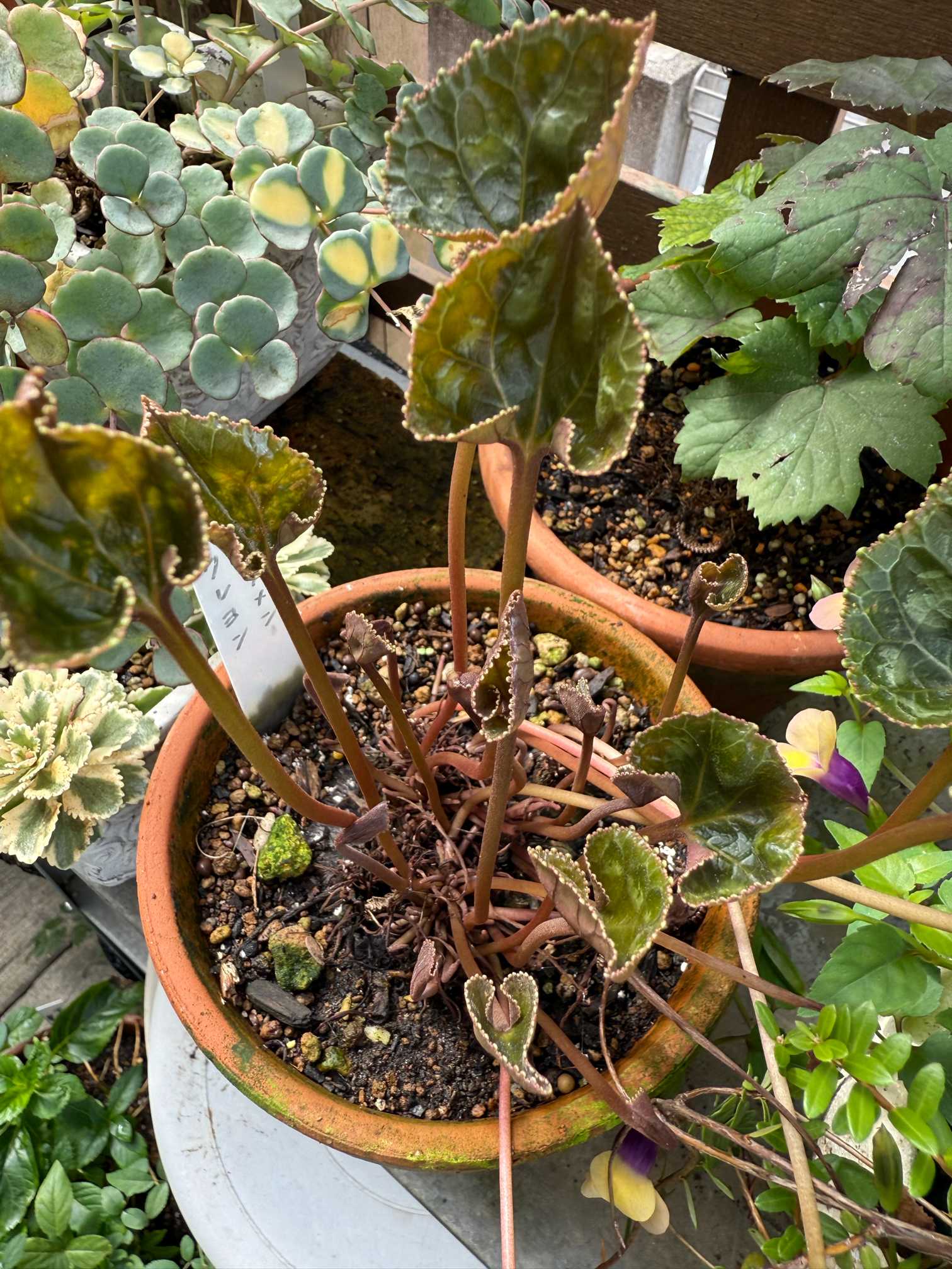 去年のガーデンシクラメンを一鉢にぶっ込んだもの。