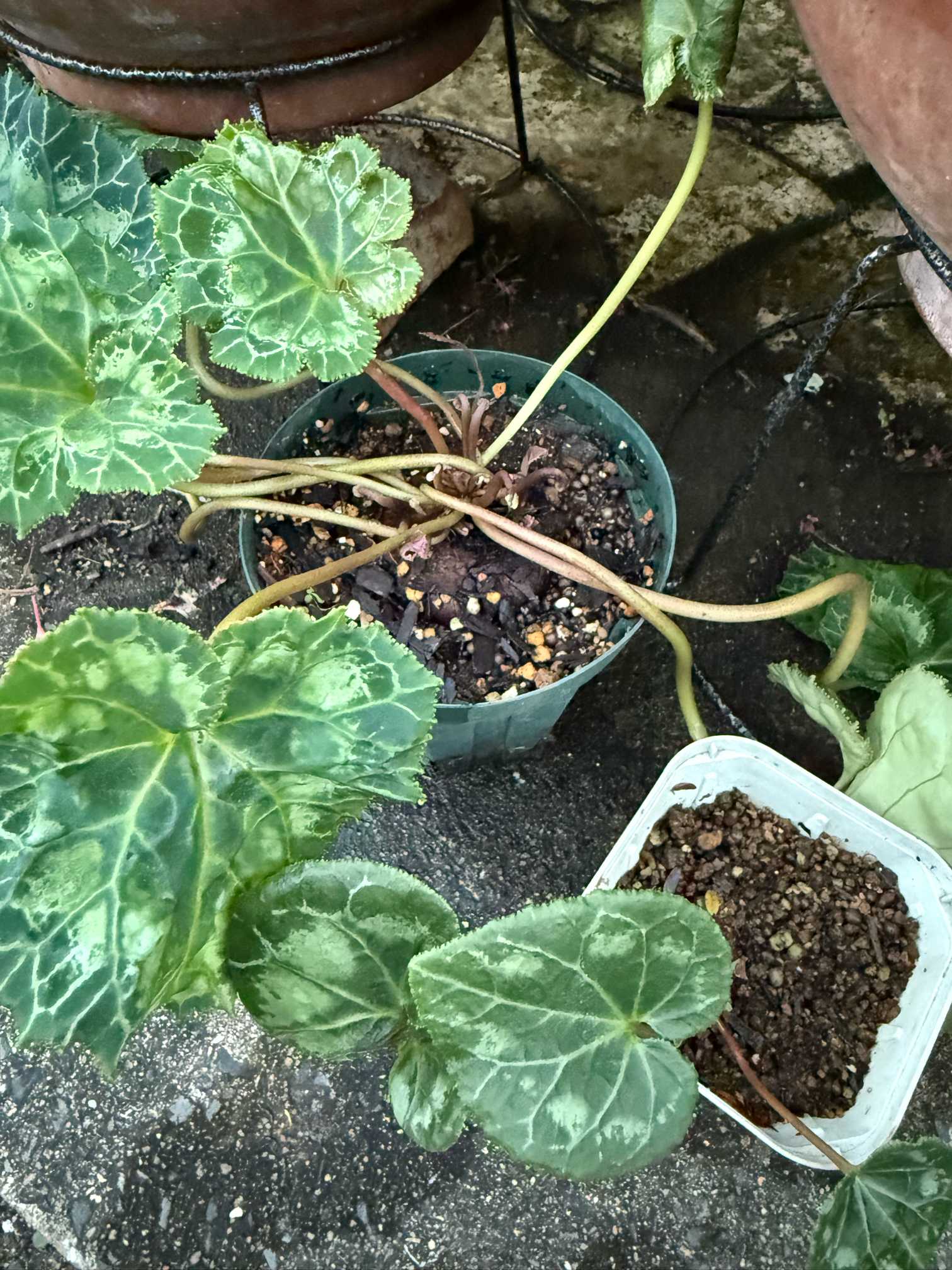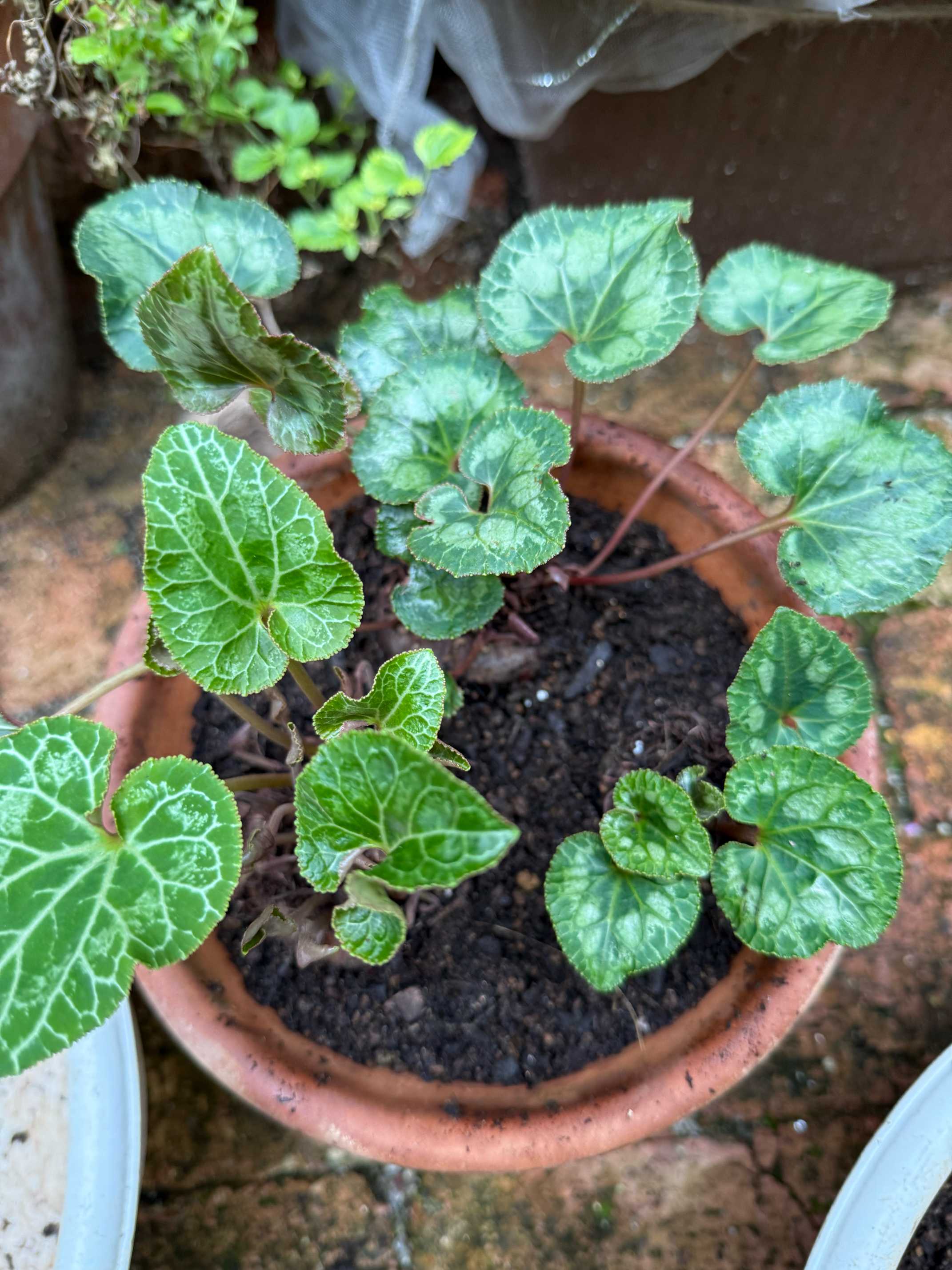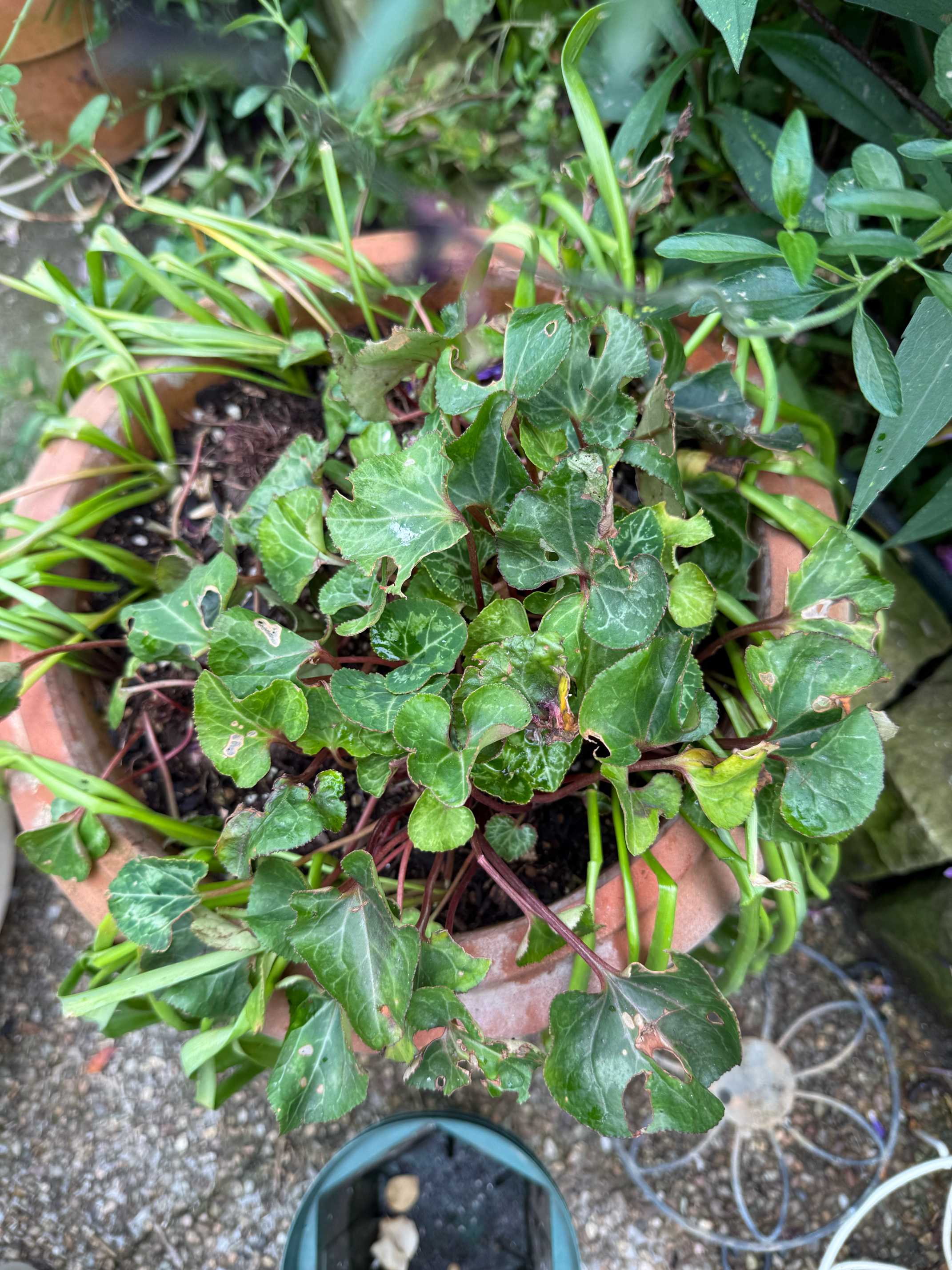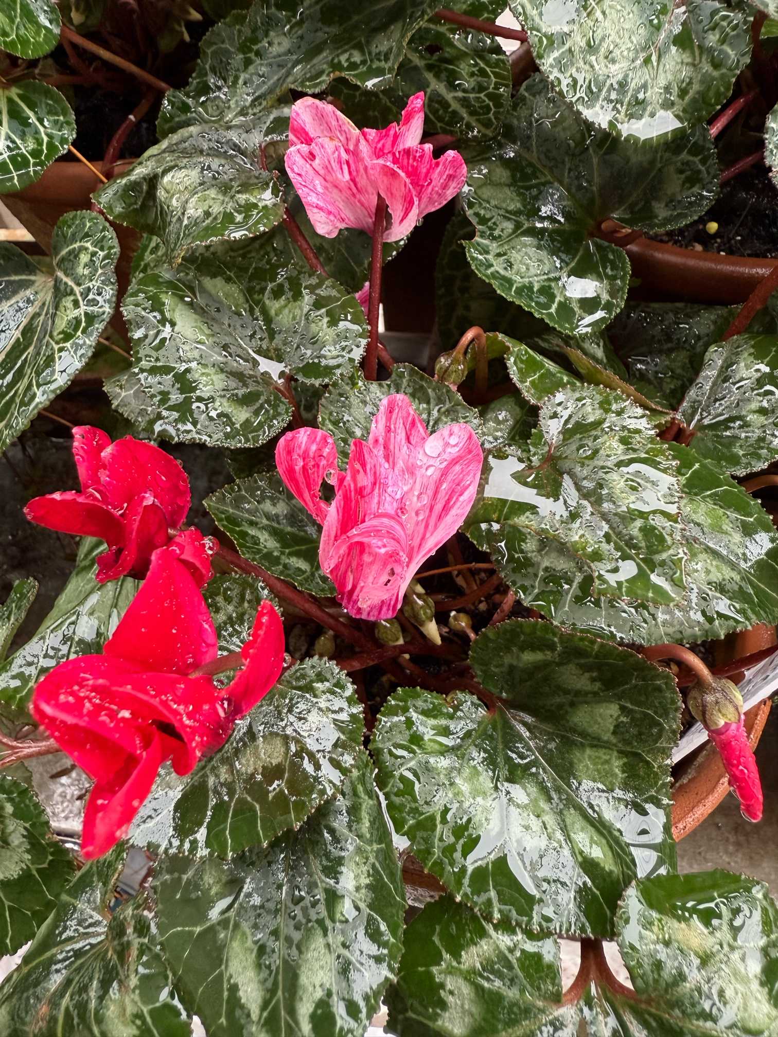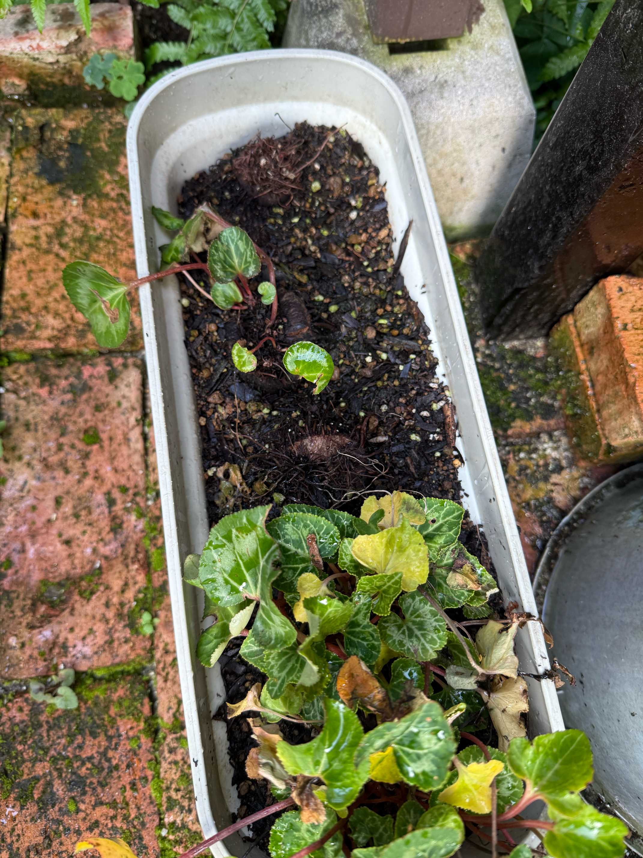 去年のガーデンシクラメンを一鉢にぶっ込んだもの。