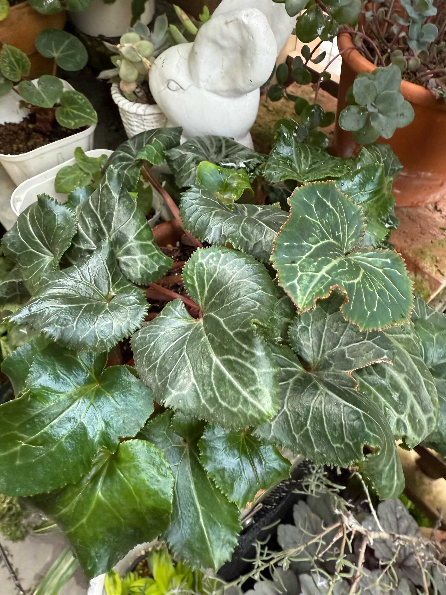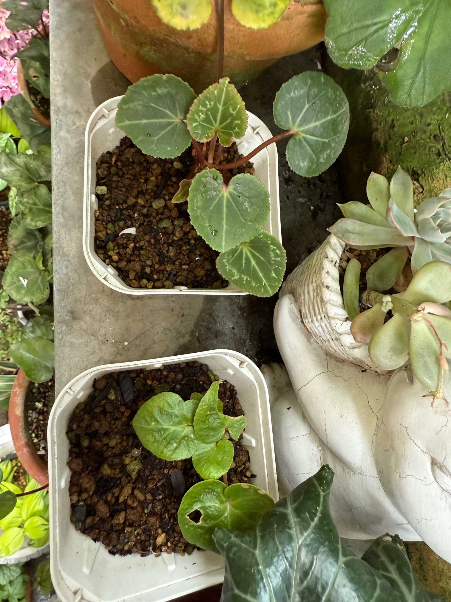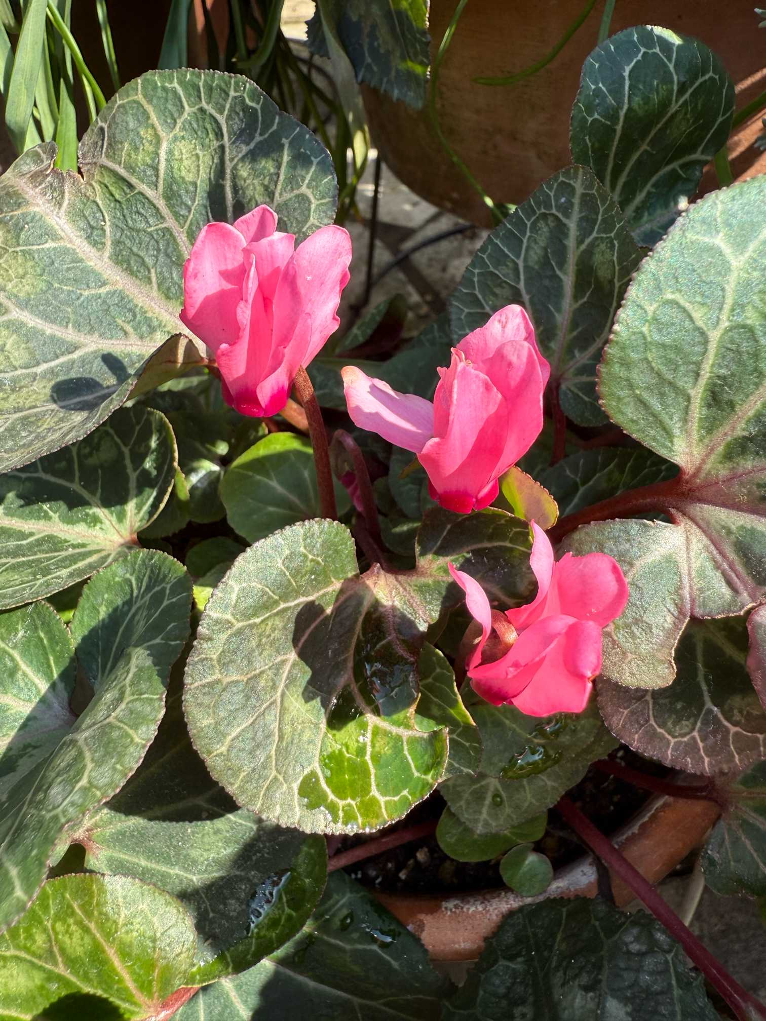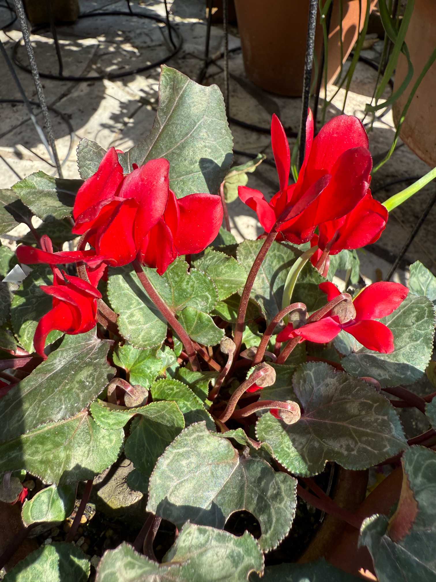 去年のガーデンシクラメンを一鉢にぶっ込んだもの。
