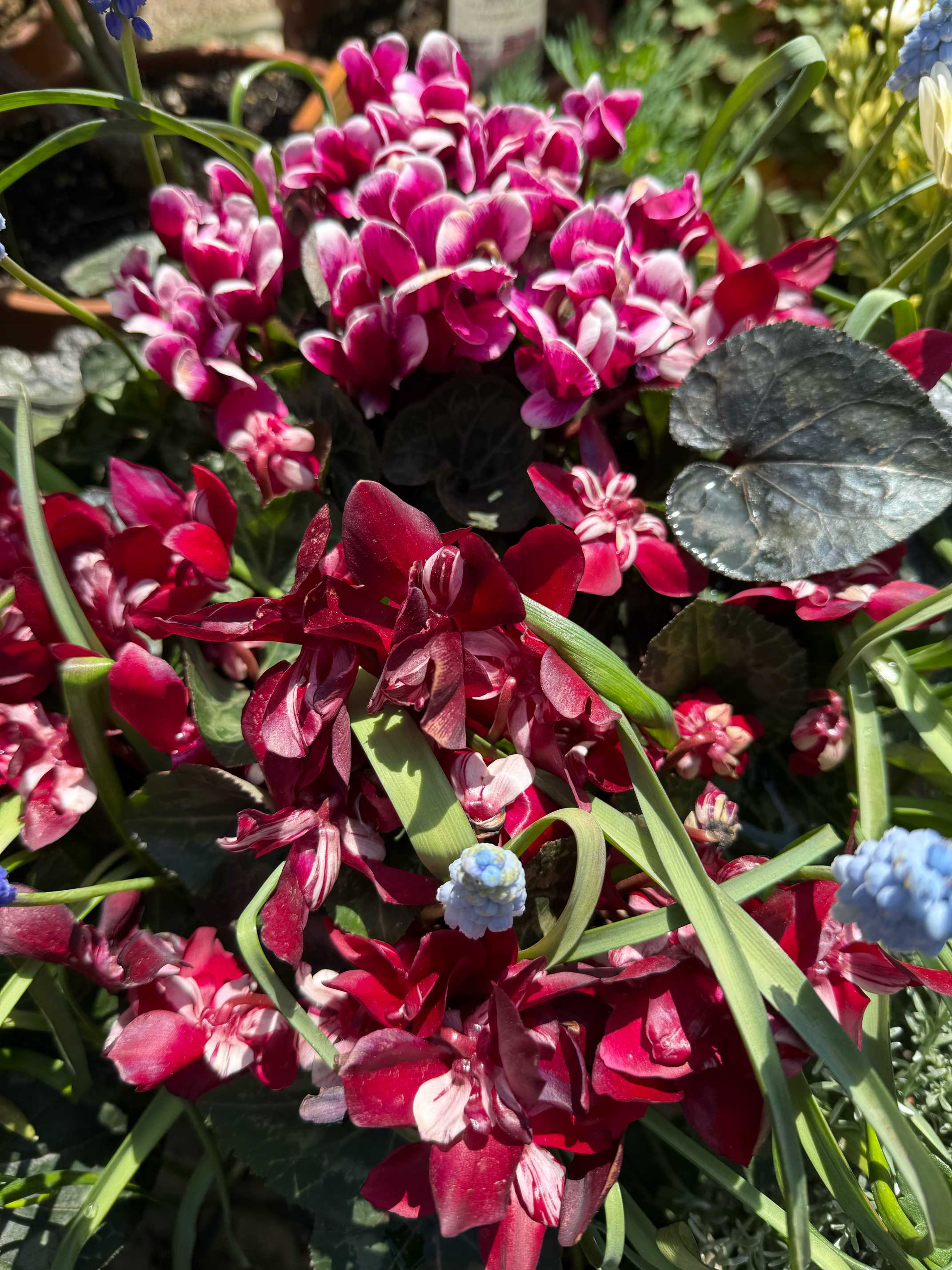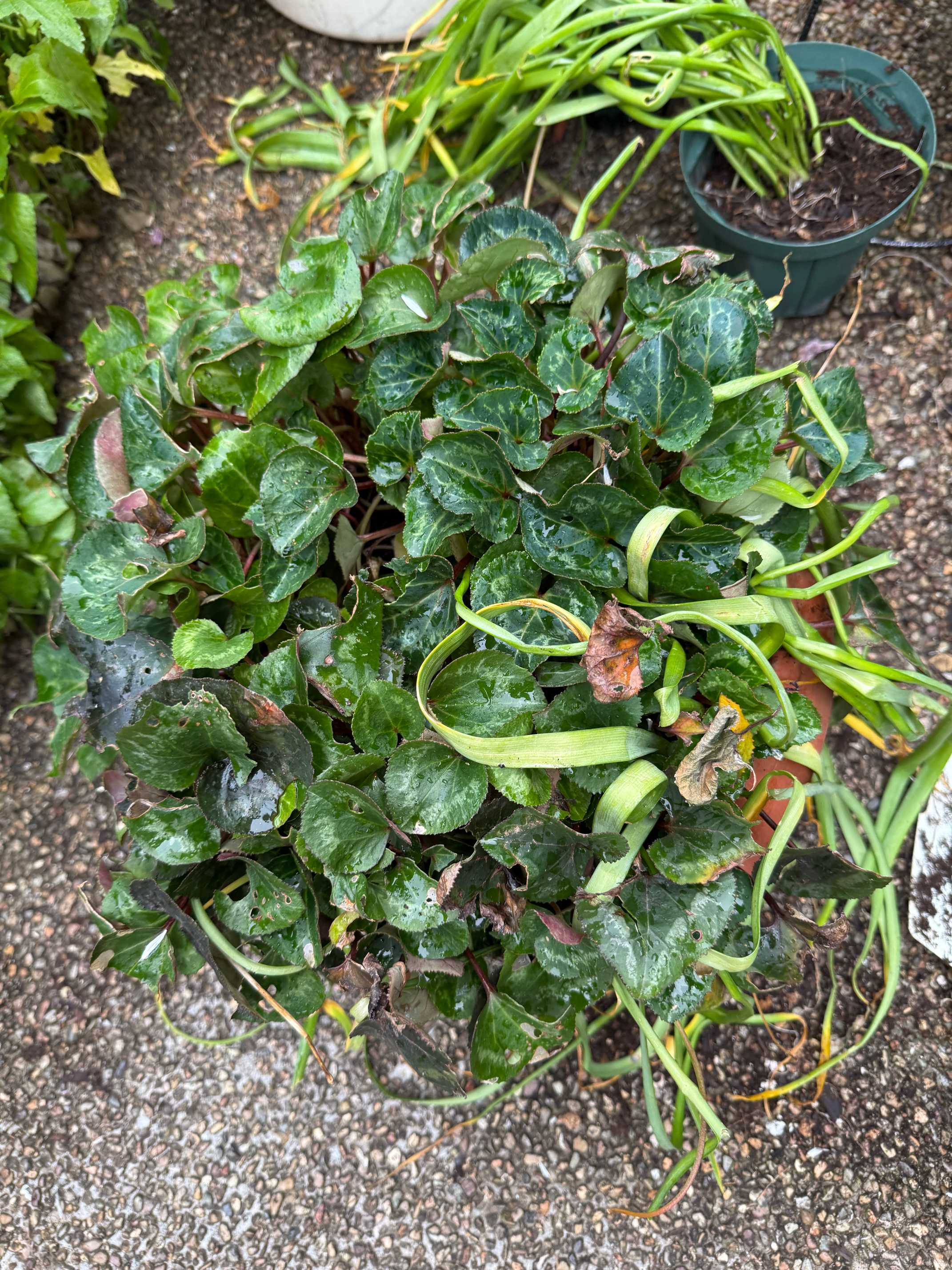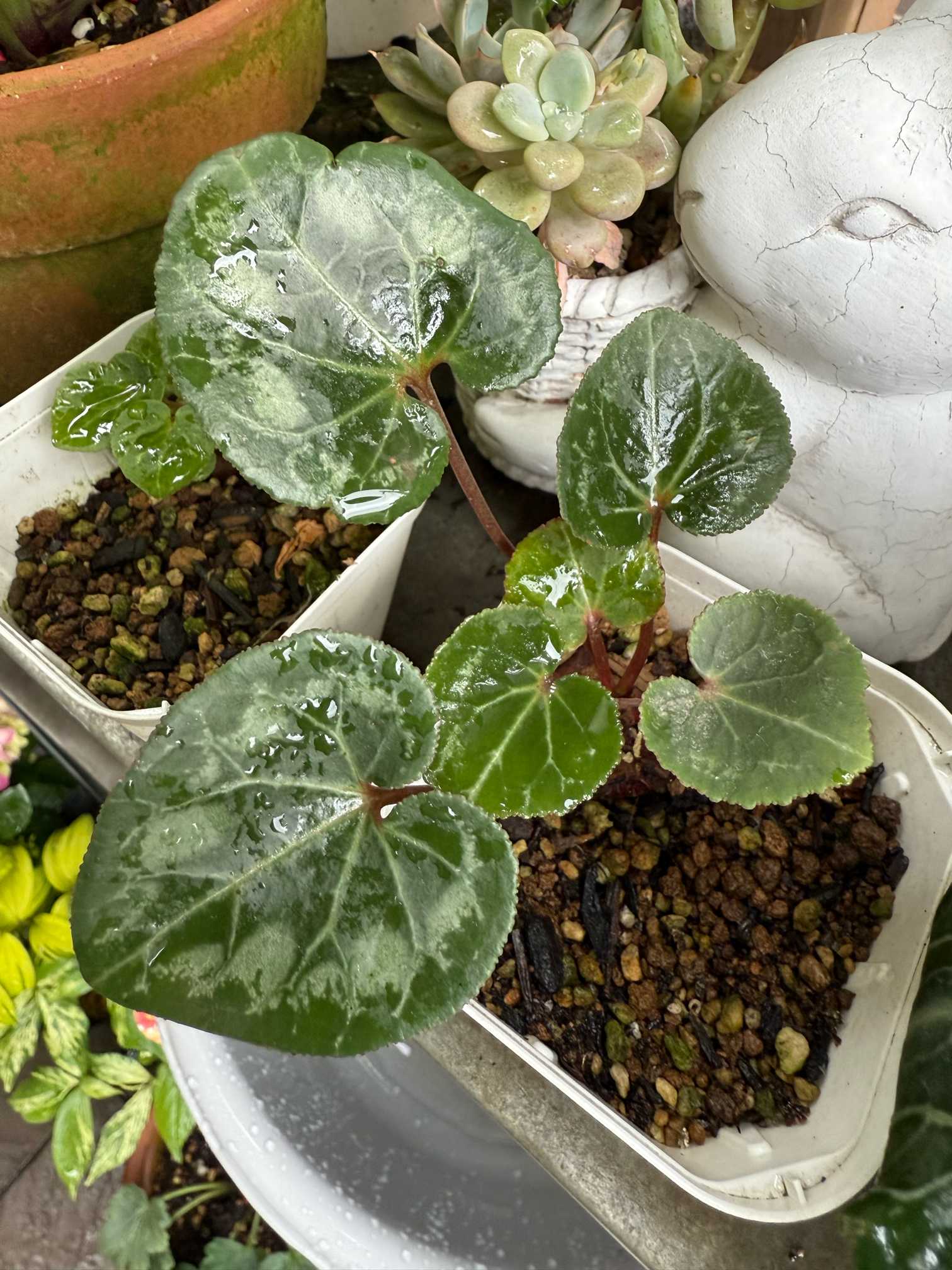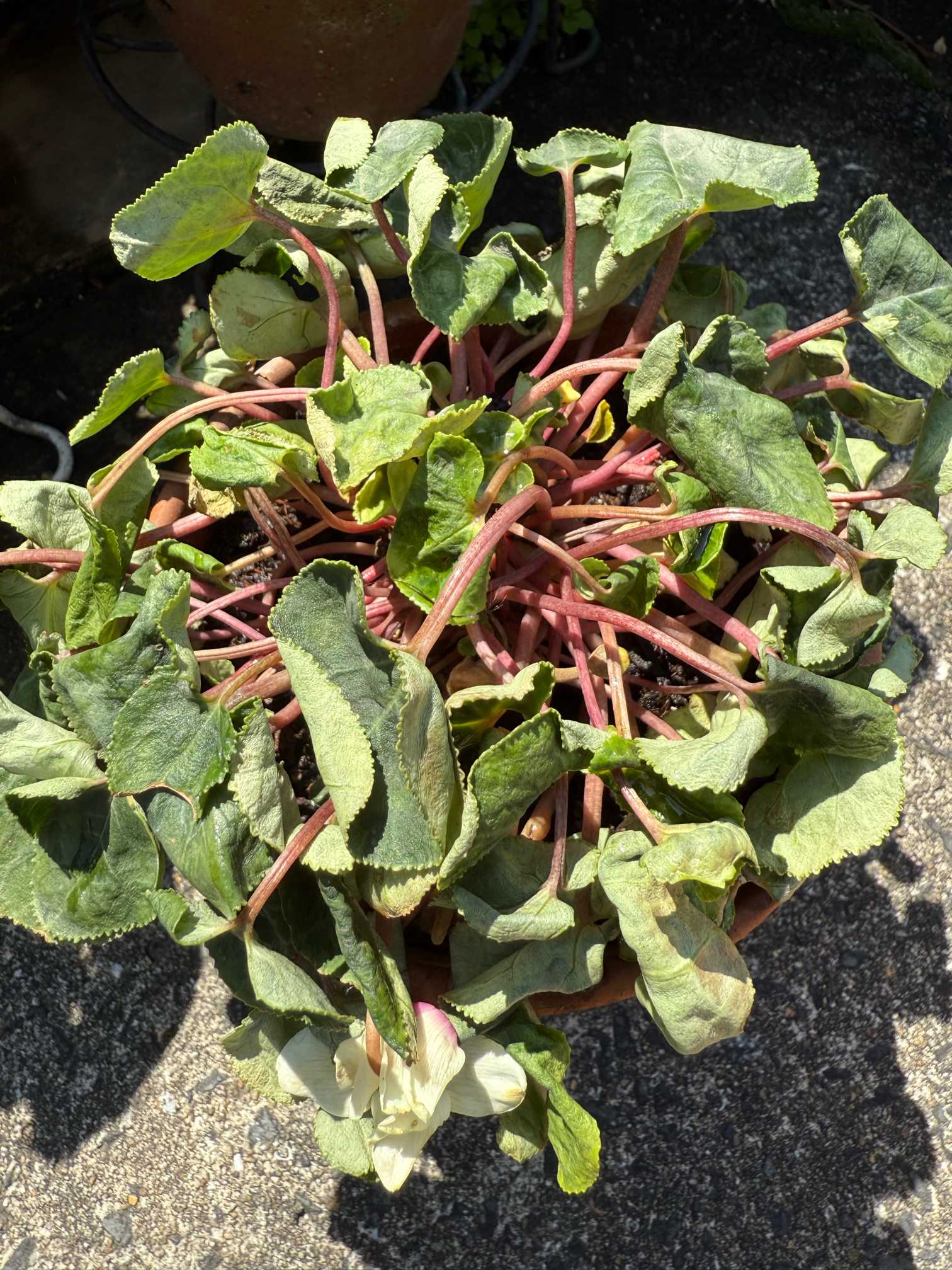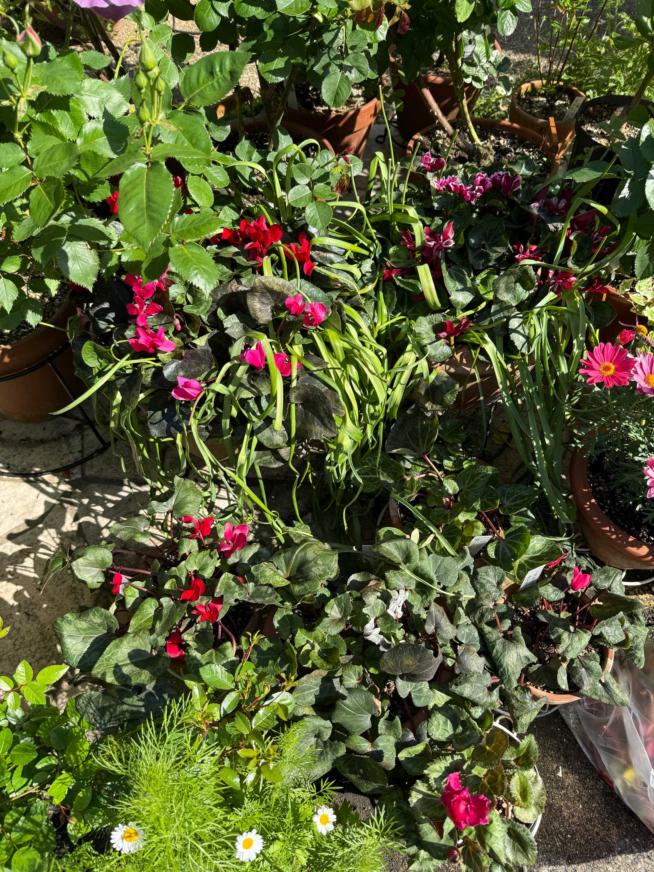 去年のガーデンシクラメンを一鉢にぶっ込んだもの。