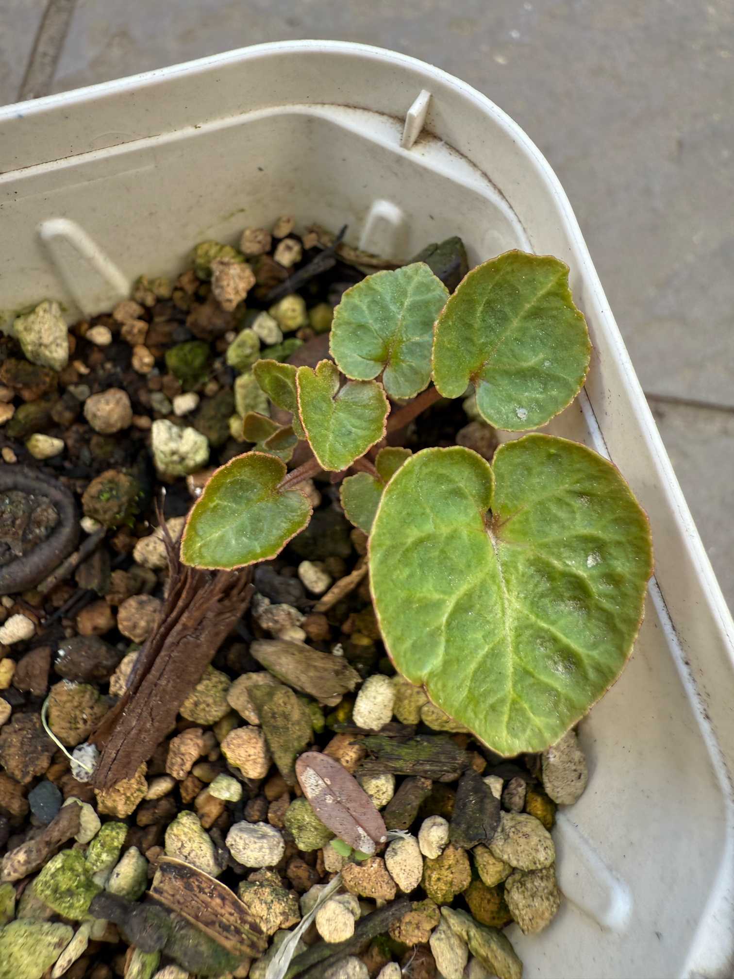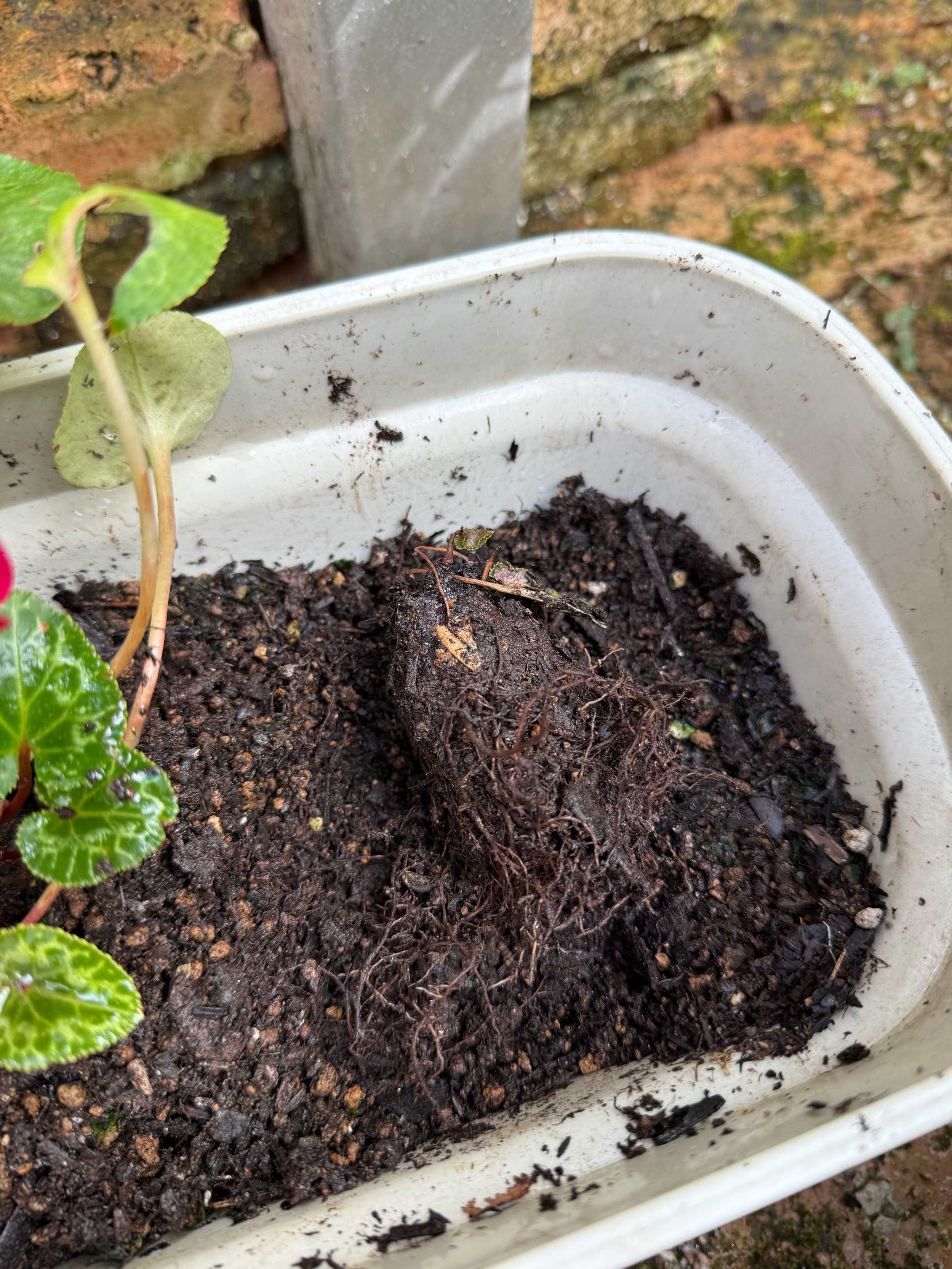 マイクロシクラメンの部類だけあって球根がめちゃくちゃ小さい。多分3センチ無いかもしれない。