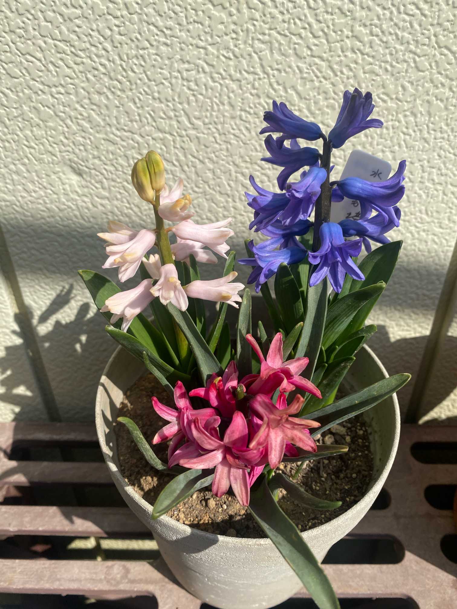 赤は枯れてしまいましたが、ピンクと紫が元気で、良い香りを漂わせています。