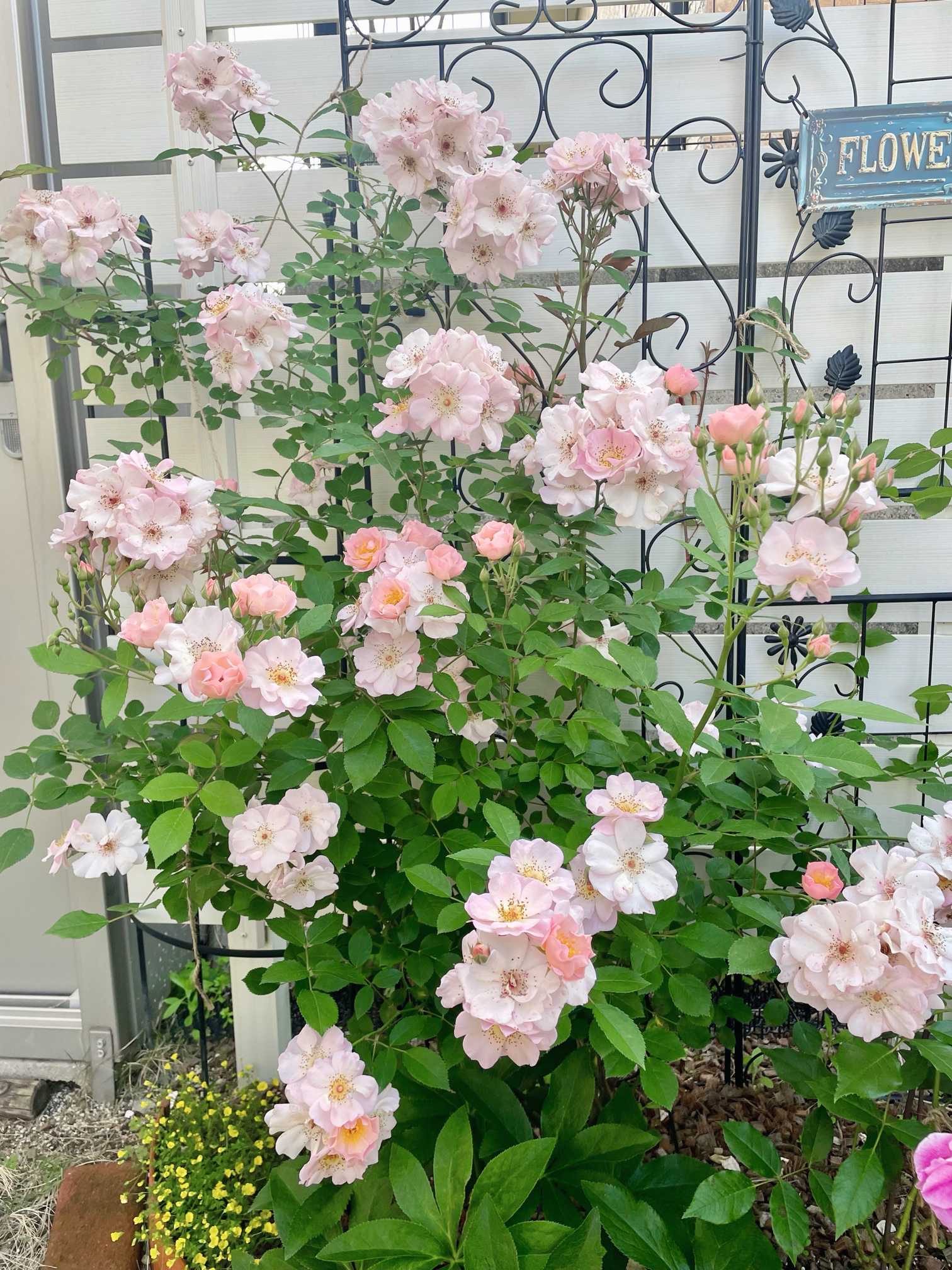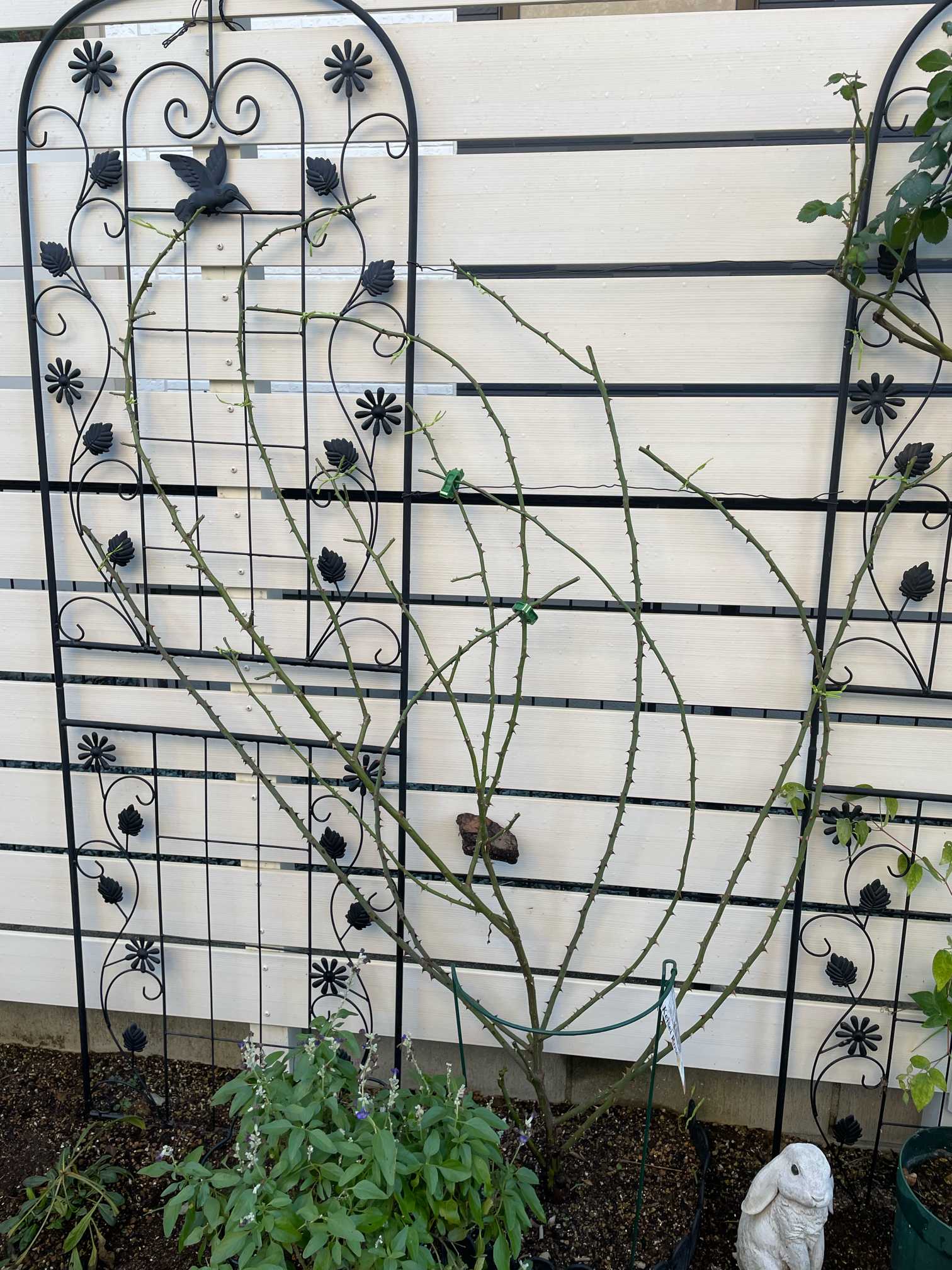 レイニーブルーは花が咲くと物凄く枝垂れるのを学習したので、横に倒すよりかは上に上げるのを優先しました!