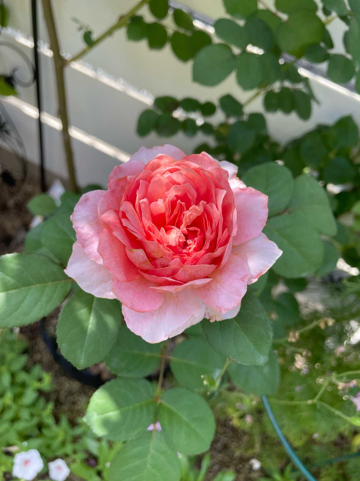 分類はシュラブですが、3mほどまで伸びるとのことなのでつる仕立てにすることにしました。