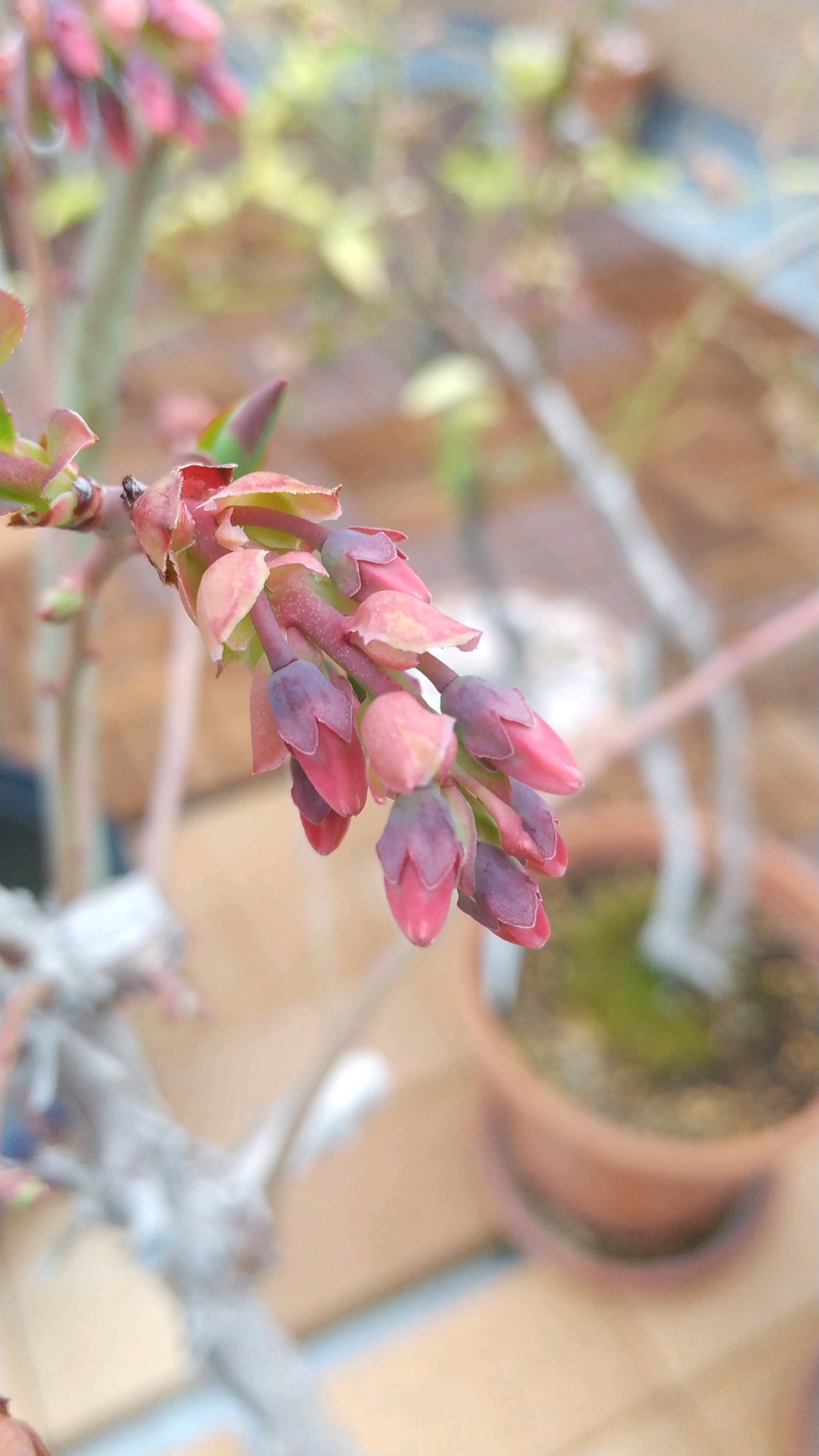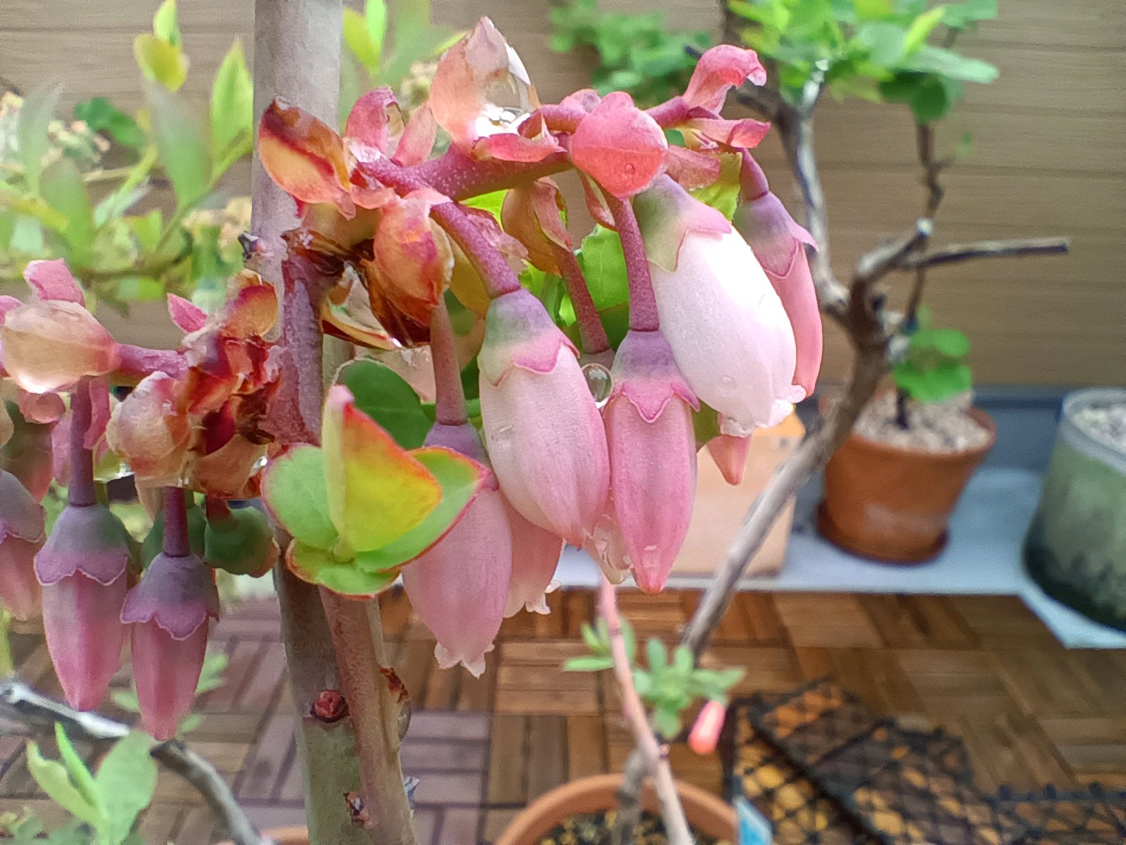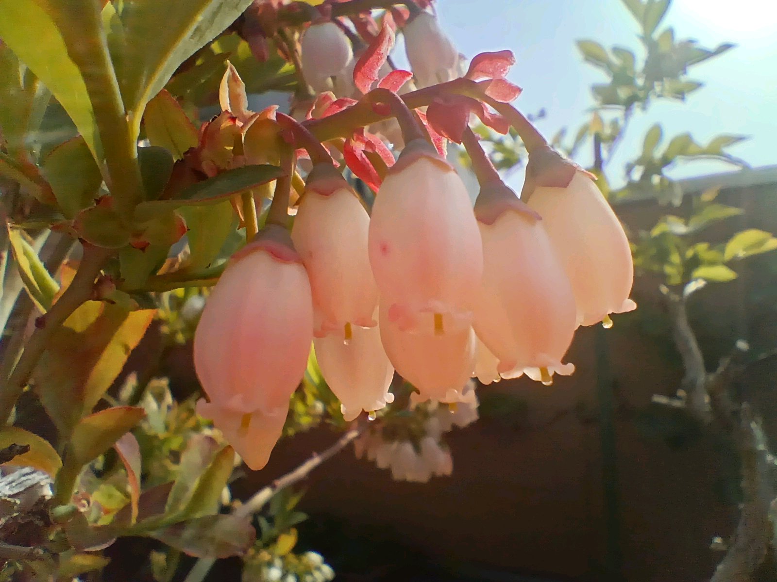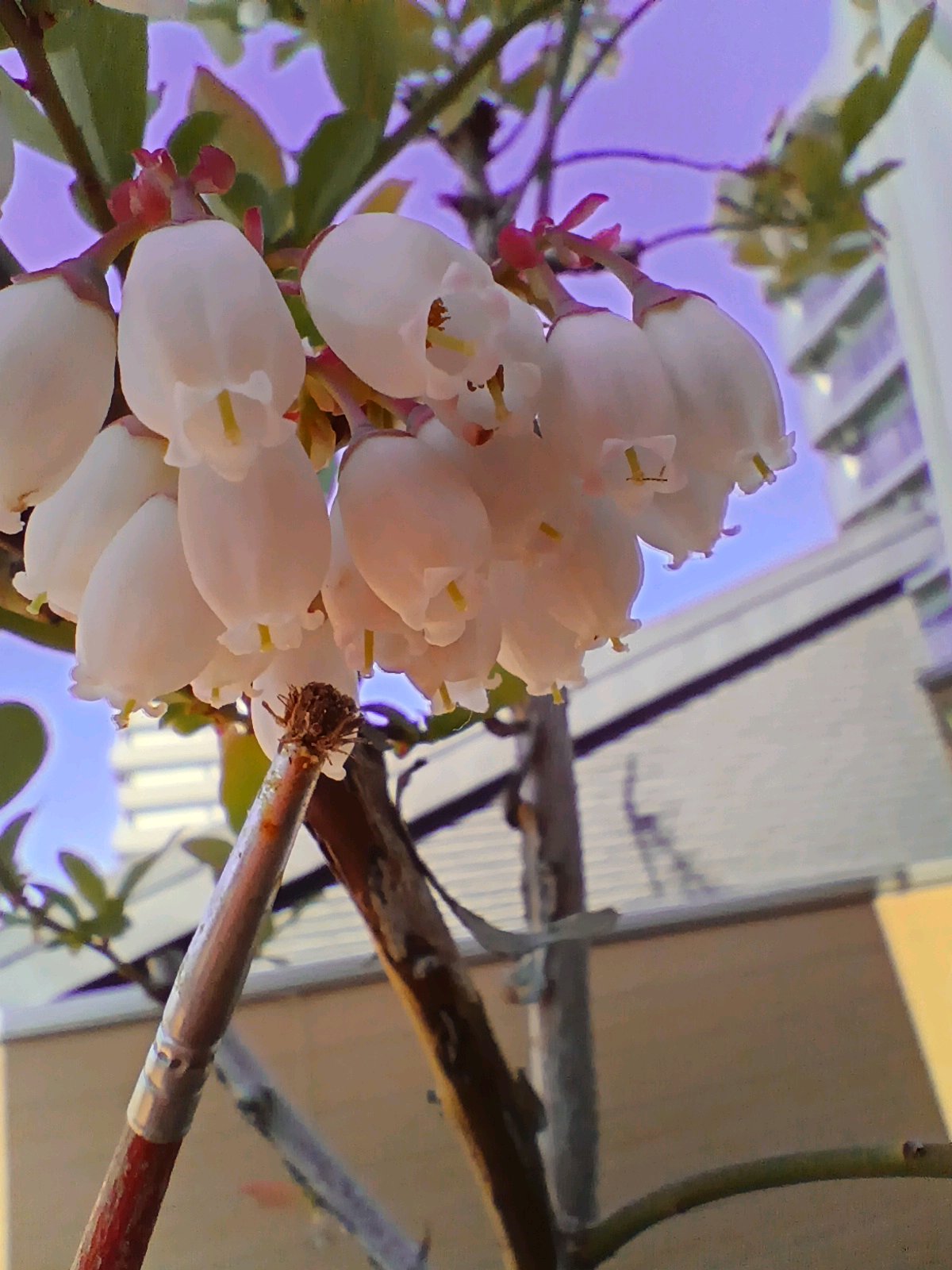 開花 がくに赤みがある。アントシアニンか。昨年は花も少なく、花粉もとれなかった。今年はどうか気になります。