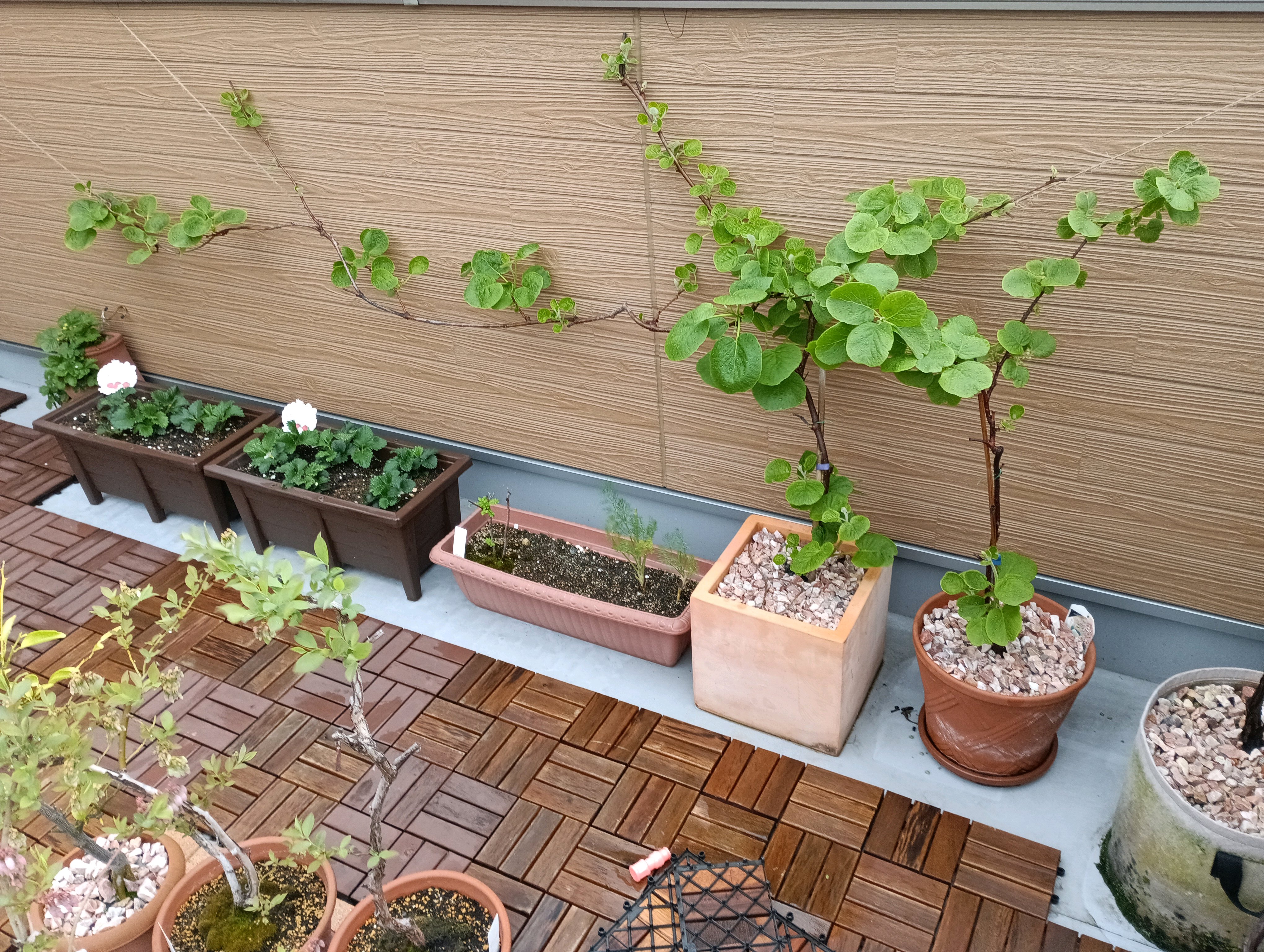 アボカド、ワイルドストロベリー、デラウェア、レッドキウイは粒の肥料を数粒ずつ(推奨量より少ない)置き肥(いつどれくらい肥料をやるといいかわからないので余った粒を鉢に分散させた)