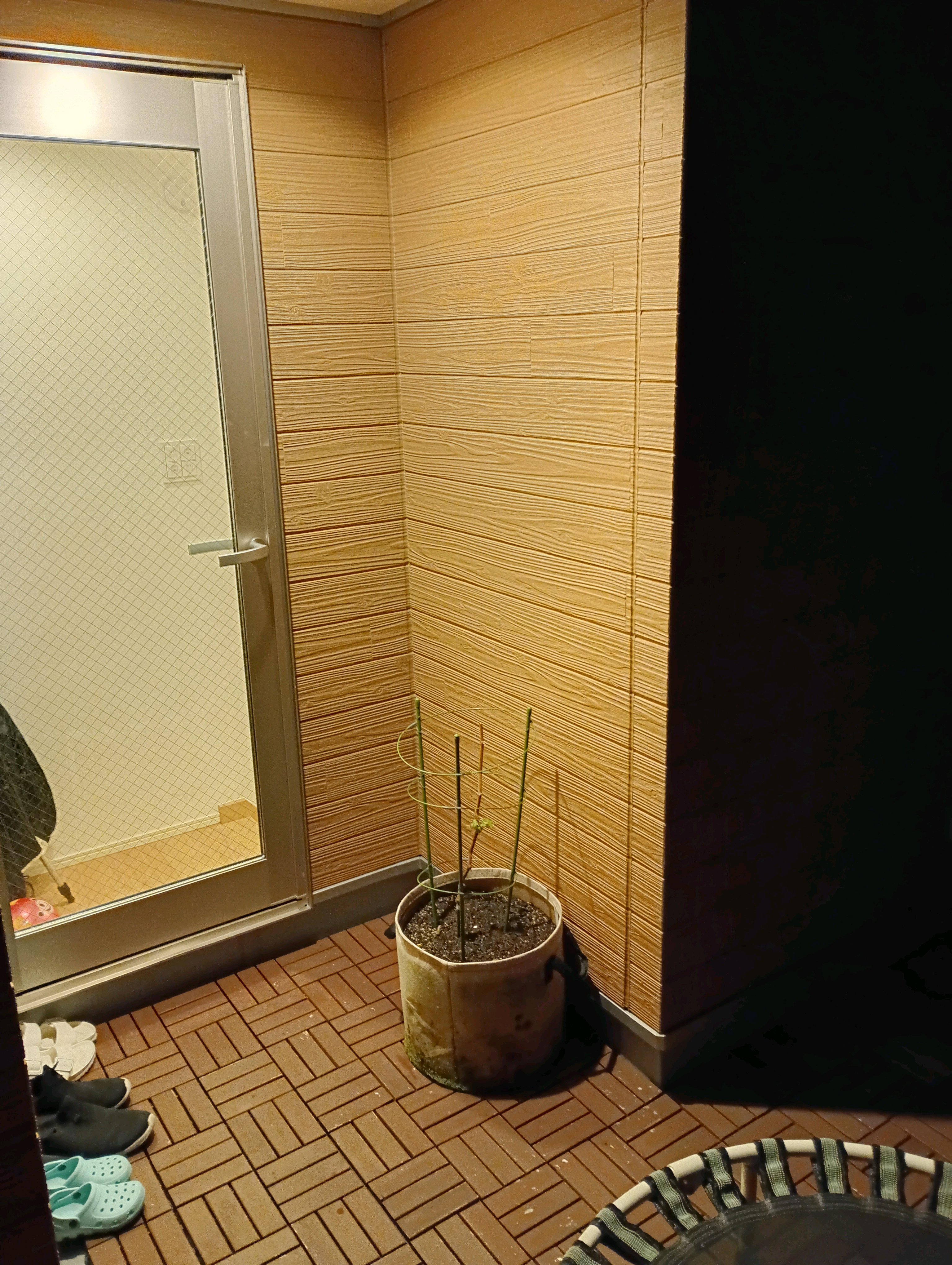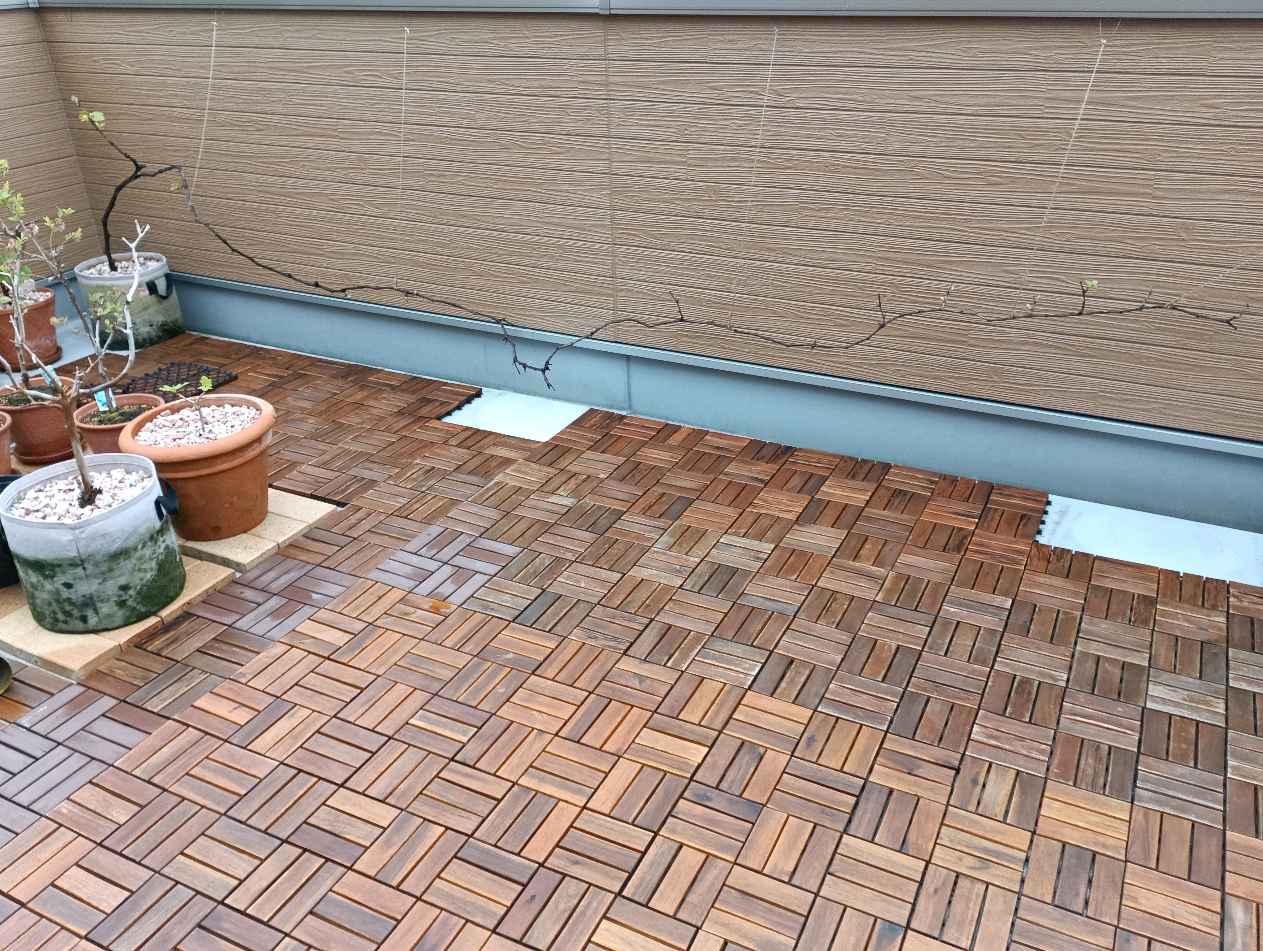 支柱を外して、麻紐と手すりで支持。