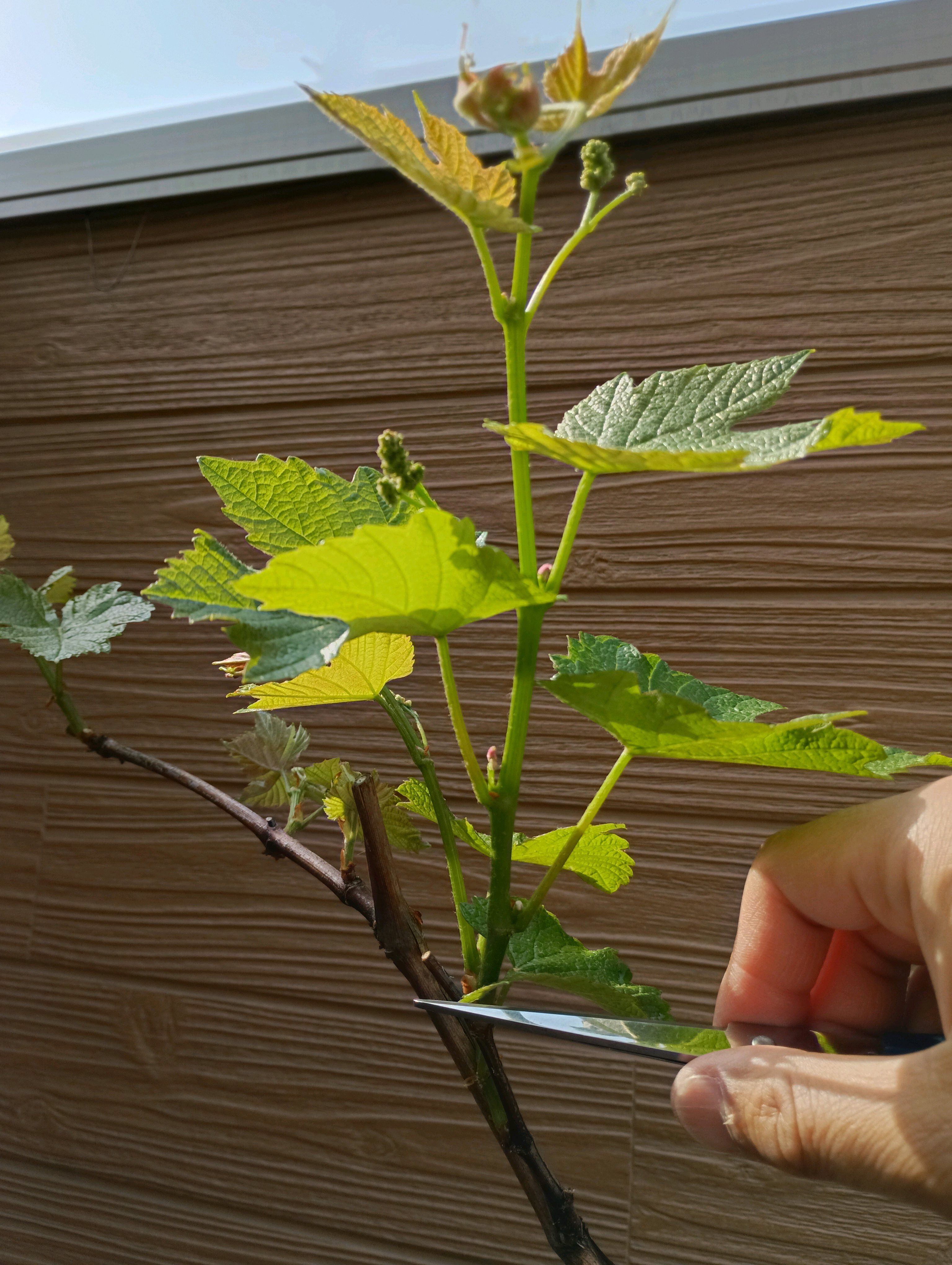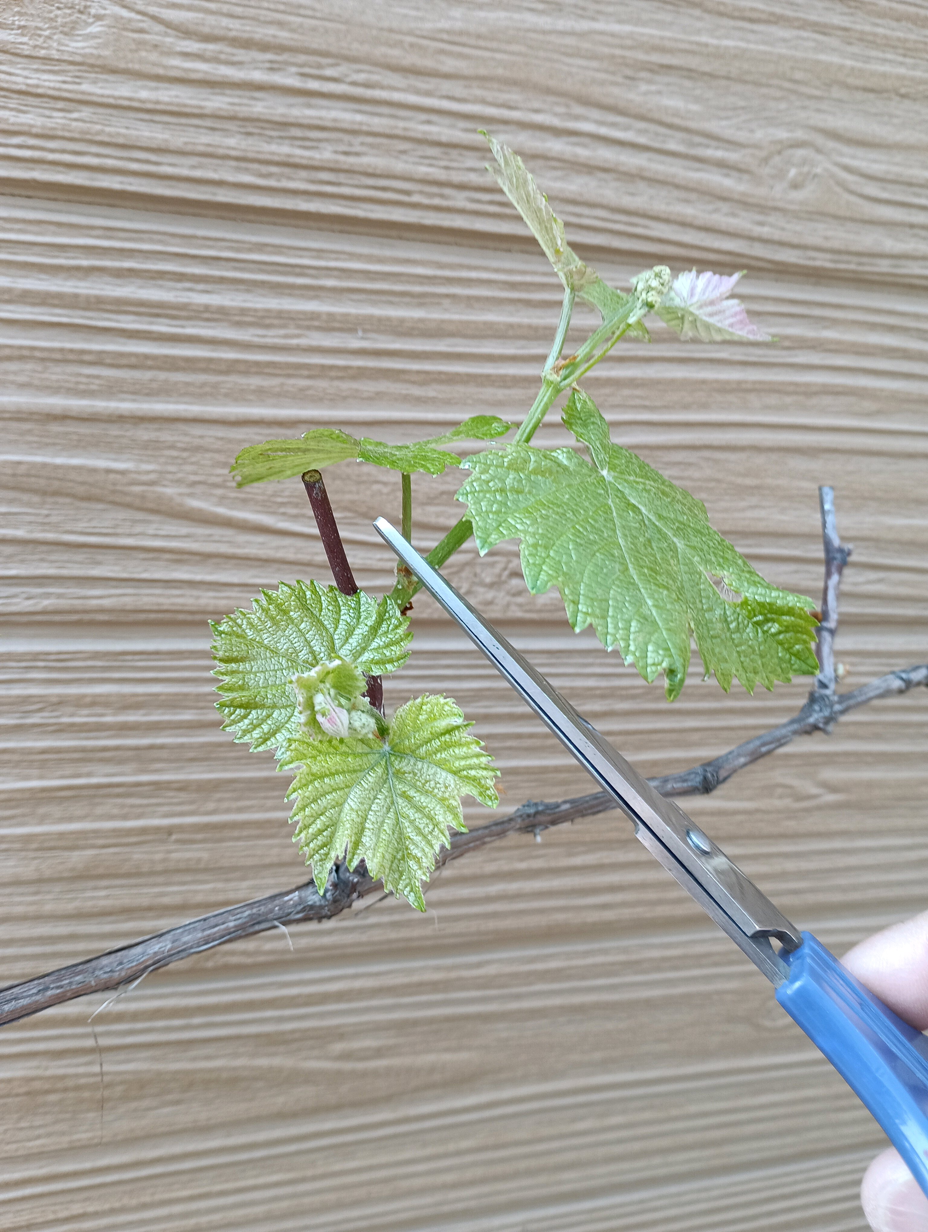 先端近くの芽 1芽、2芽がそれぞれ伸びているので伸びすぎの2芽をカット