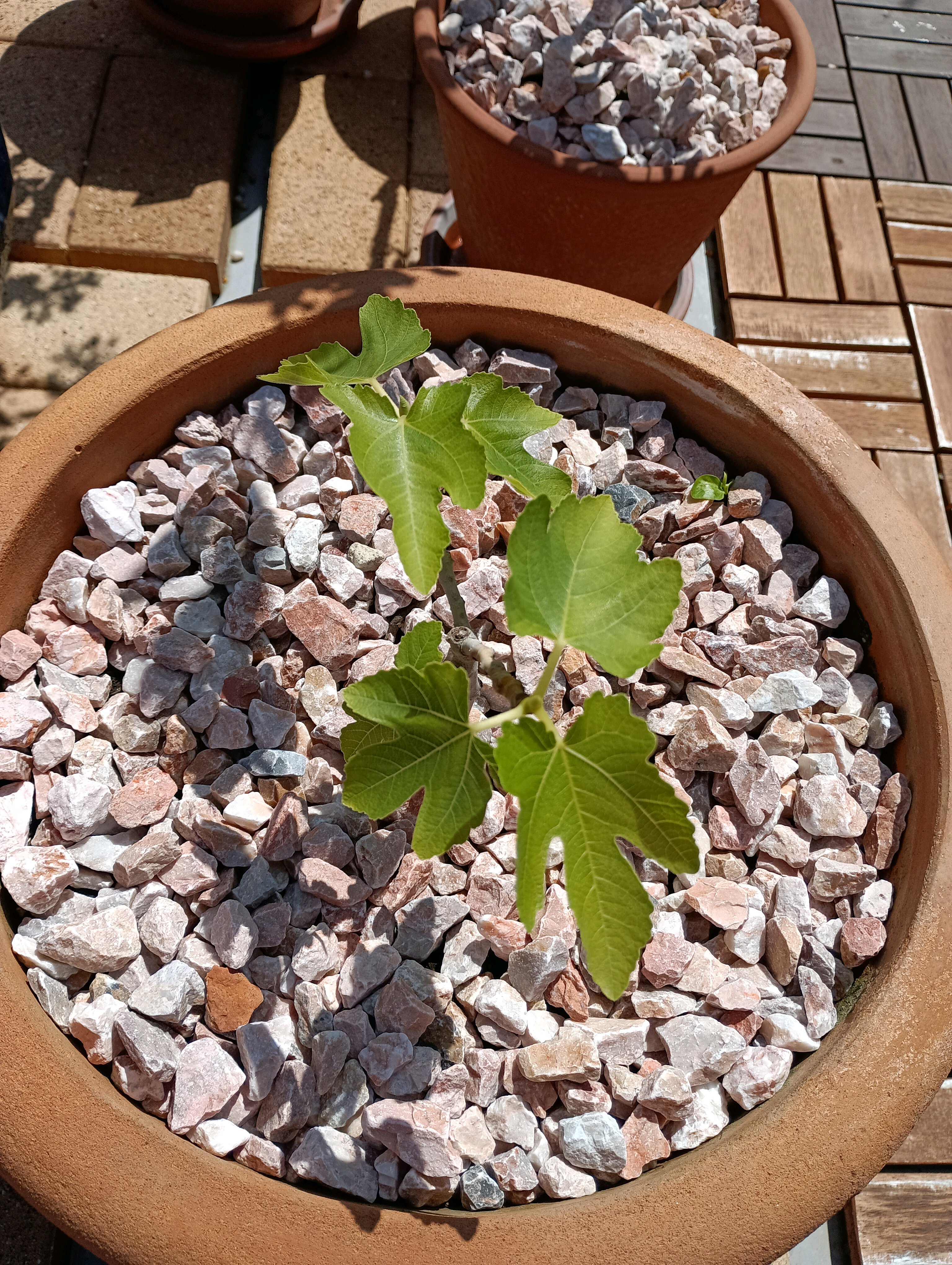 ジャポチカバとイチジクの鉢を入れ替えてジャポチカバにとっては一回り大きく、イチジクにとっては一回り小さく。