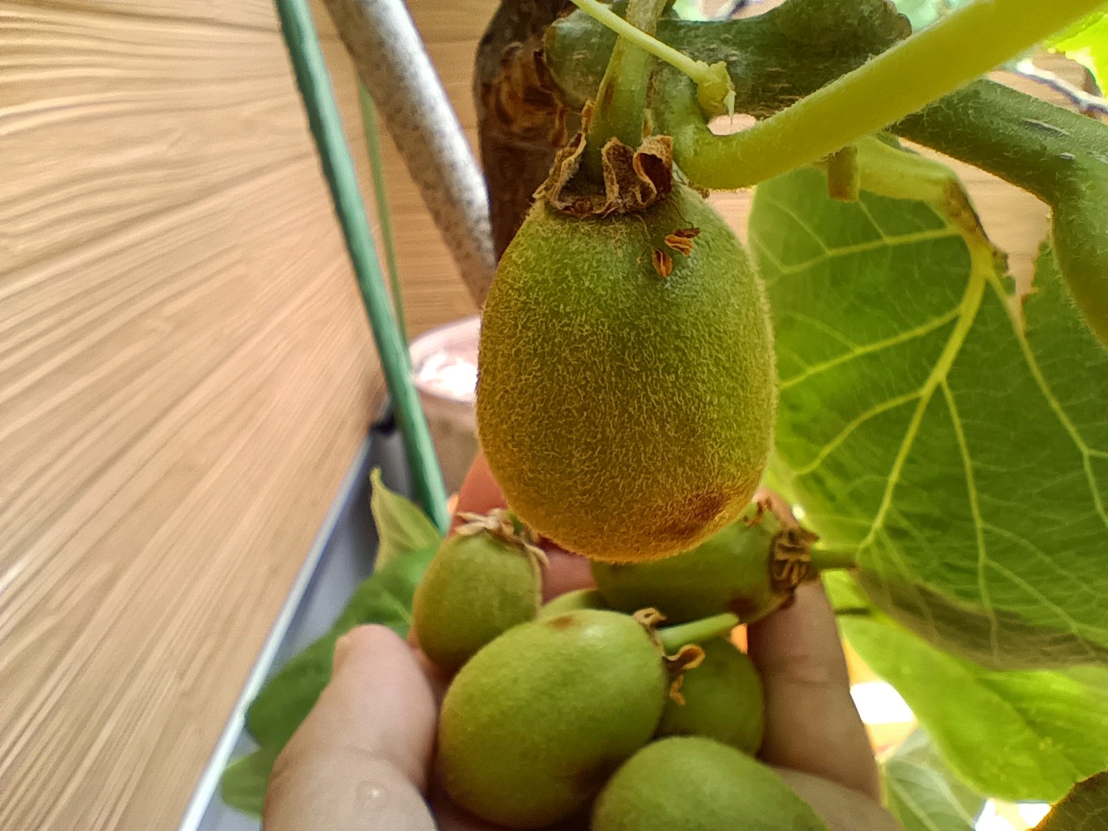 5枚の葉っぱに1つの果実のルールなら、もっと残せるはずだけど、果実同士が擦れているので1つの集団から1,2個残して、木全体で5個程度残した。