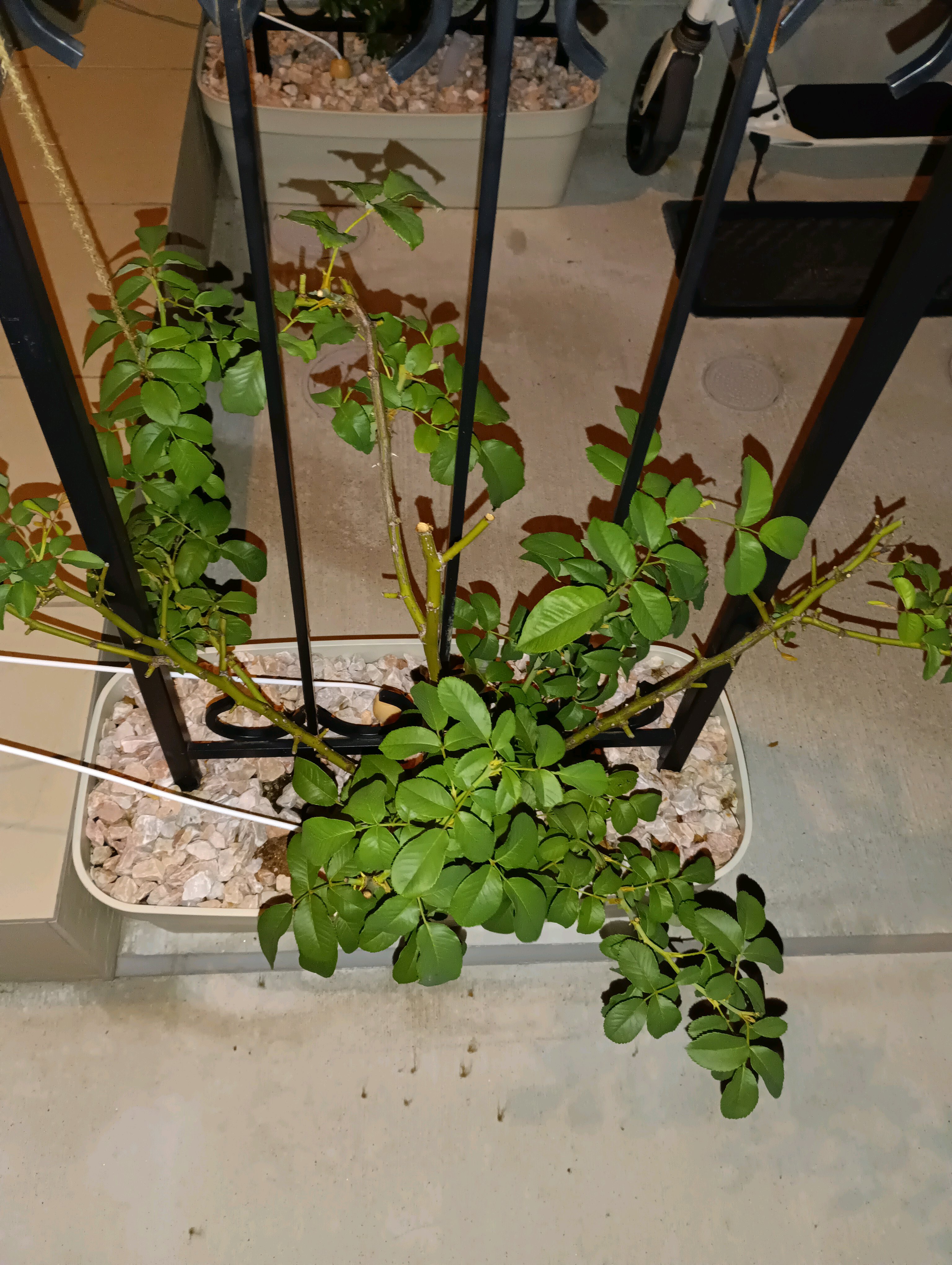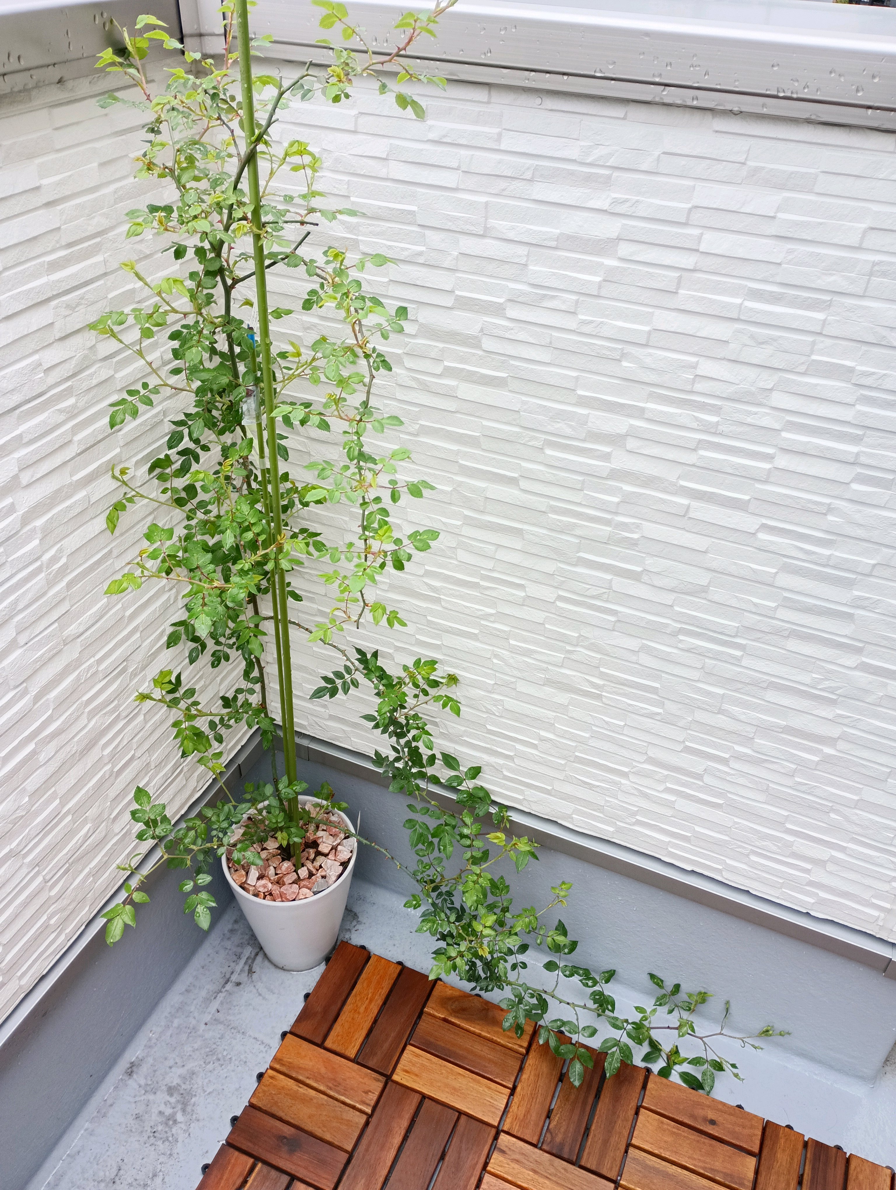 この冬は初めての冬。色々調べたが剪定をするのかしないのか方針が定まらず。結局黄変したり黒点の葉をこまめに落とすだけにして、剪定はせず。枝先に緑の葉は残った状態。