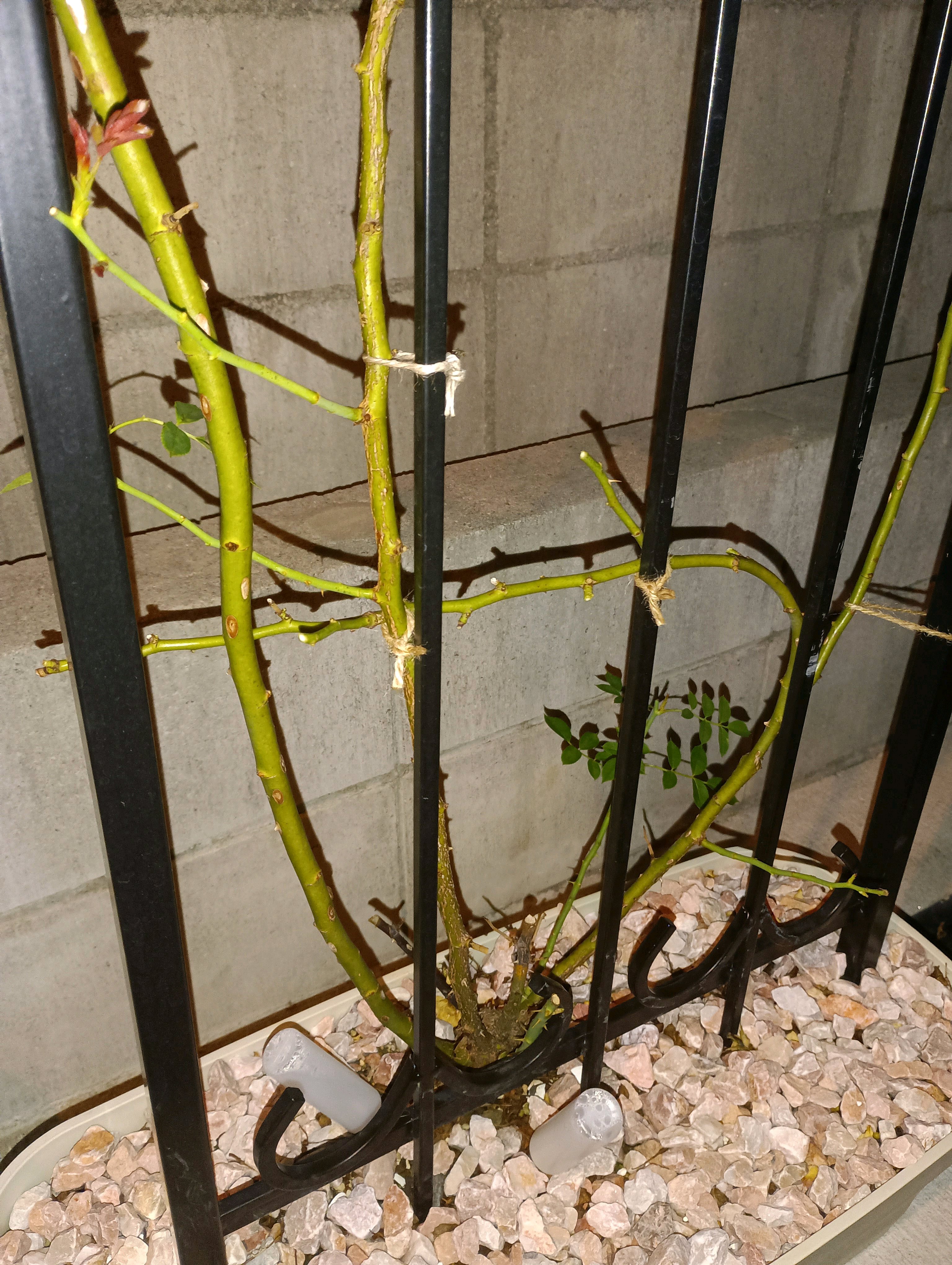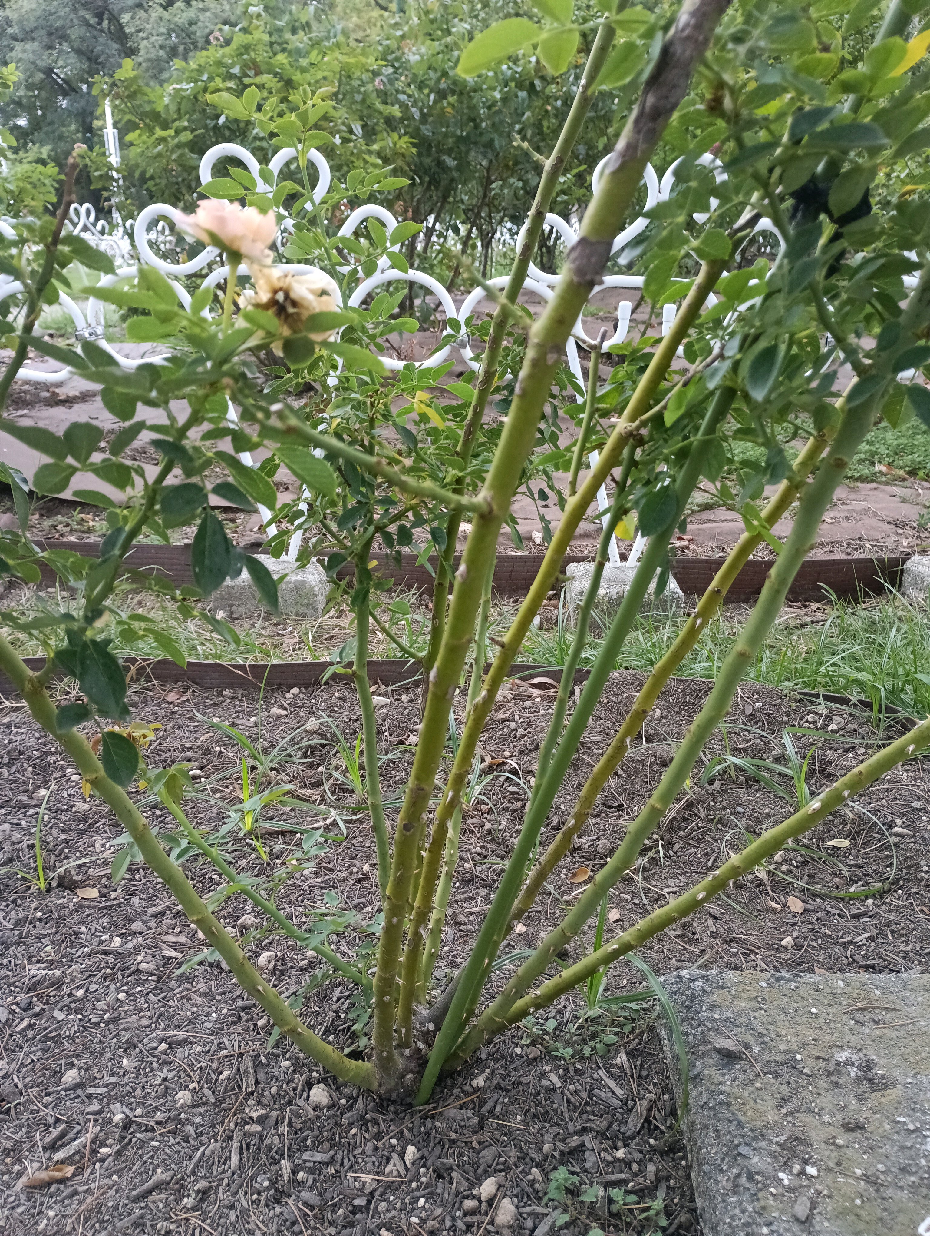 バラ園のスイートドリーム2025.02新植の1年目だけど さすが茎が立派。