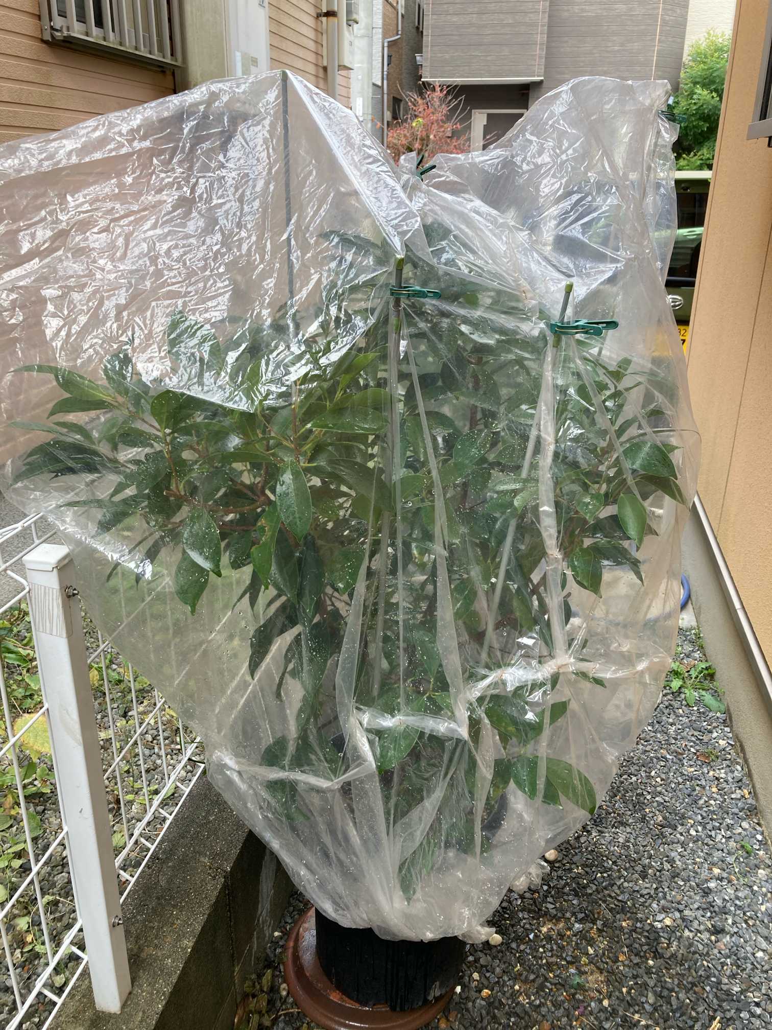 なんちゃってビニールカバーで お包みして 春まで がんばって👍