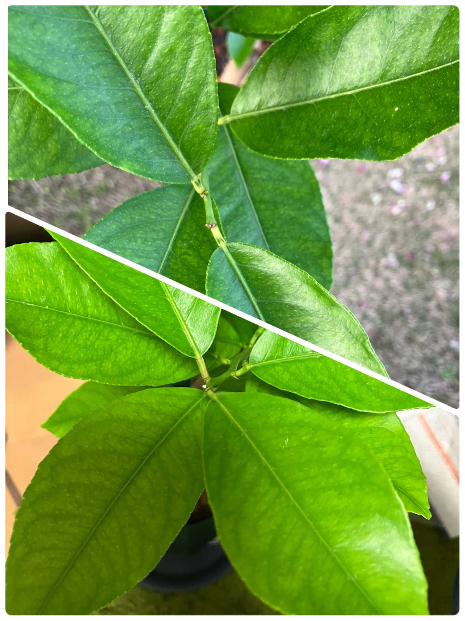 急に伸びて栄養不足だったのか、葉っぱが葉脈が浮き出るような薄い色に。そこで、活力剤(100均購入w)と木酢液(ちゃんと良いやつw)を数日ごとにスプレーで葉面散布。これ効きますね!だんだんと葉色が濃くなって、今ではかなりしっかりした色になりました!!