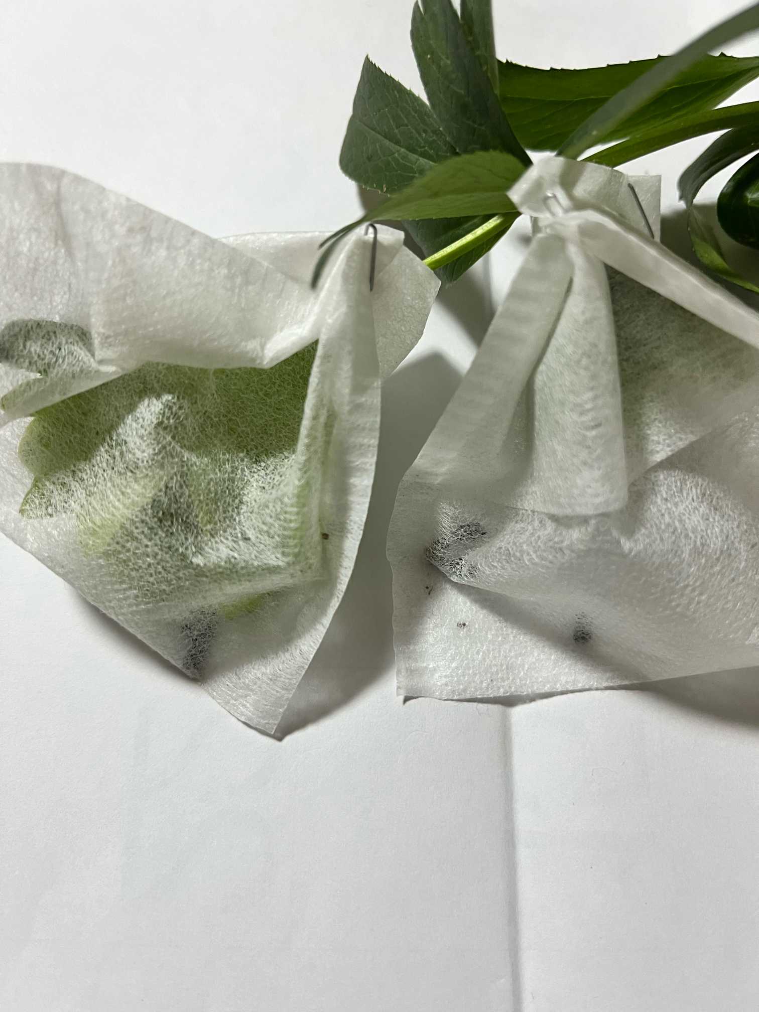 種房が大きく膨らんだ花にお茶パックを被せ、成熟して種子が弾けるのを待ちました