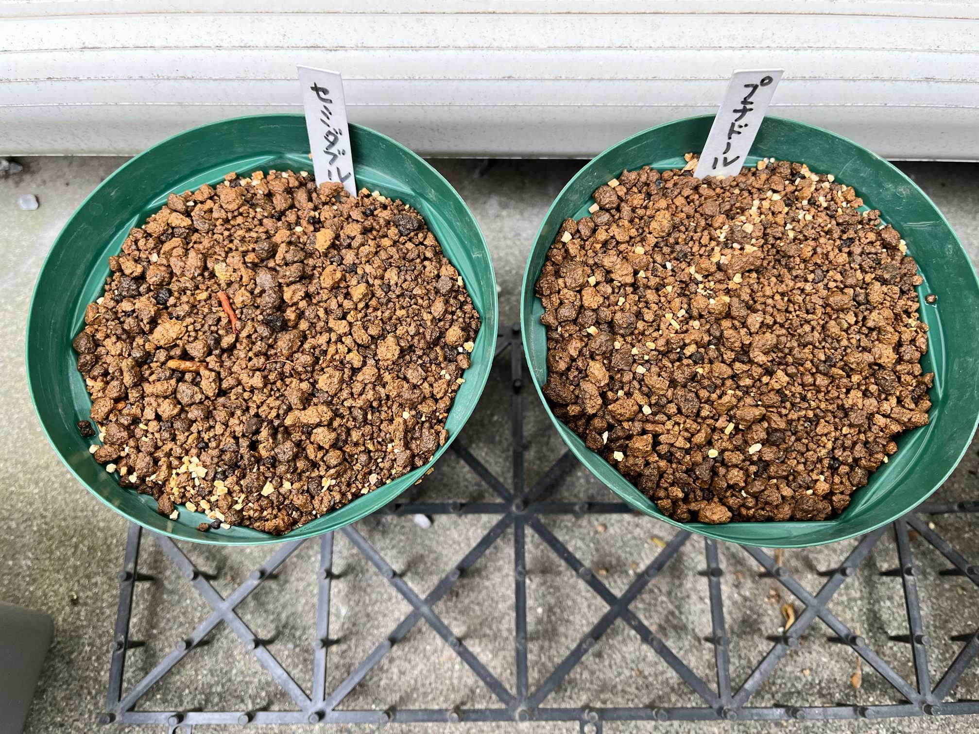 家の北側軒下に置き、土が乾かないように管理します