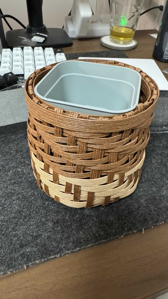 ダイソー透明鉢6号用の鉢カバー。100均のクラフトバンド約3巻とボンドを使用した。