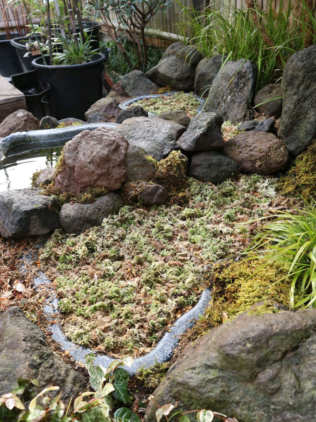 同じ用土を今度はちょっと強めに敷き詰めた後に、生水苔で覆います♪