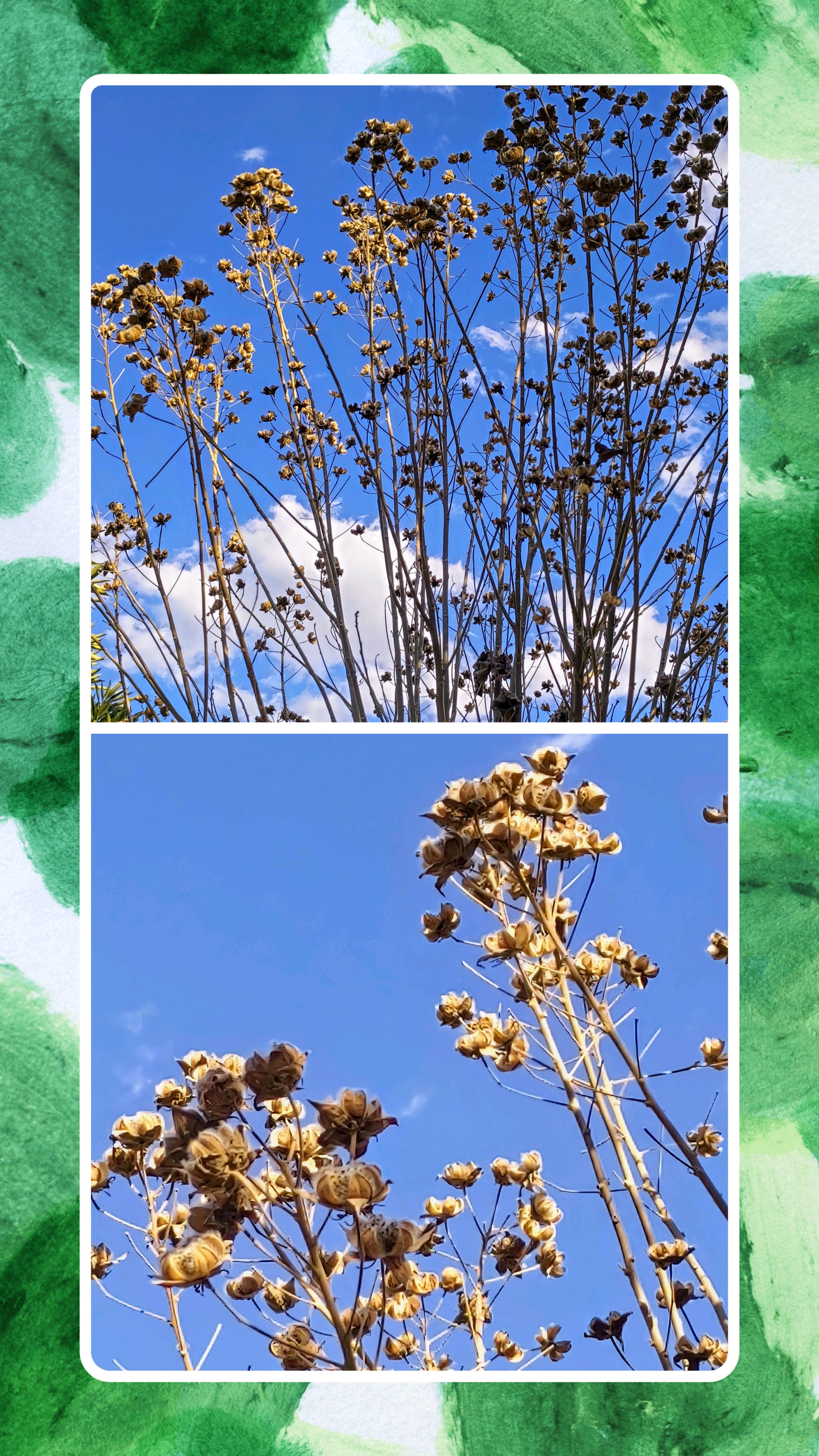 見上げれは、たくさんの花殻