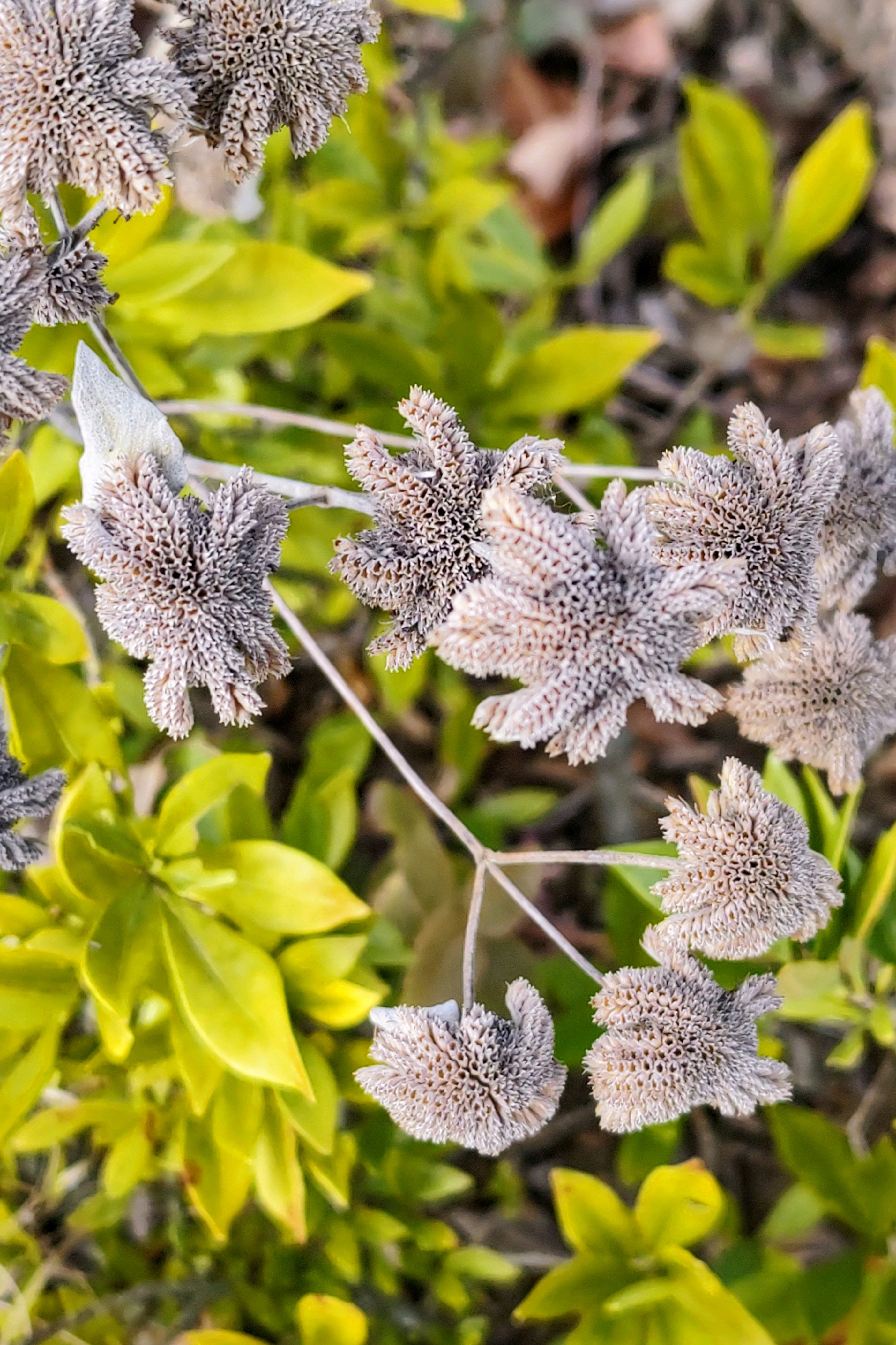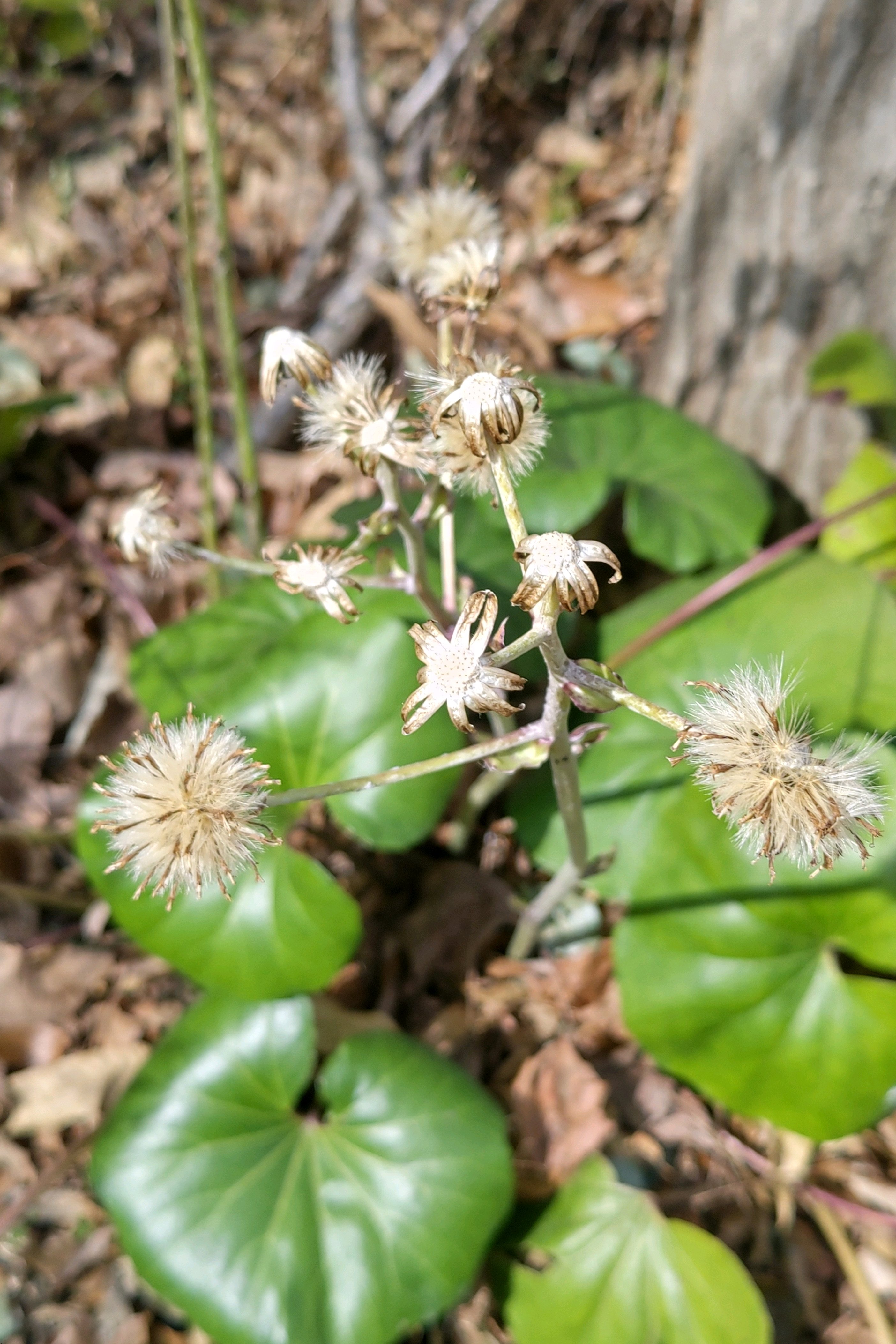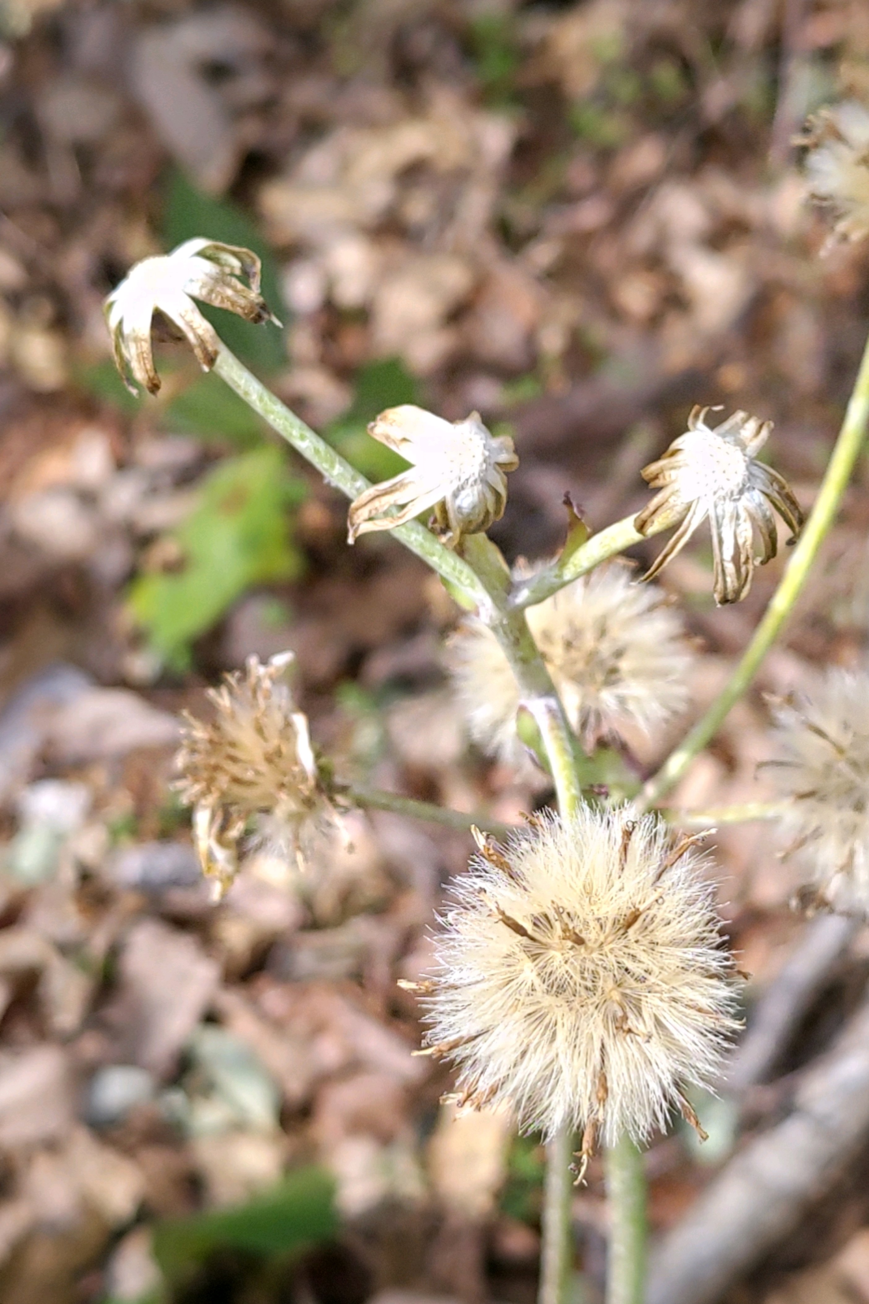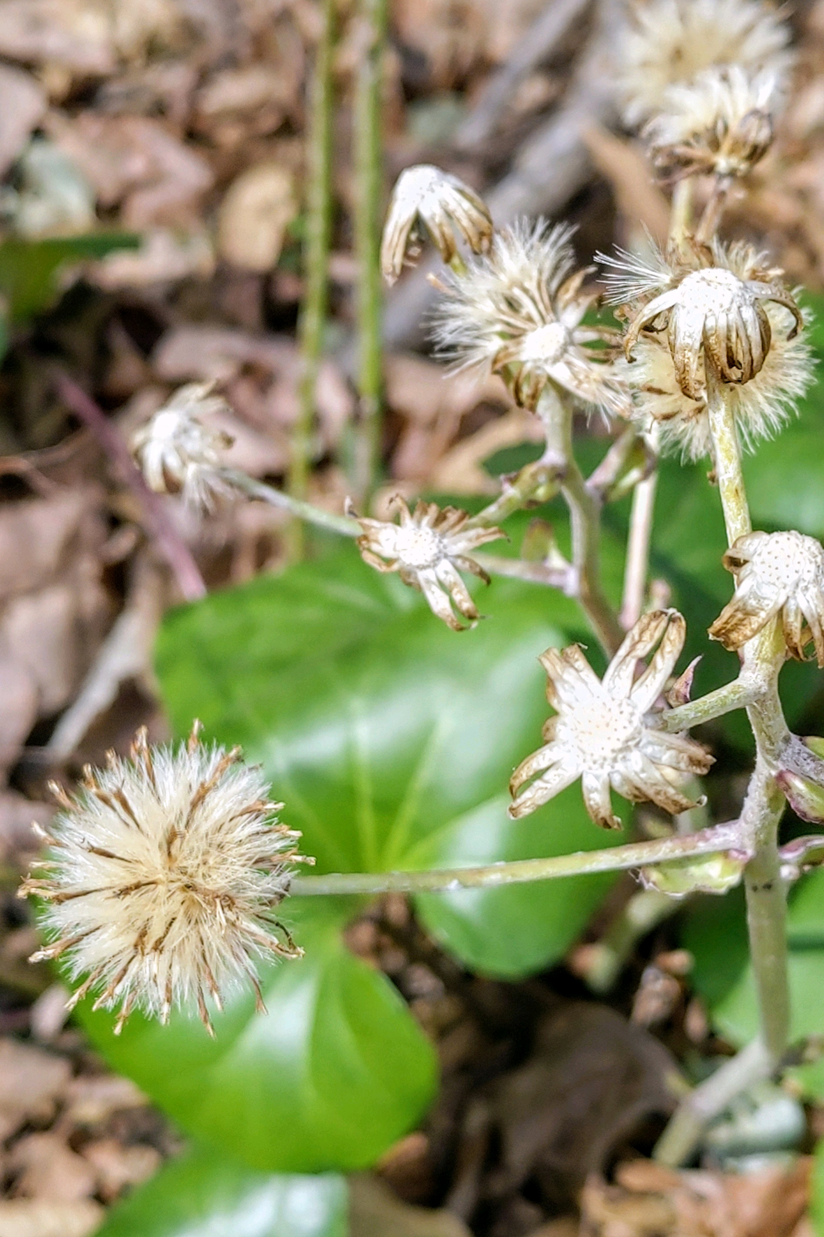 綿毛を付けたツワブキの花後