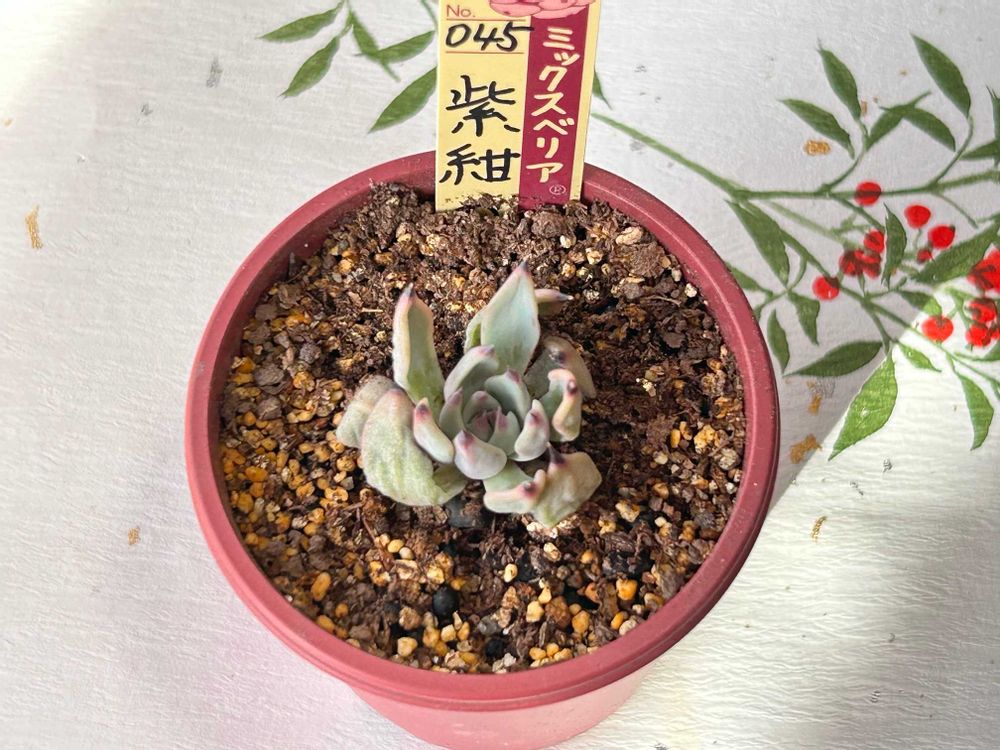 紫紺の矢は発根確認。少し葉が開いて来ている。